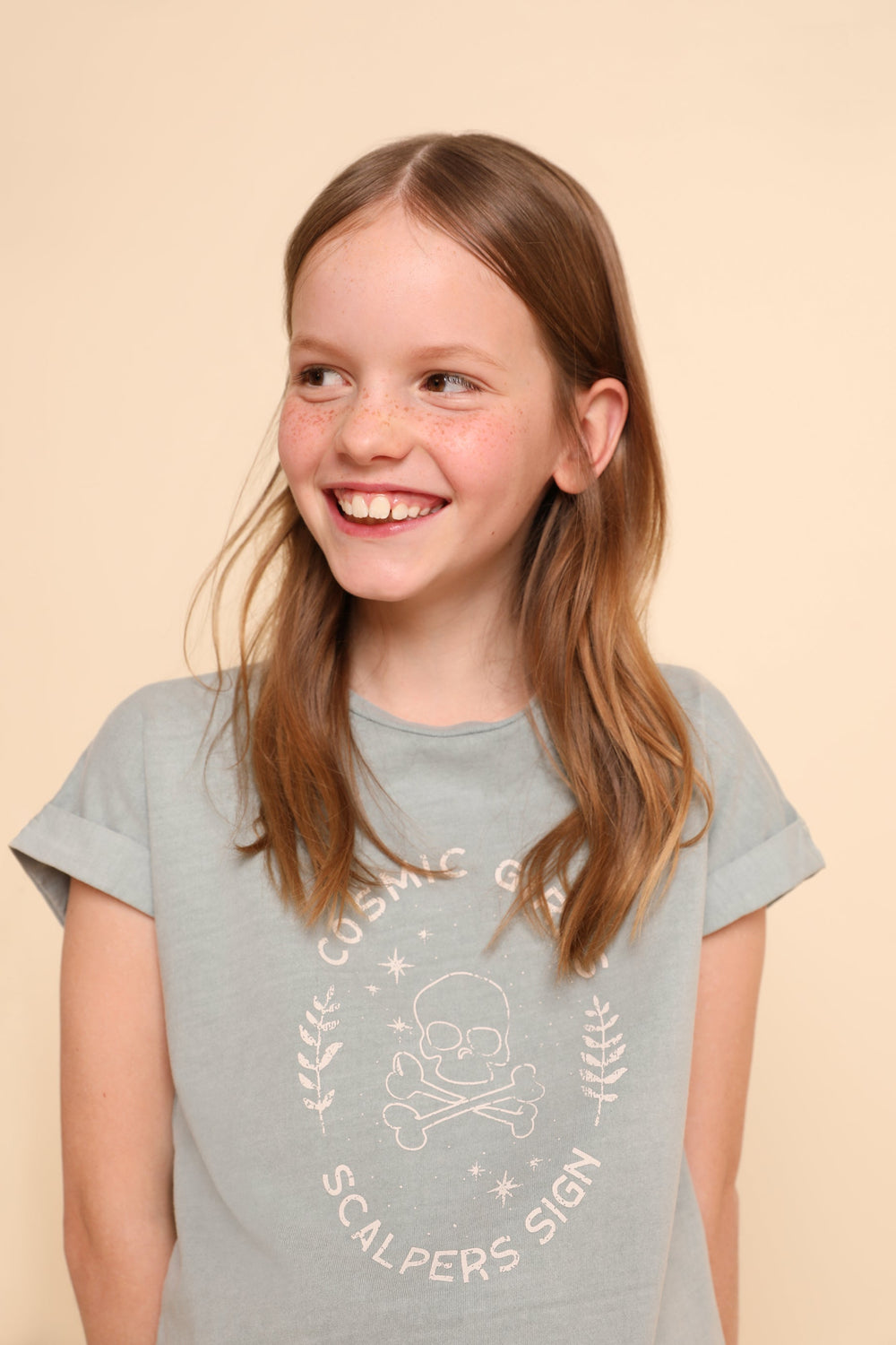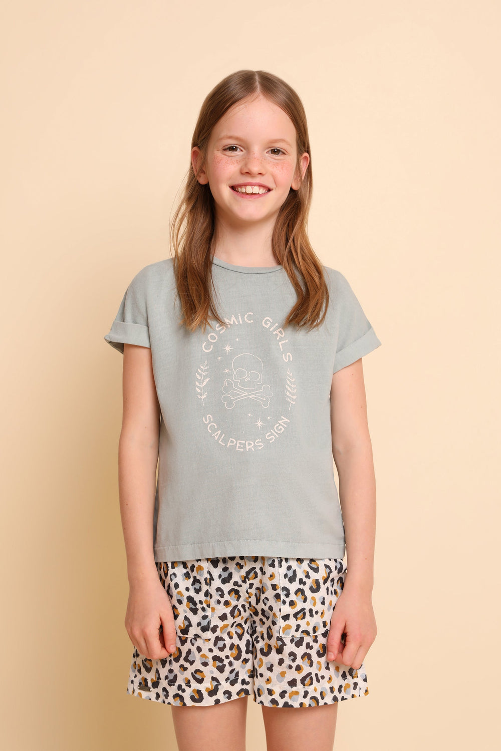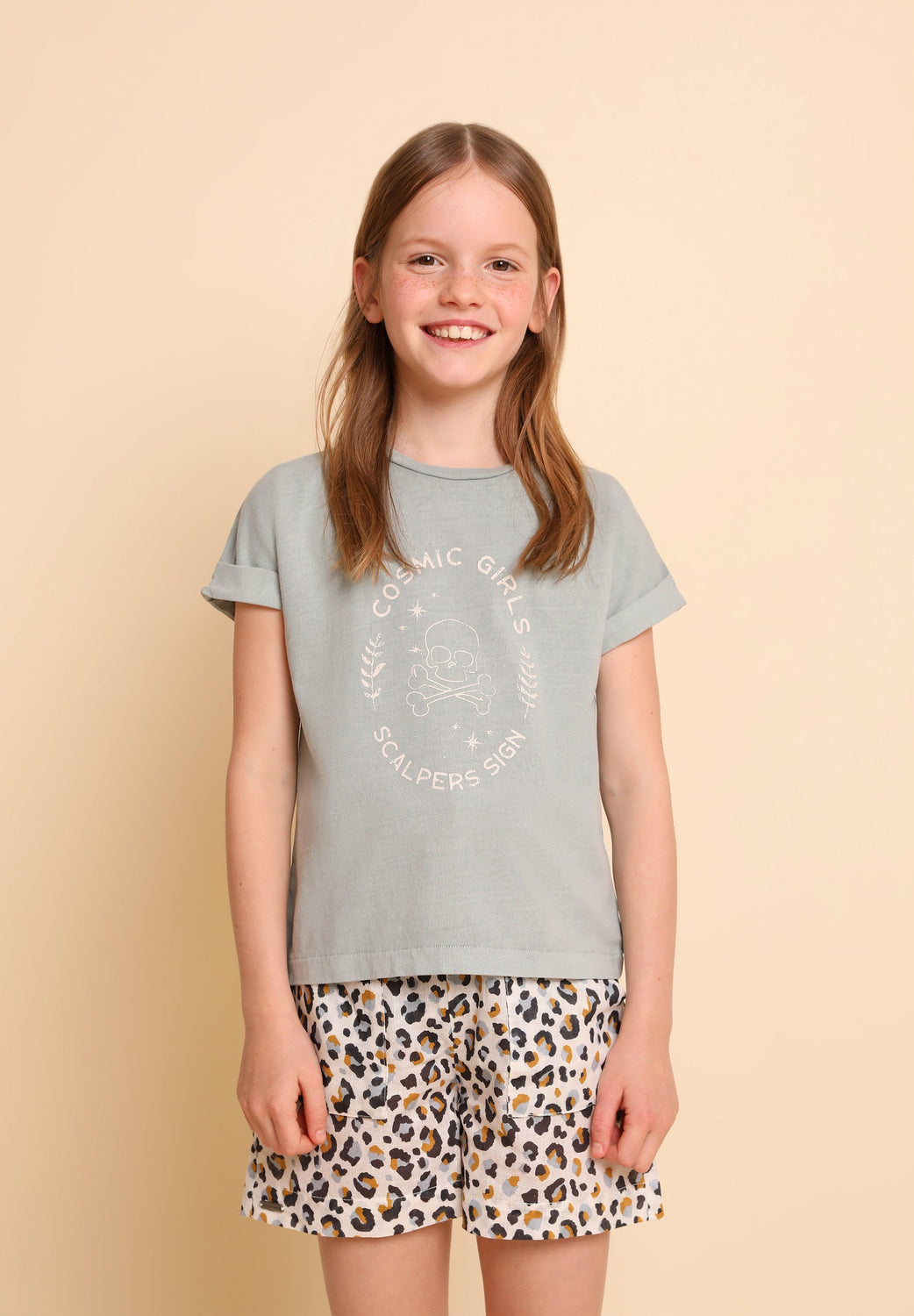 Camiseta lavada con print frontal.