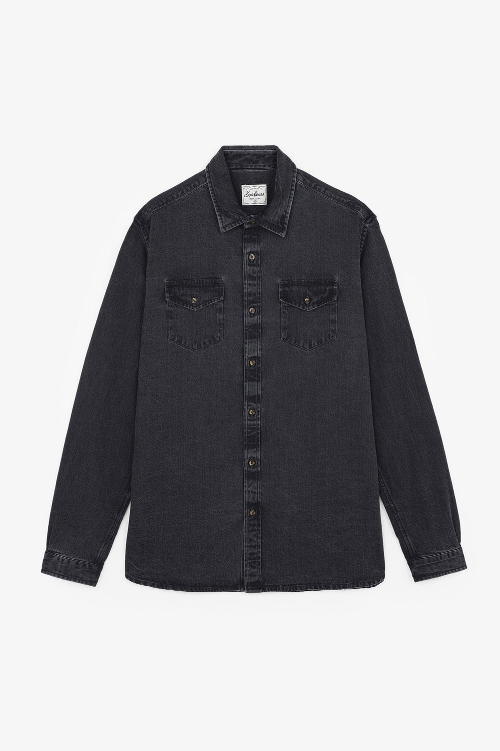 Camisa denim lavada confeccionada en 100% algodón. Corte Regular Fit, cierre con botones y manga larga terminada en puño con botones. Bolsillos con tapeta y botón.