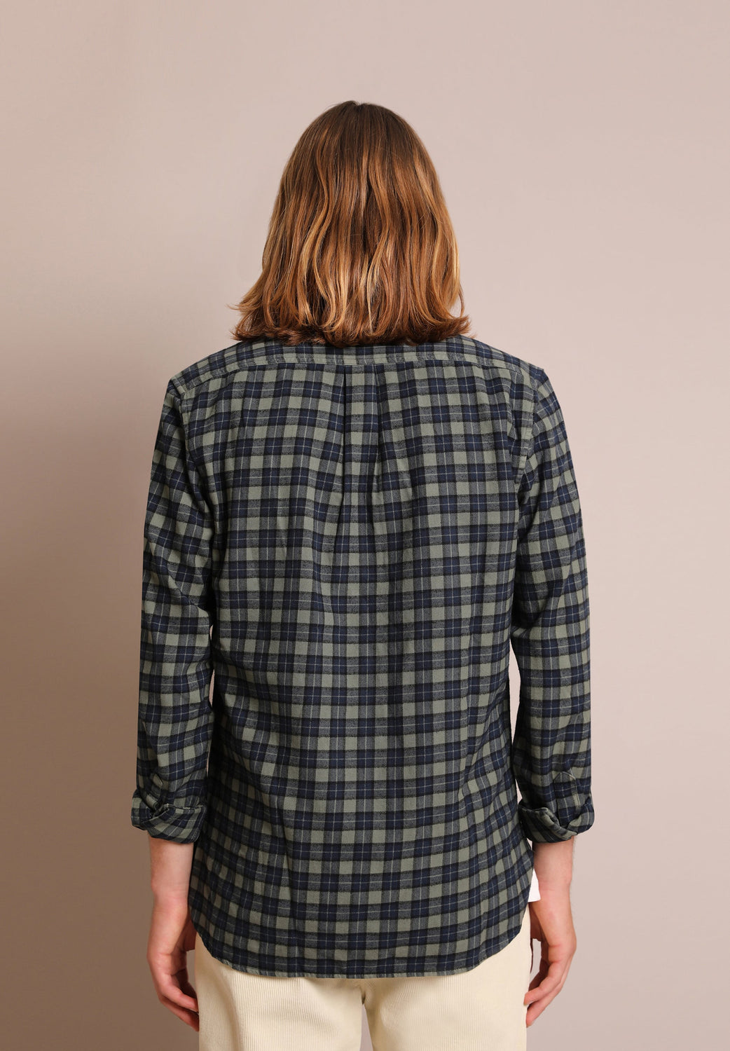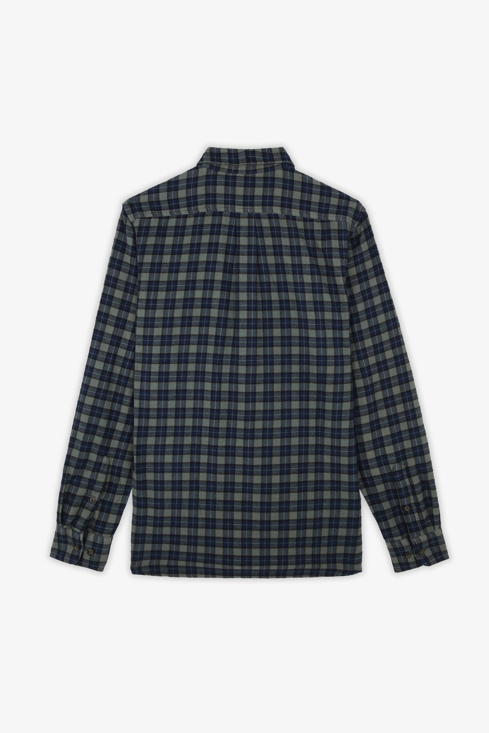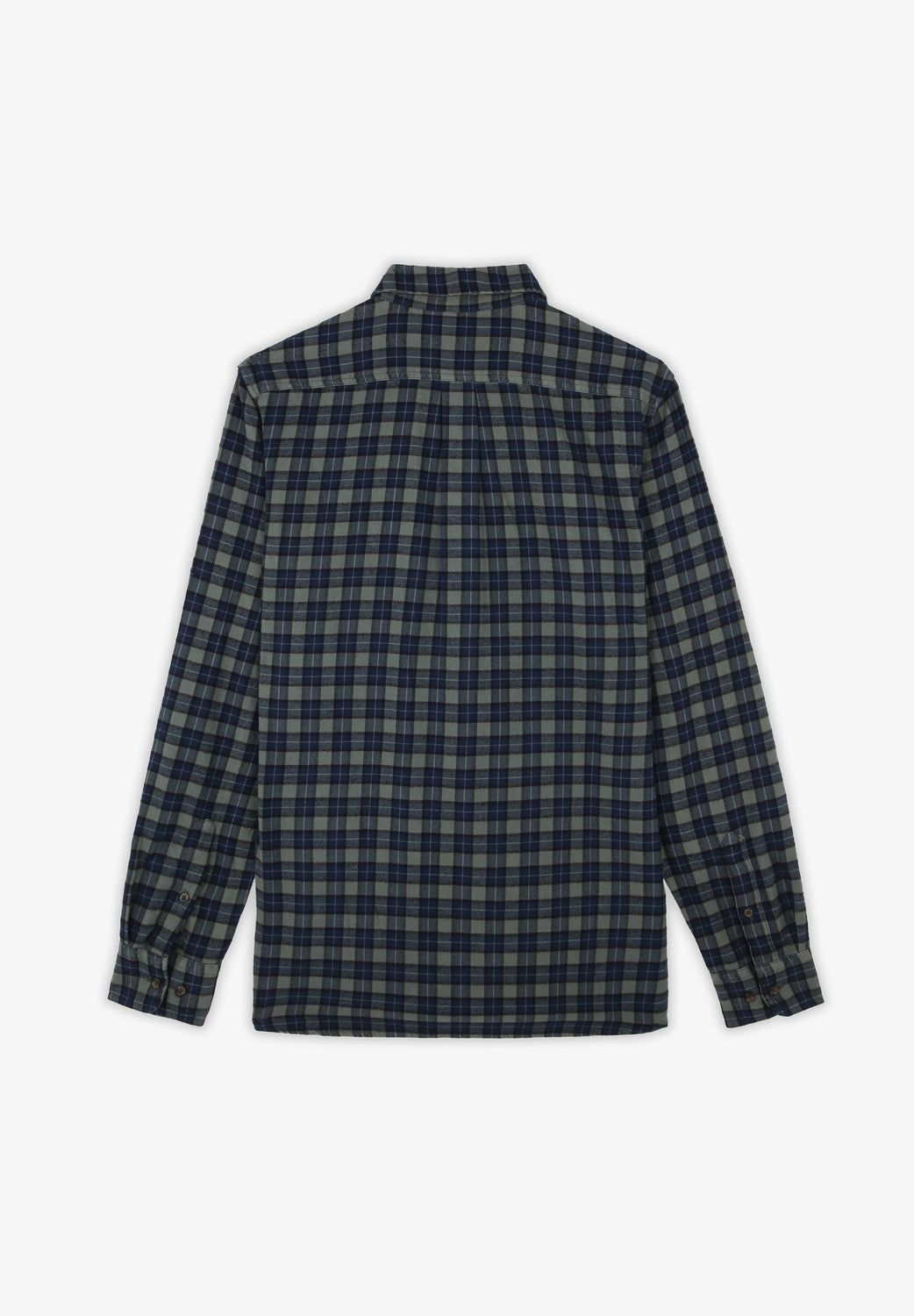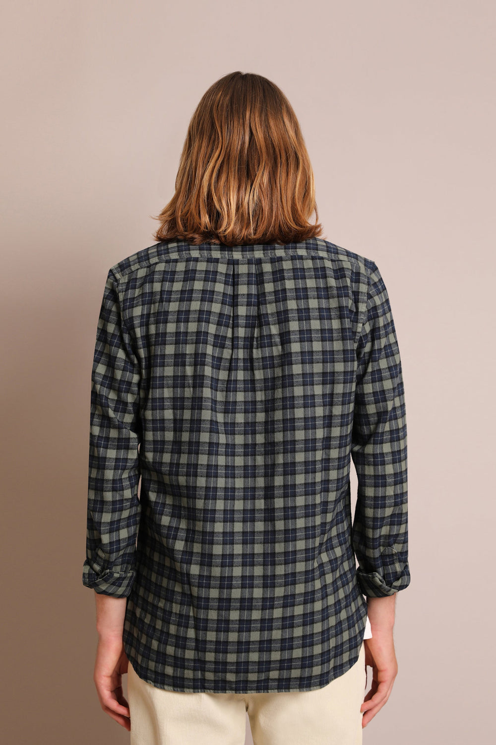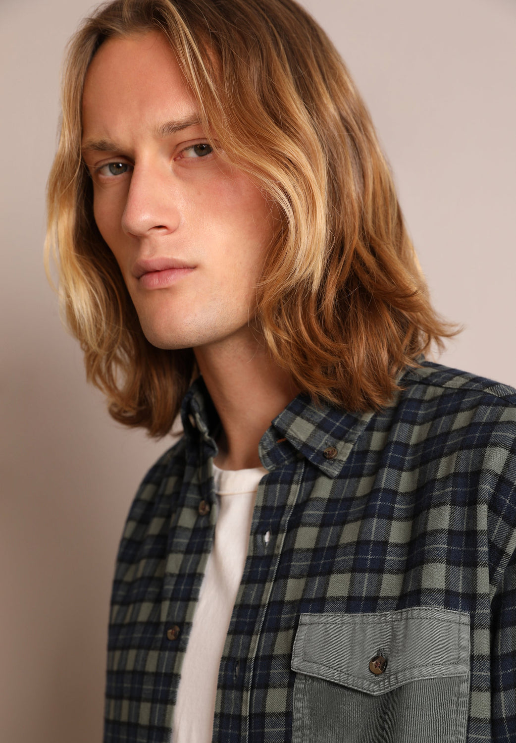 - Bolsillo tipo parche de distinto tejido en el pecho