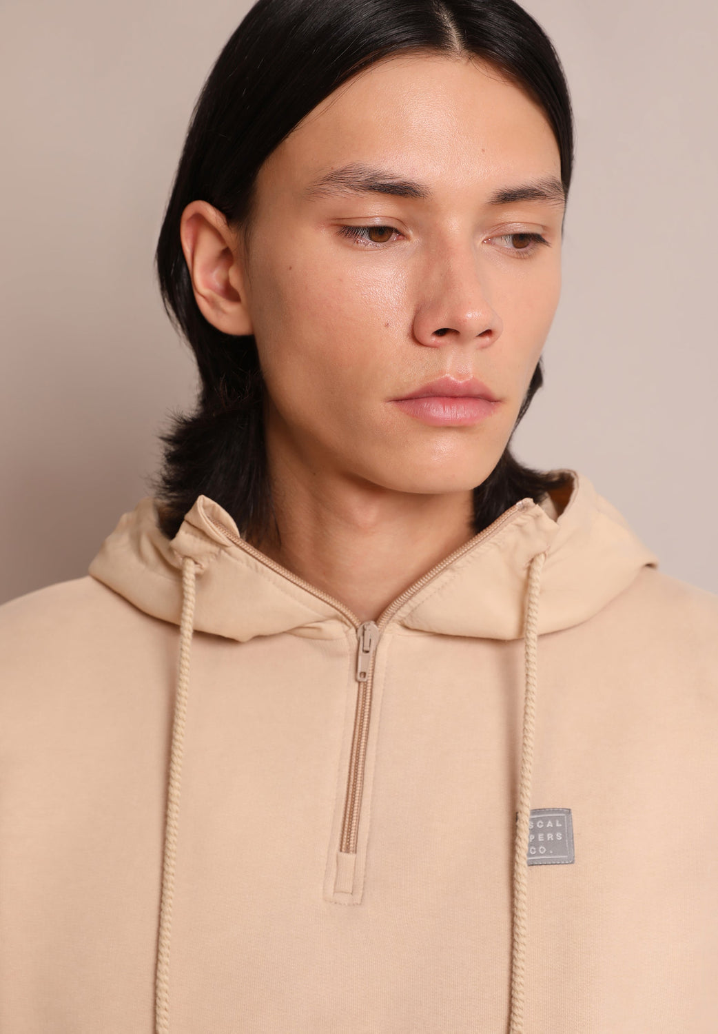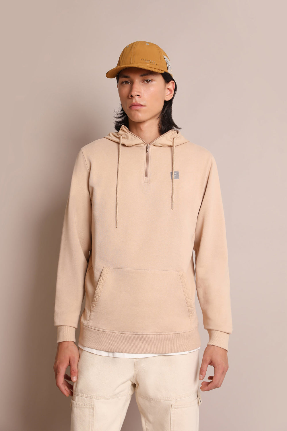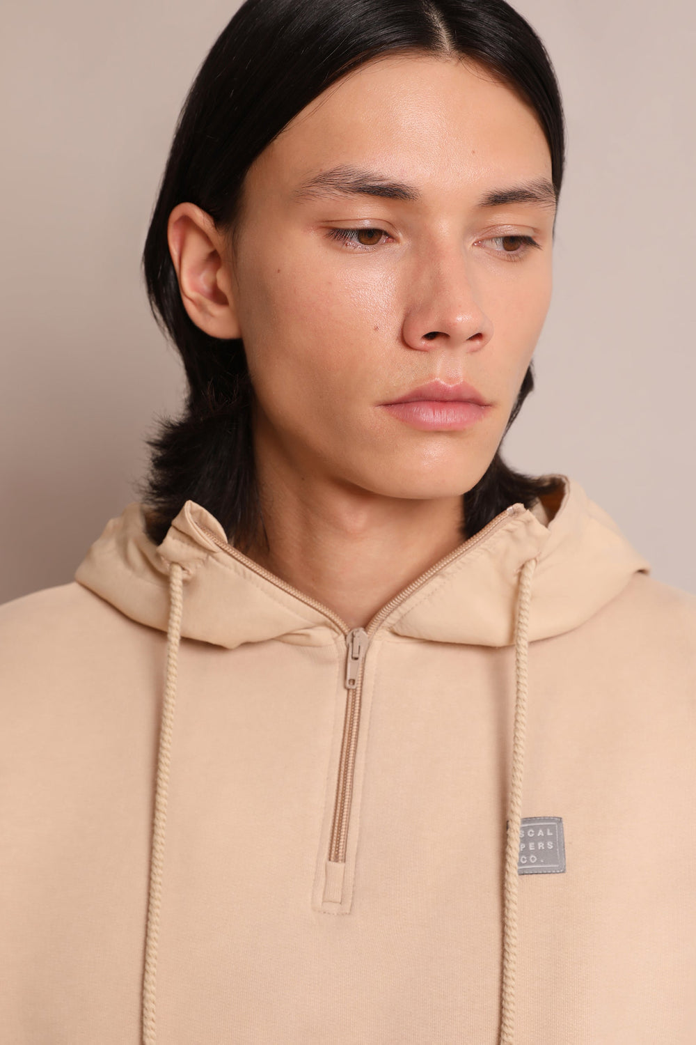 - Cuello con capucha con cremallera ajustable con cordones