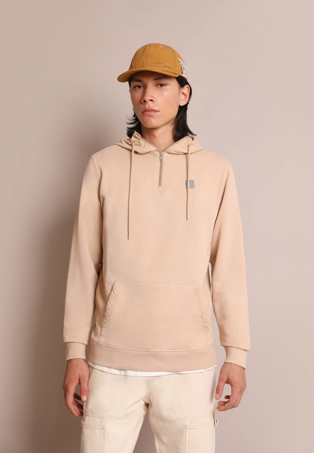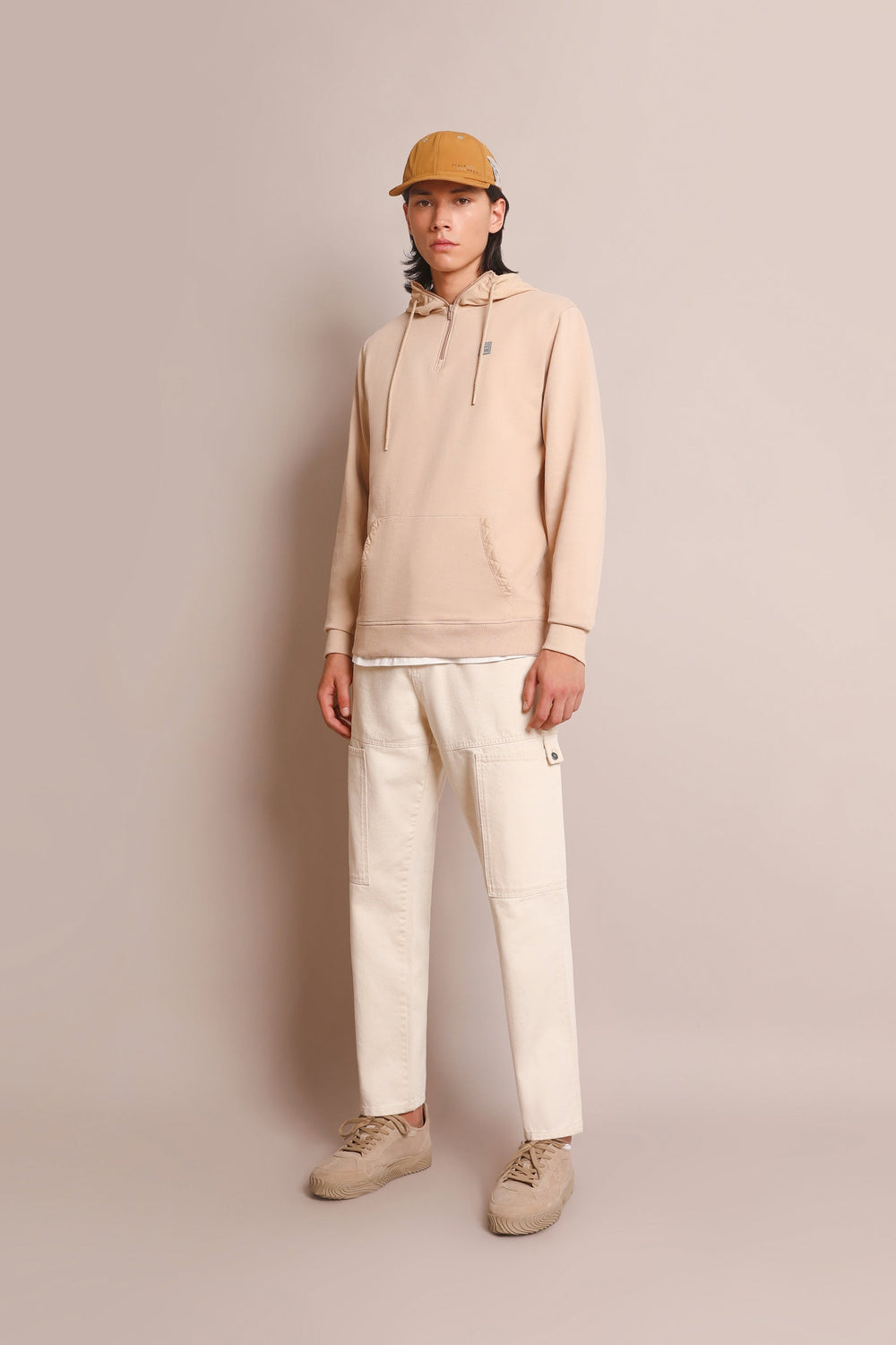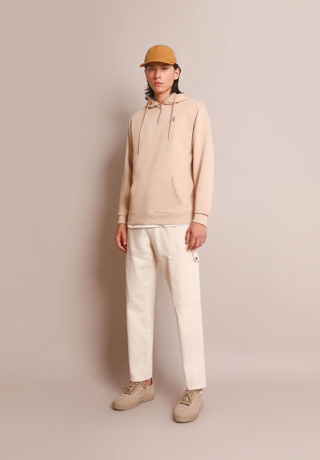 - Cuello con capucha con cremallera ajustable con cordones