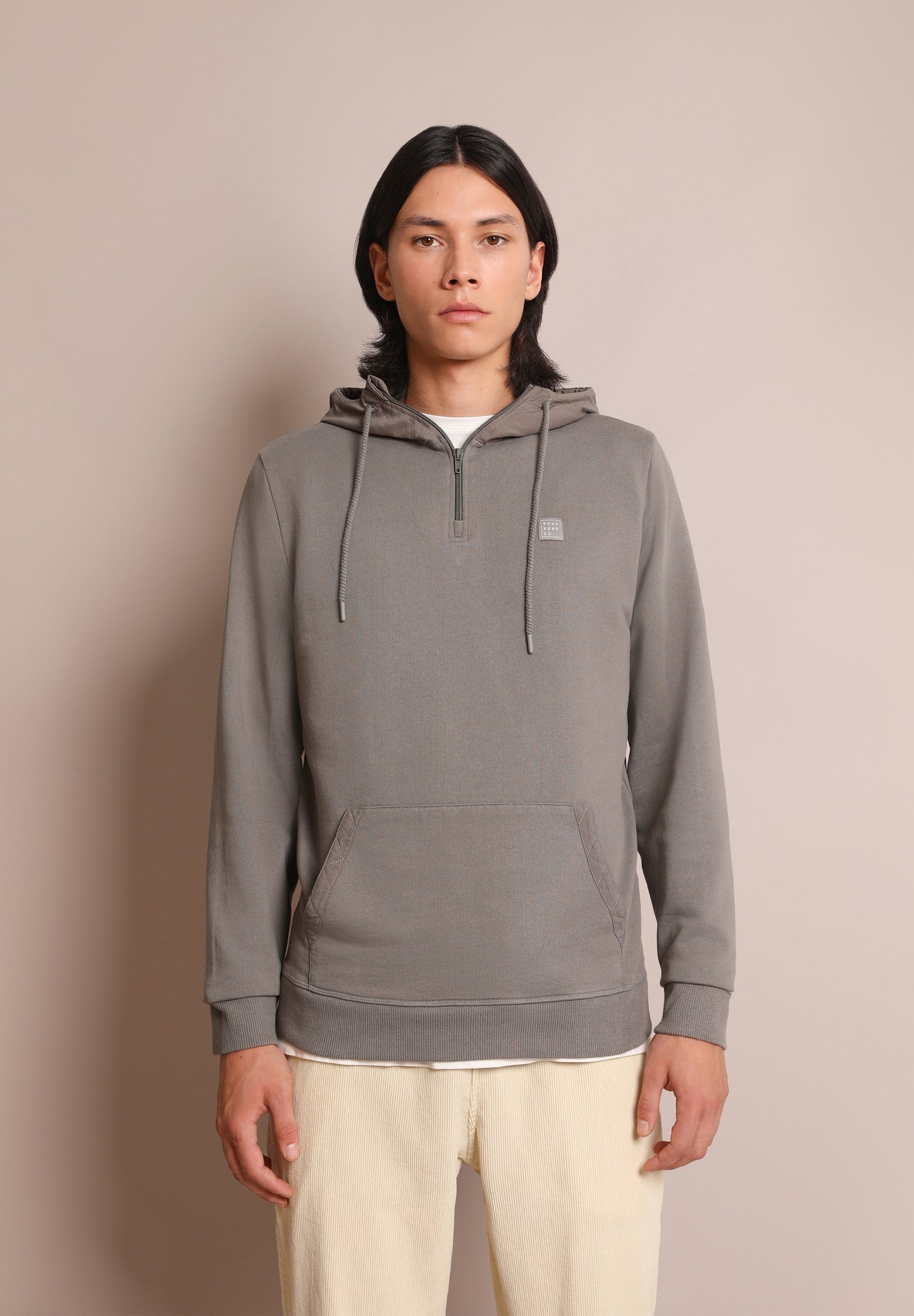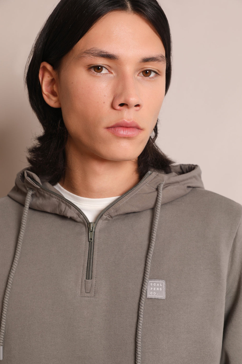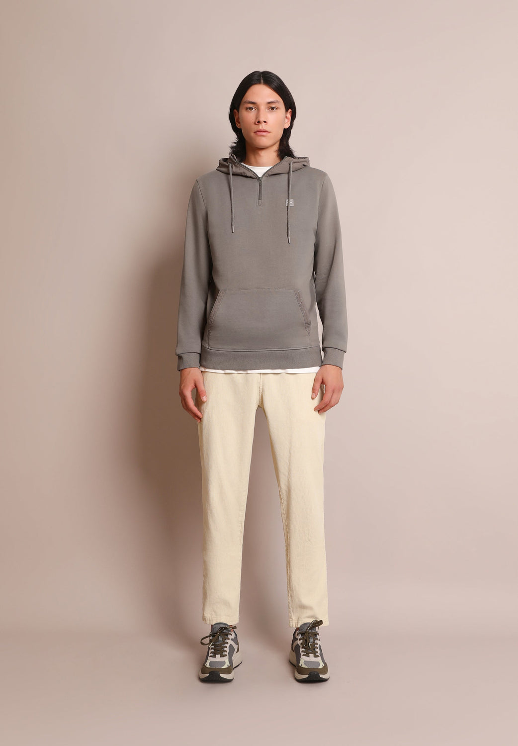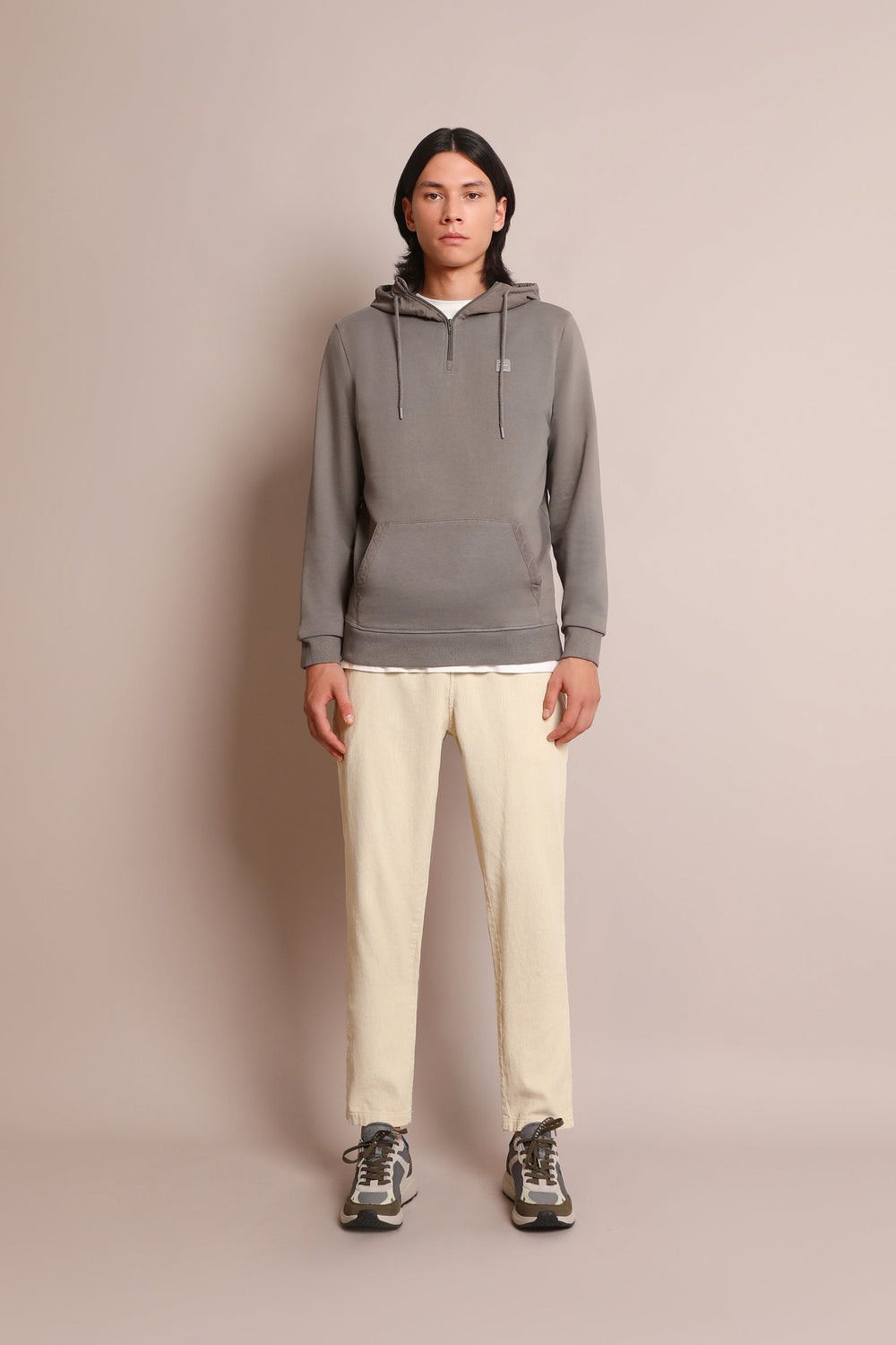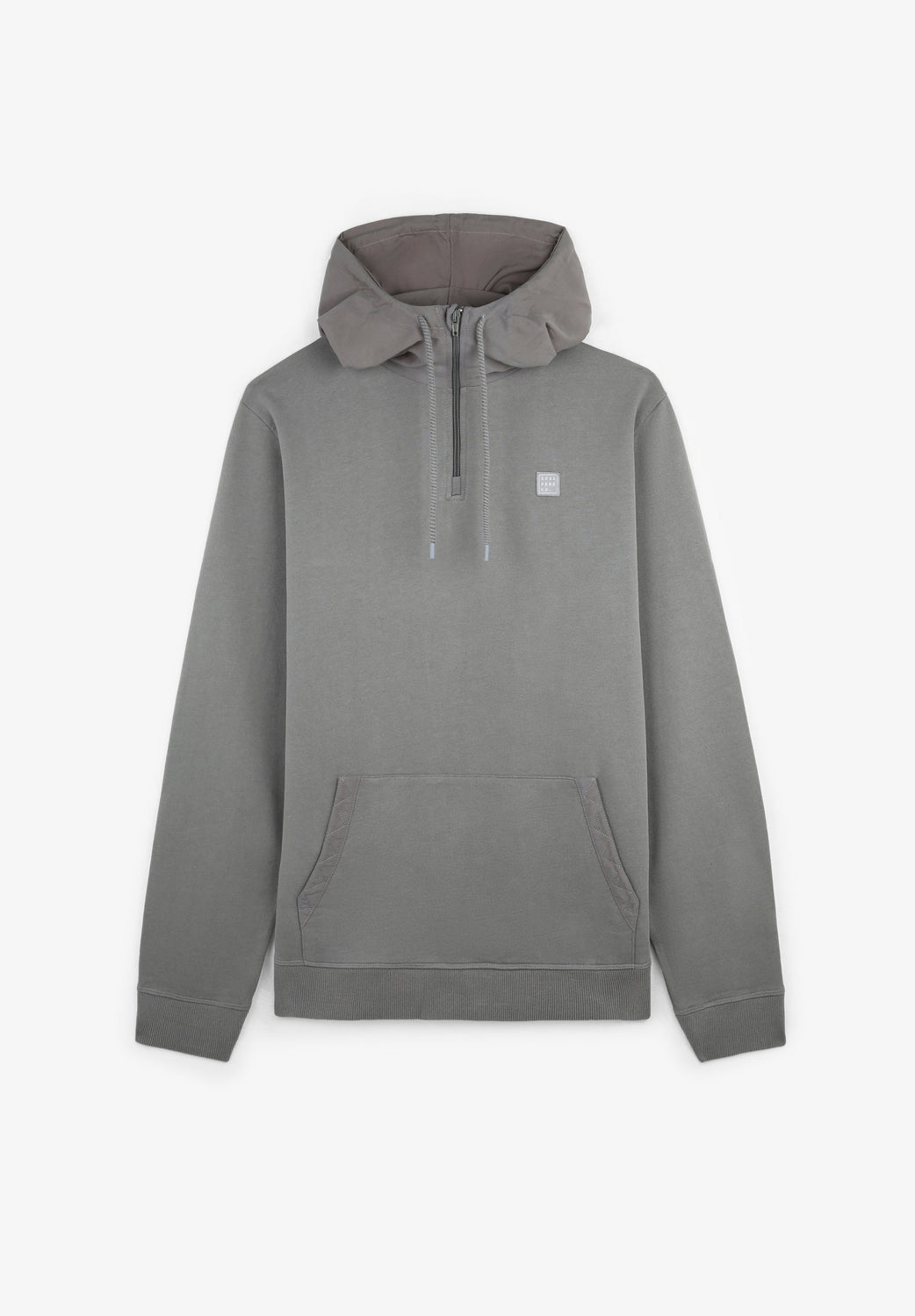 - Cuello con capucha con cremallera ajustable con cordones