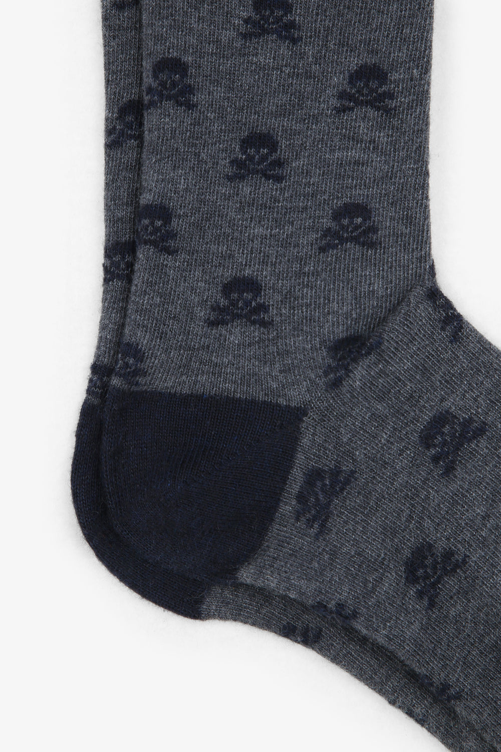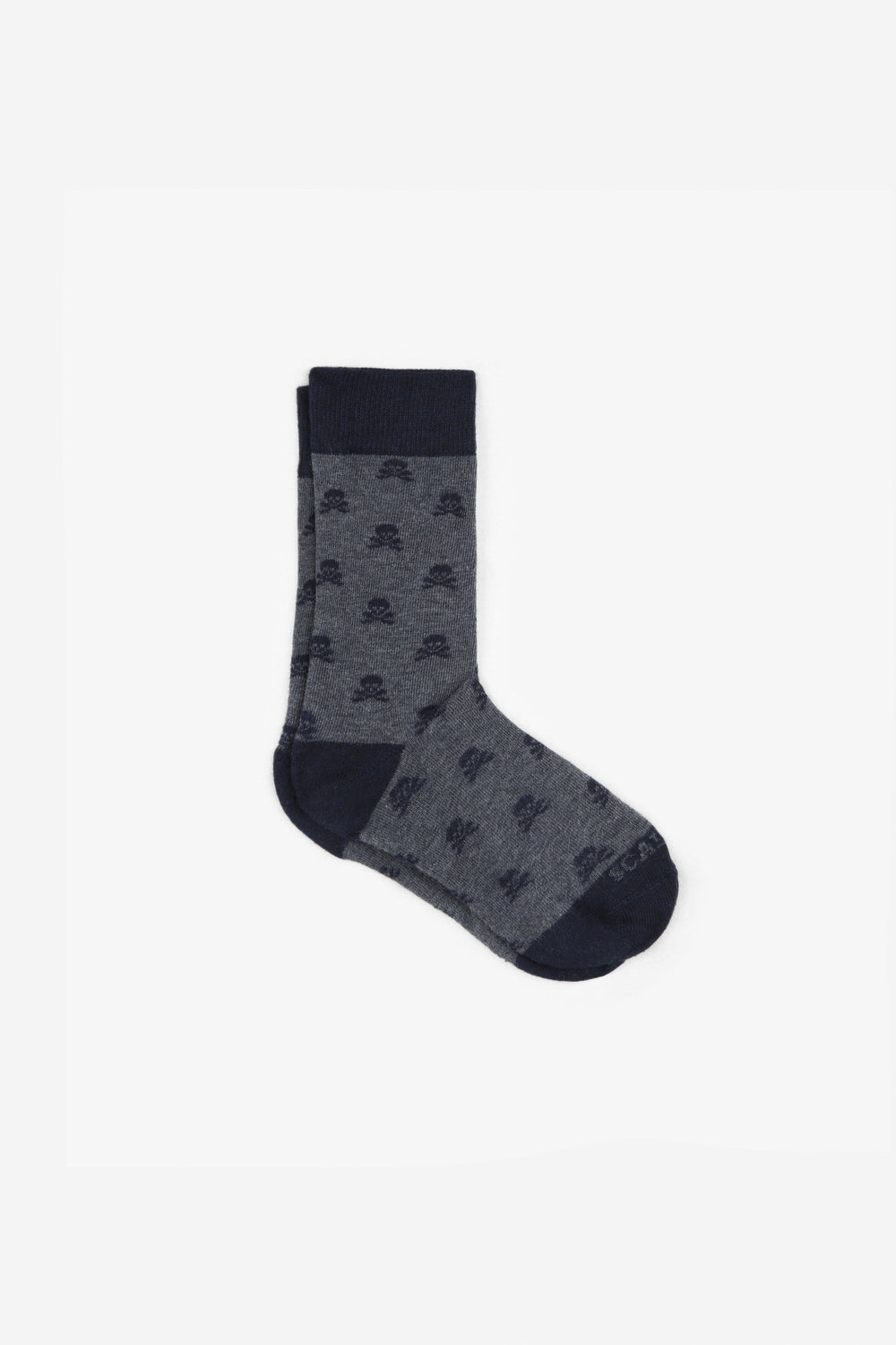 Calcetines con motivos de calaveras all over confeccionados en tejido mezcla de algodón. Caña larga y puntera a contraste.