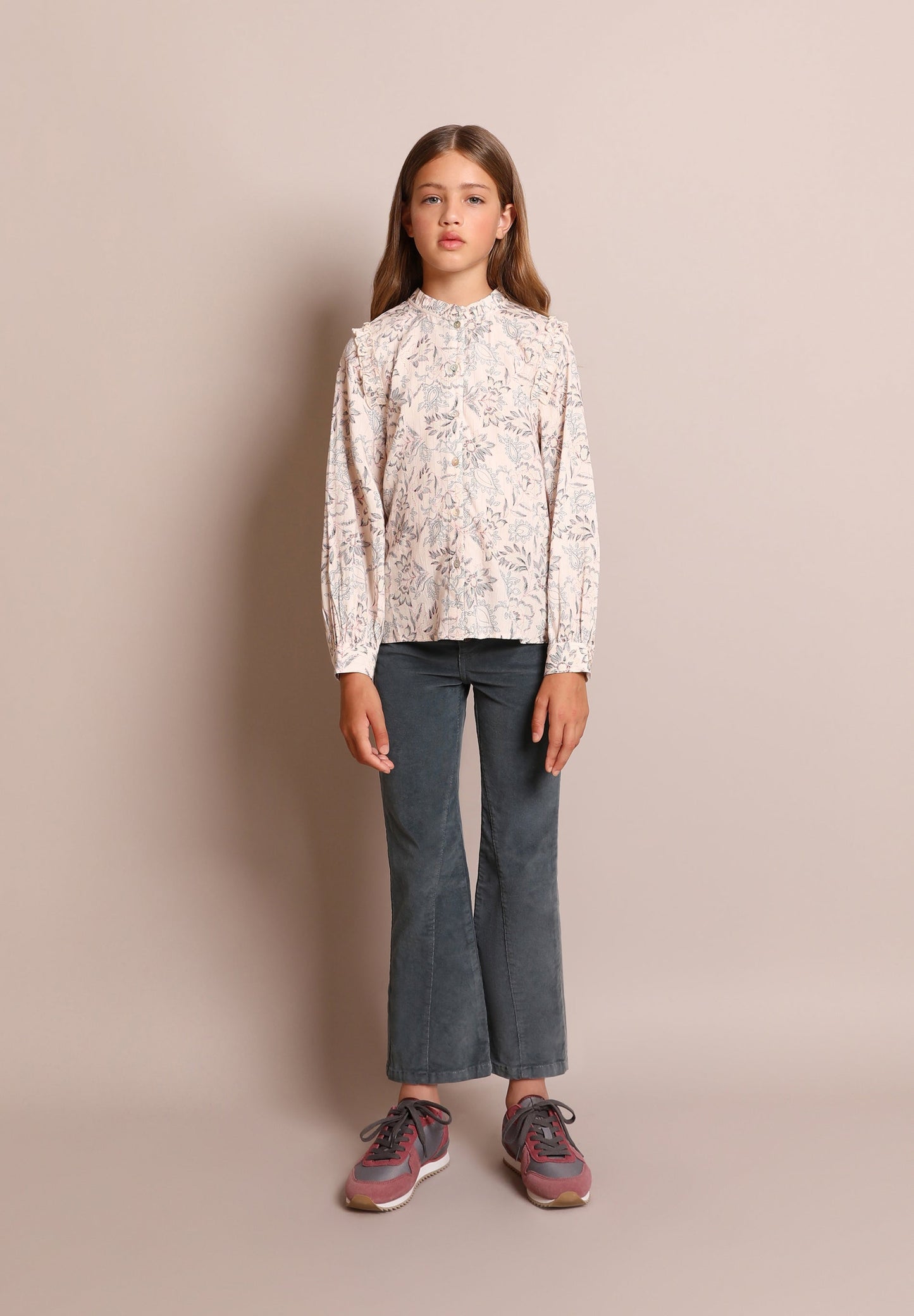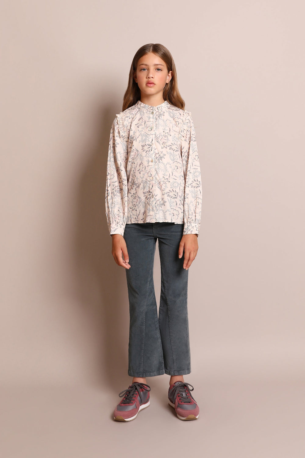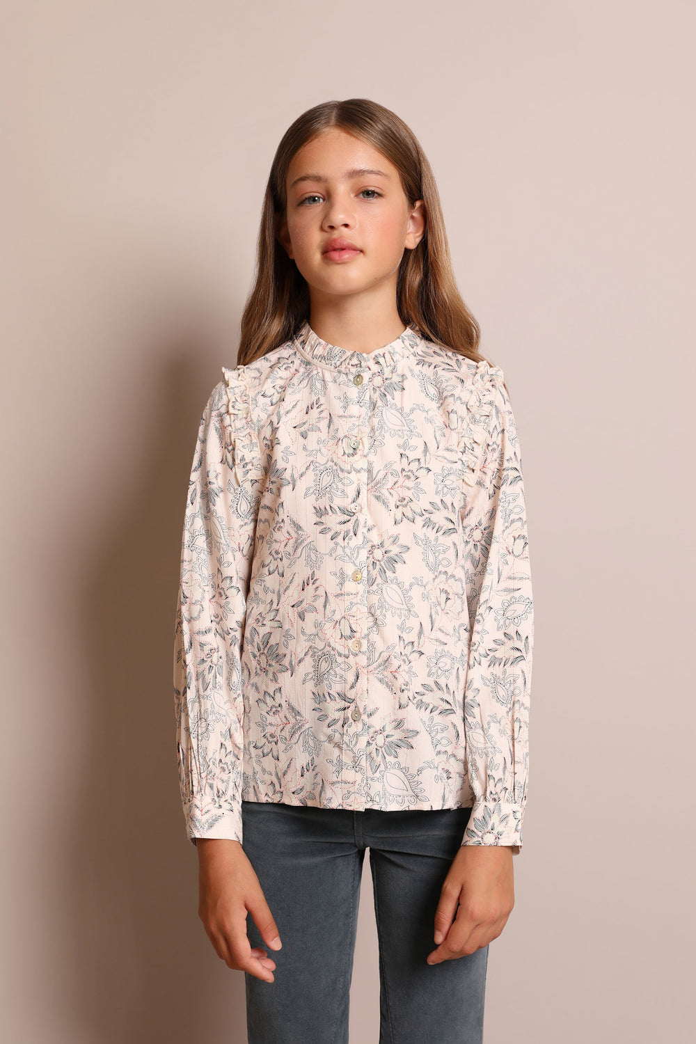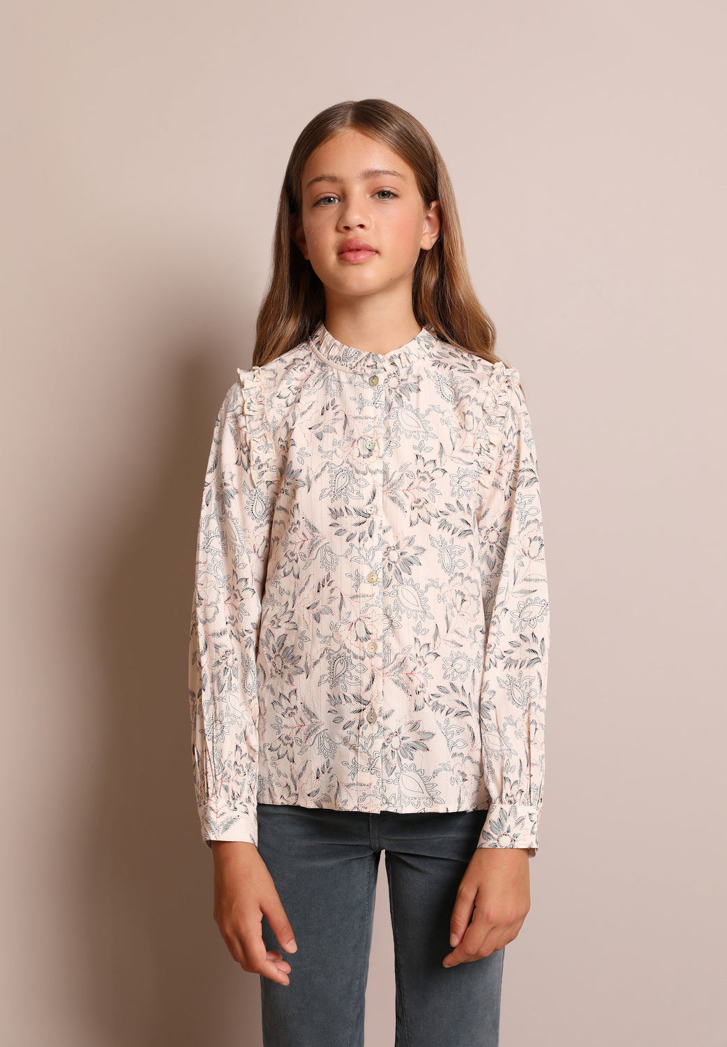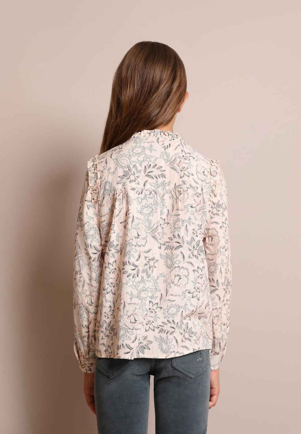 - Manga larga con mini volante en los hombros