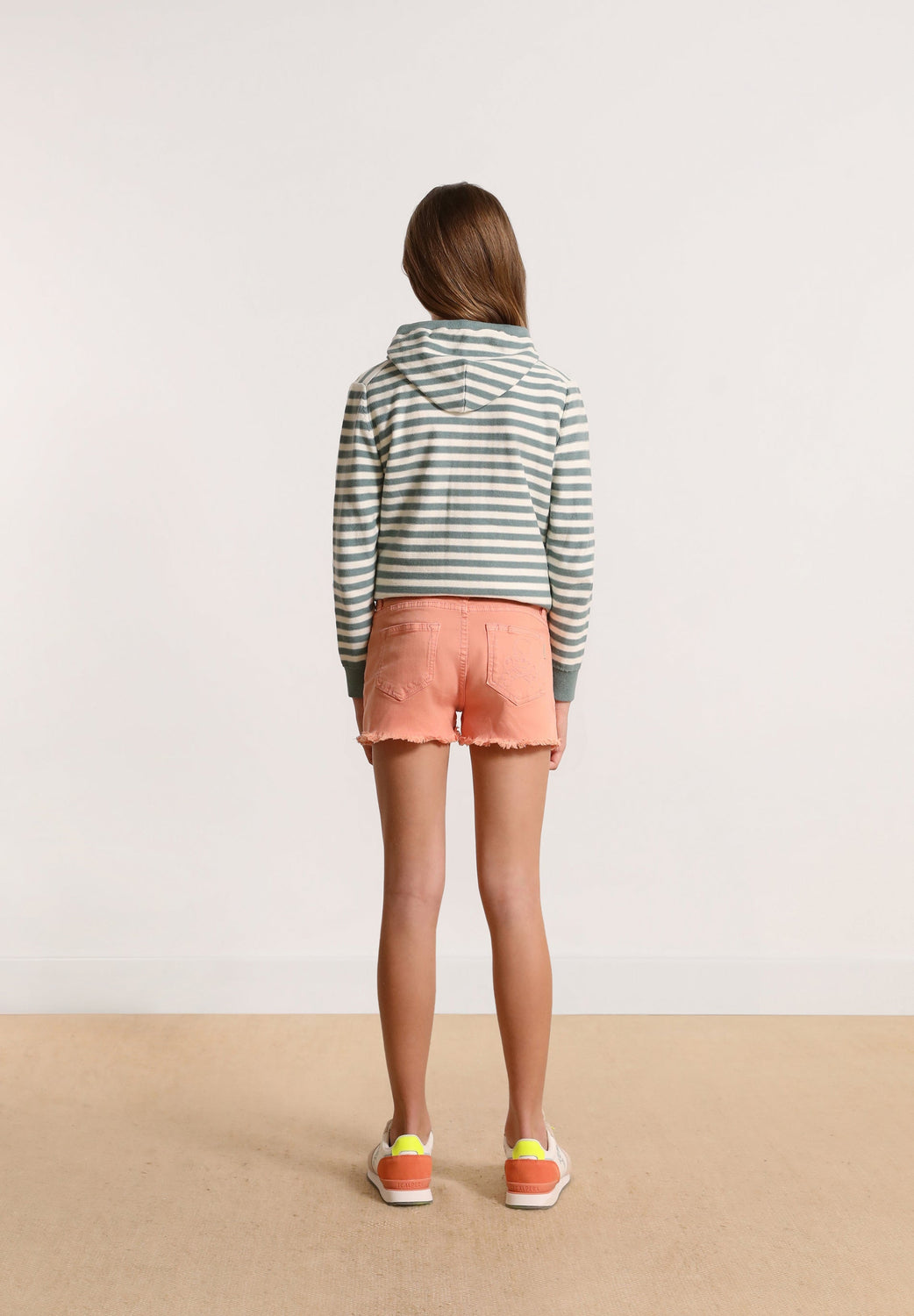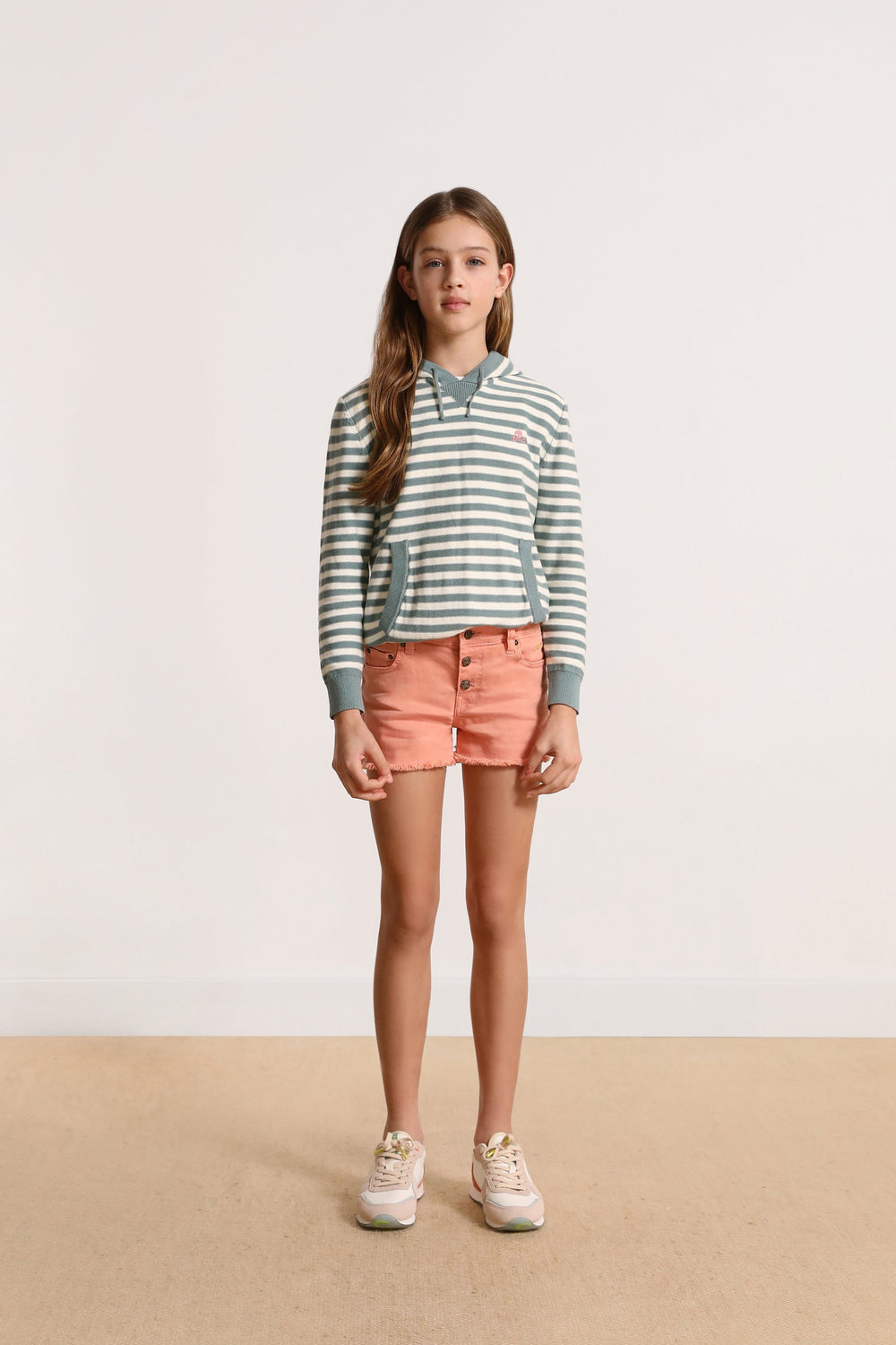 - Confeccionada en mezcla de algodón ligeramente elástica
