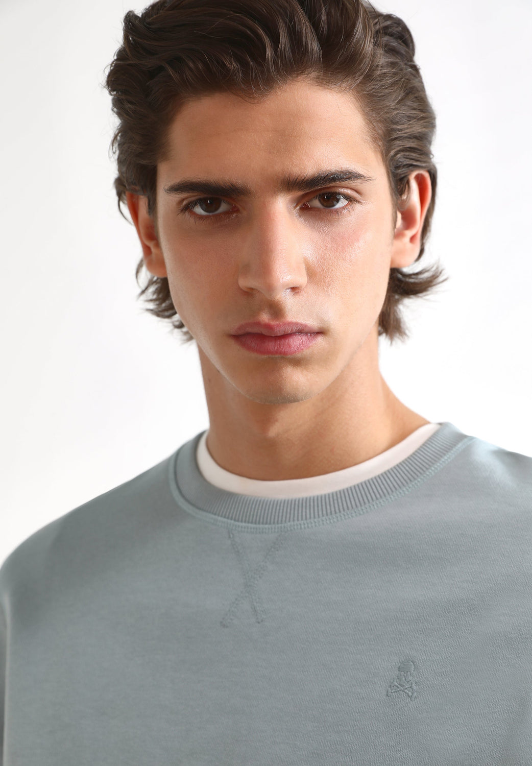 Sudadera básica con la calavera a tono y ribs en puños y bajo,