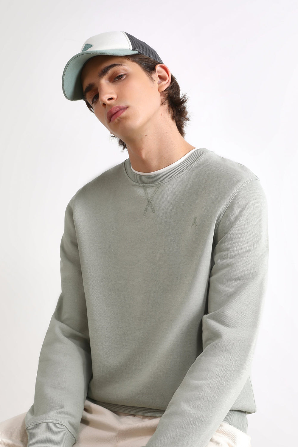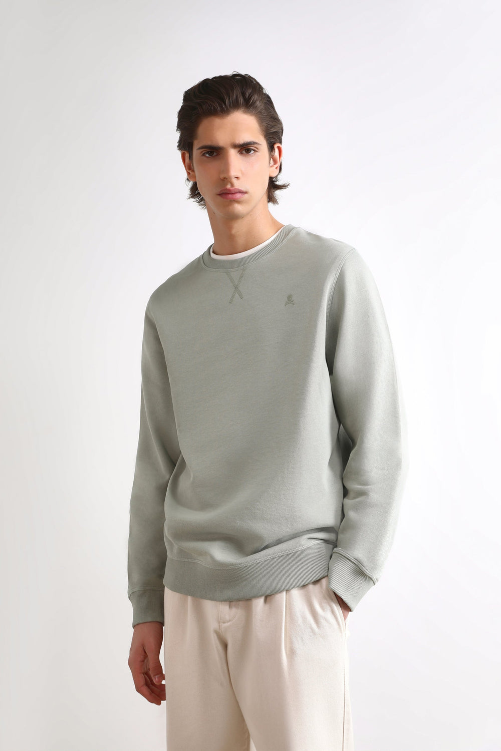 Sudadera básica con la calavera a tono y ribs en puños y bajo,