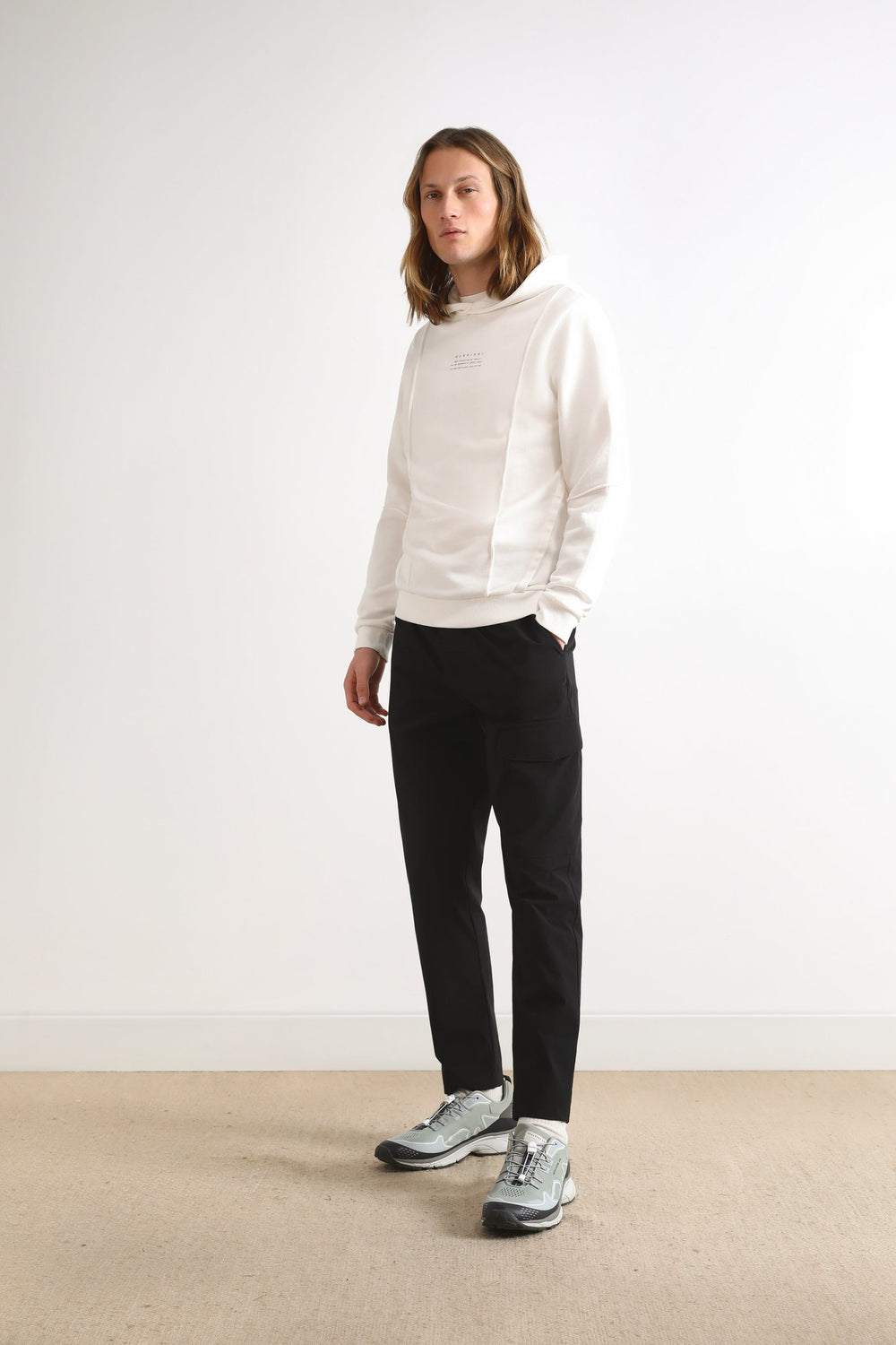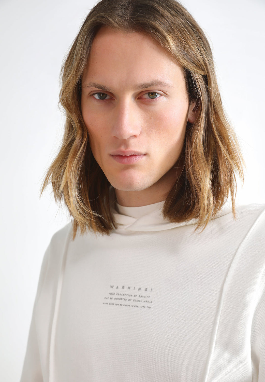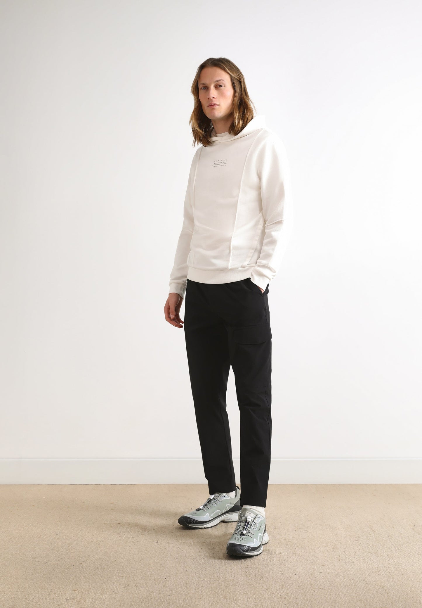 Sudadera con capucha y detalles de costuras y cortes marcados.