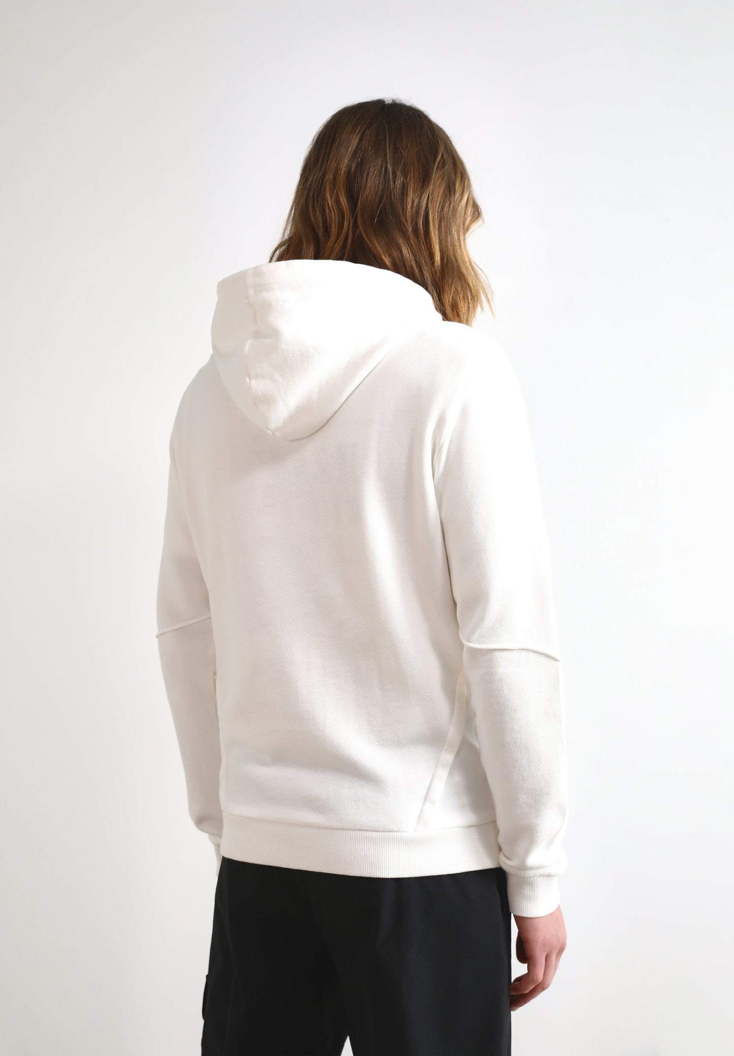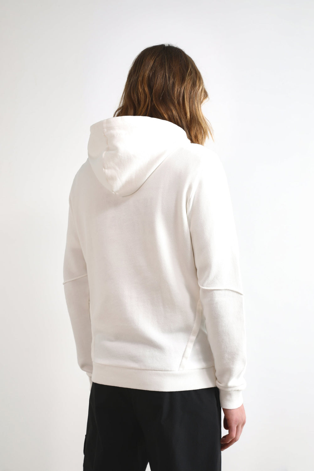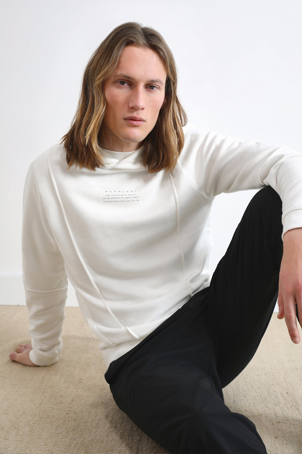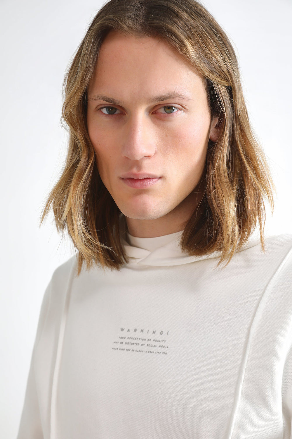 Sudadera con capucha y detalles de costuras y cortes marcados.