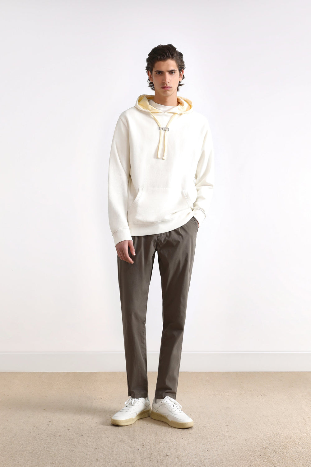 - Cuello con capucha ajustable con cordones