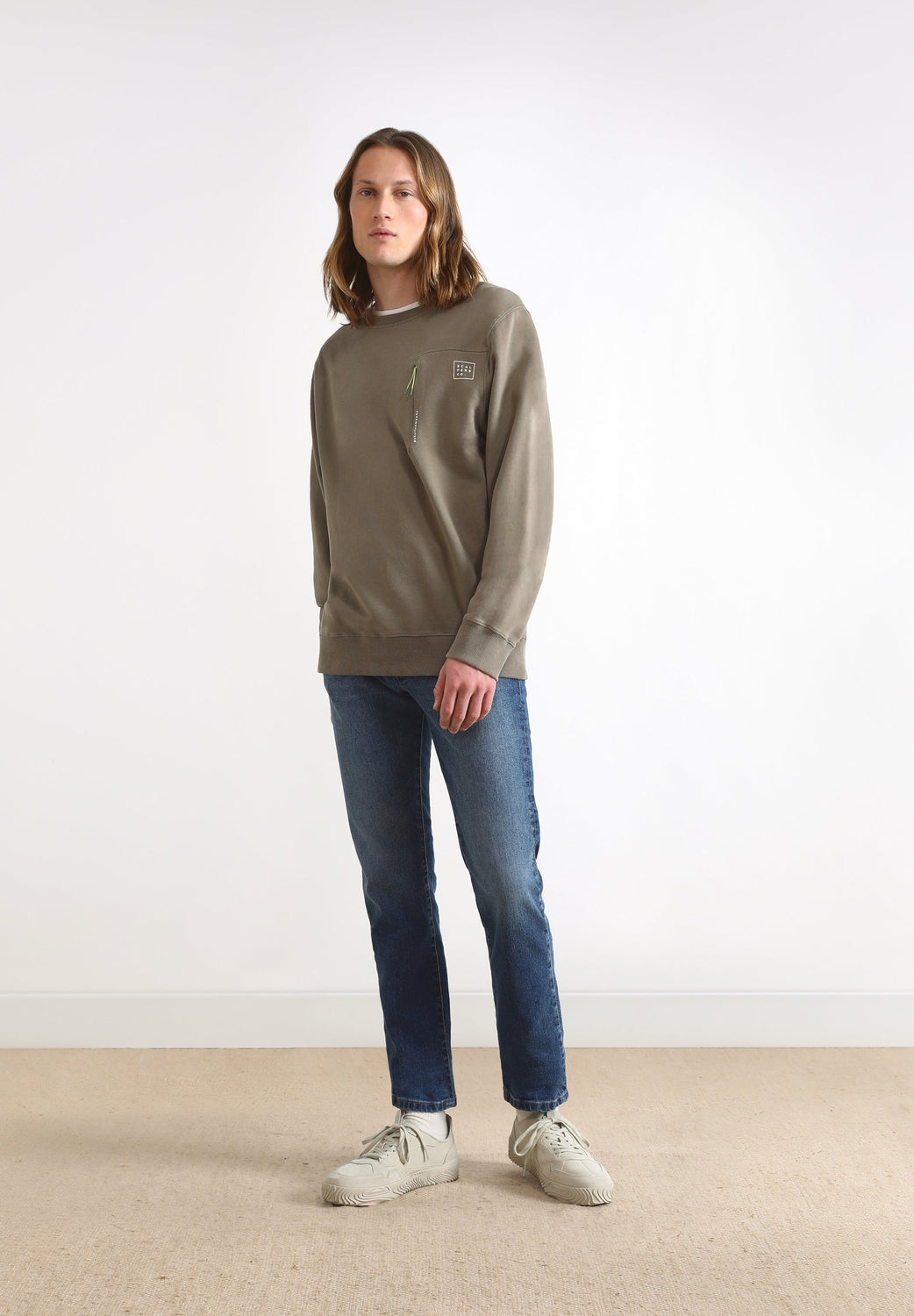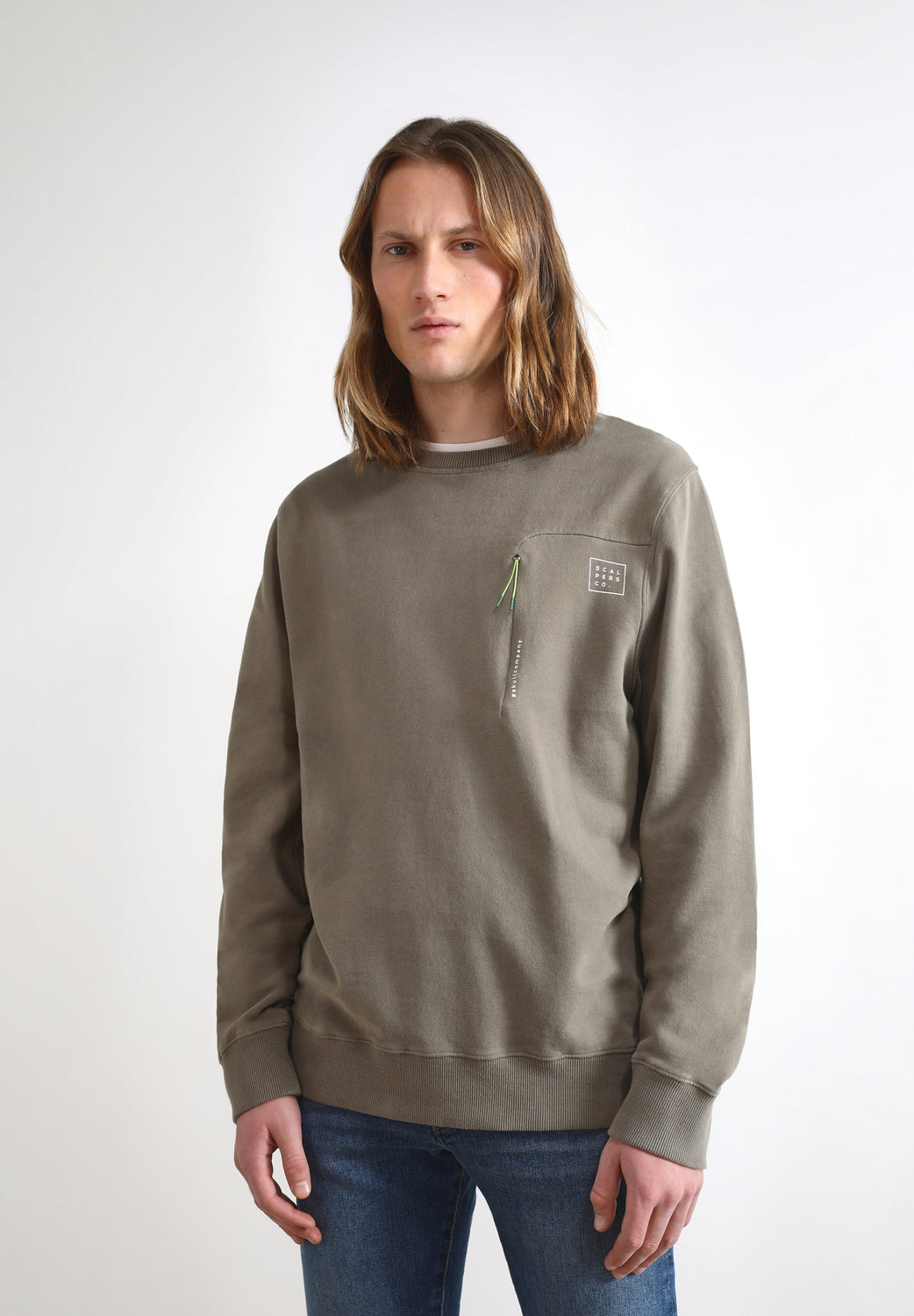 Sudadera detalle bolsillo delantero y etiqueta.