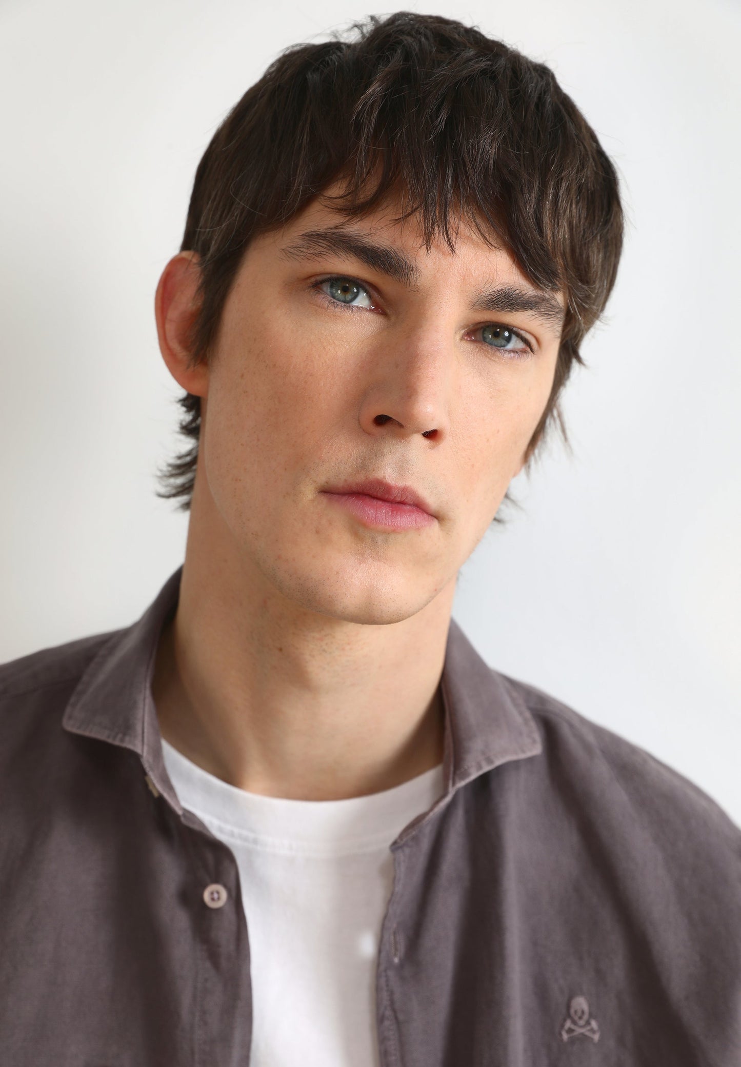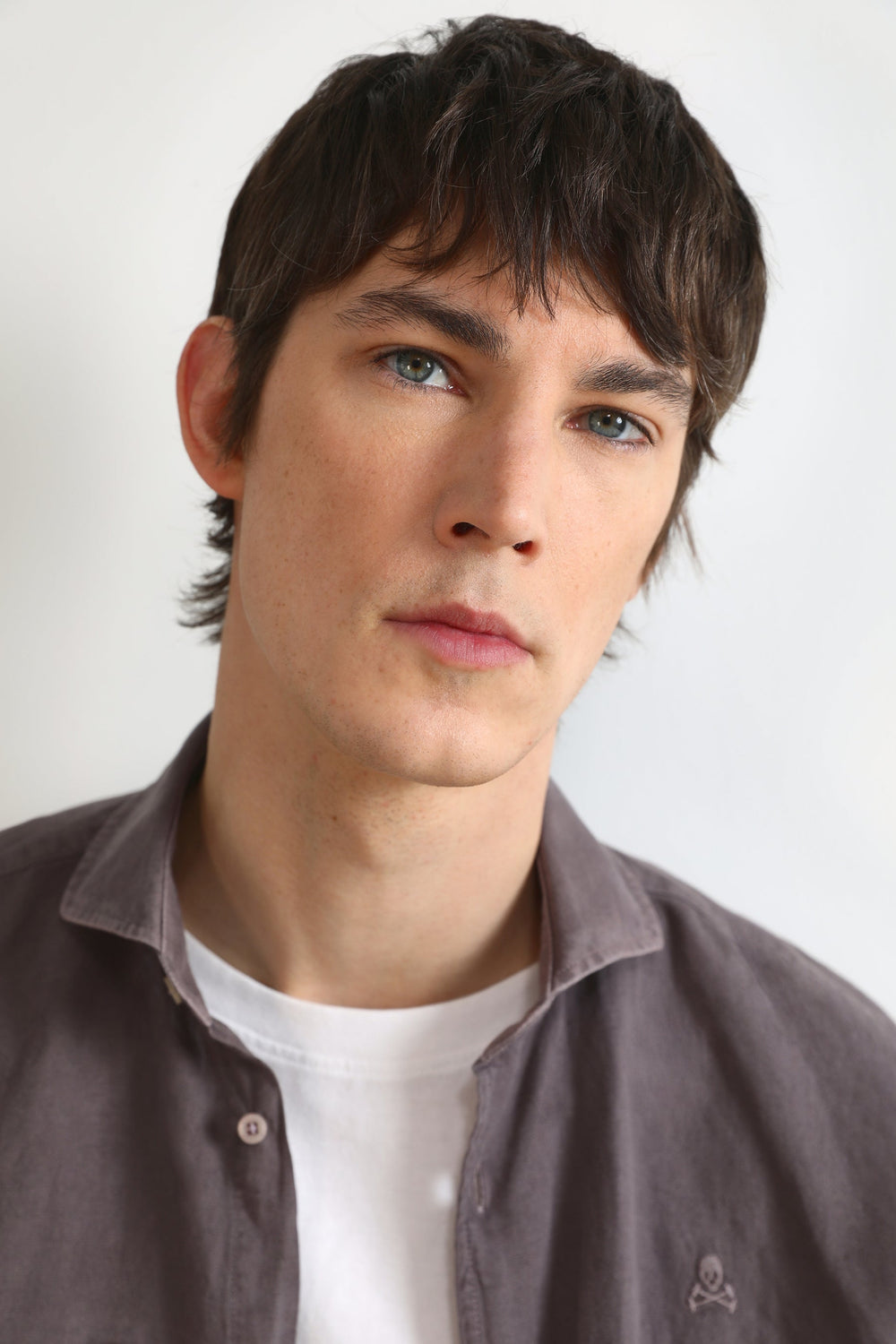 Camisa lino con calavera bordada a tono.