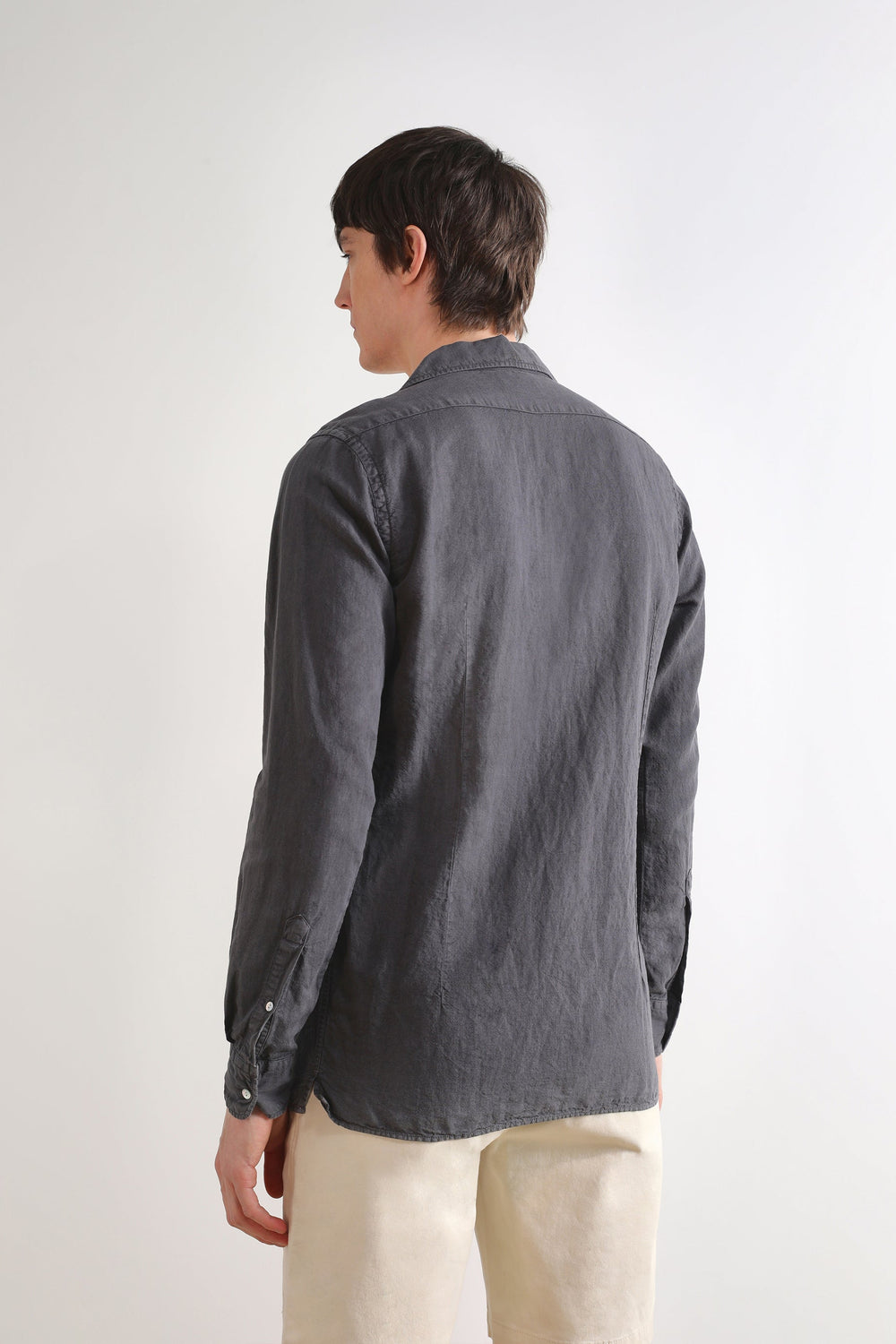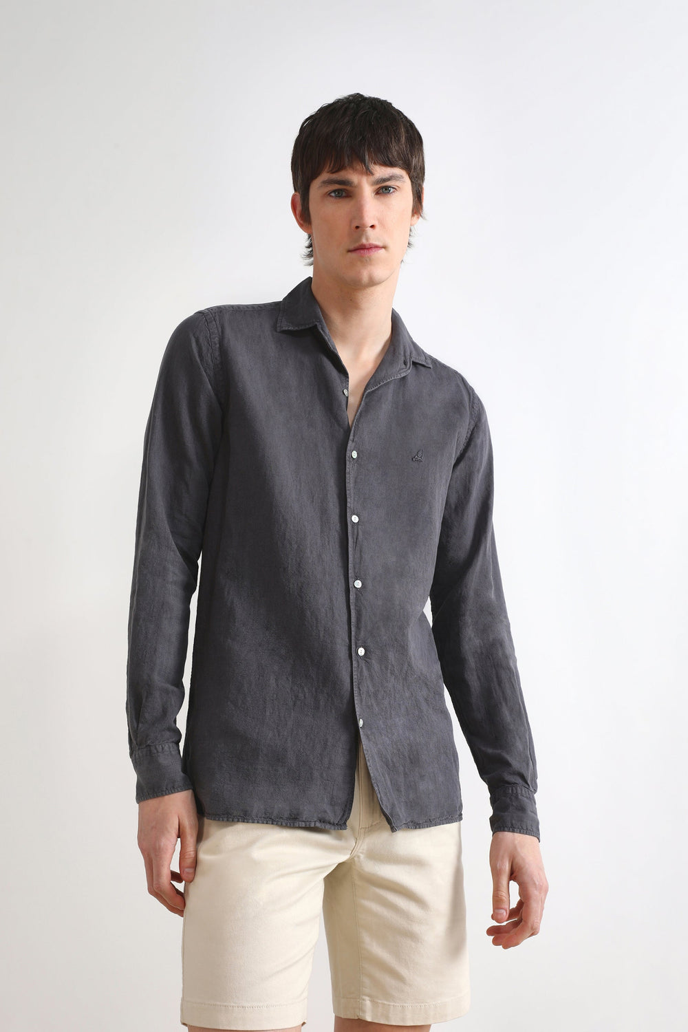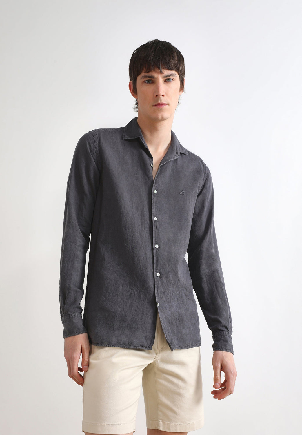 Camisa de lino con cuello estilo pijamero.