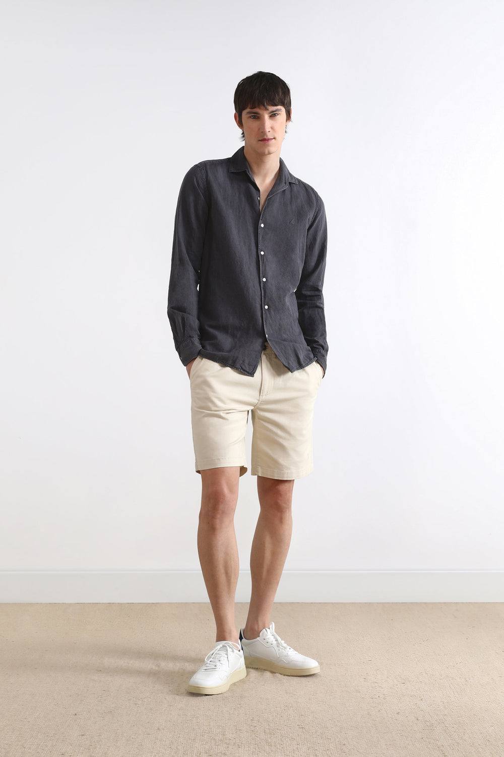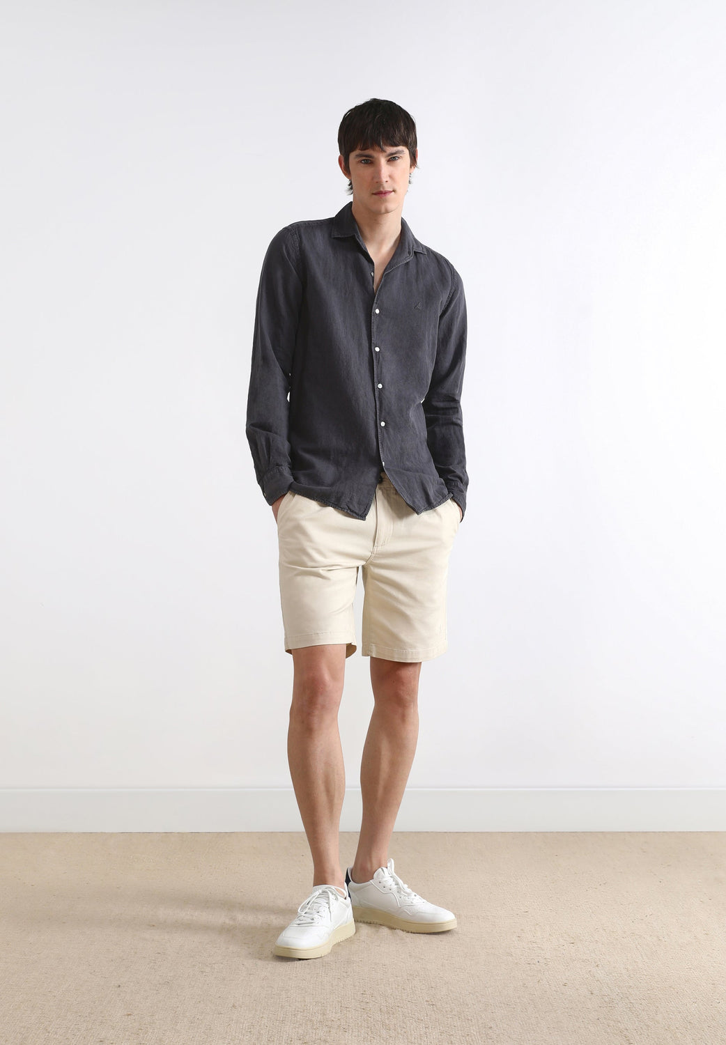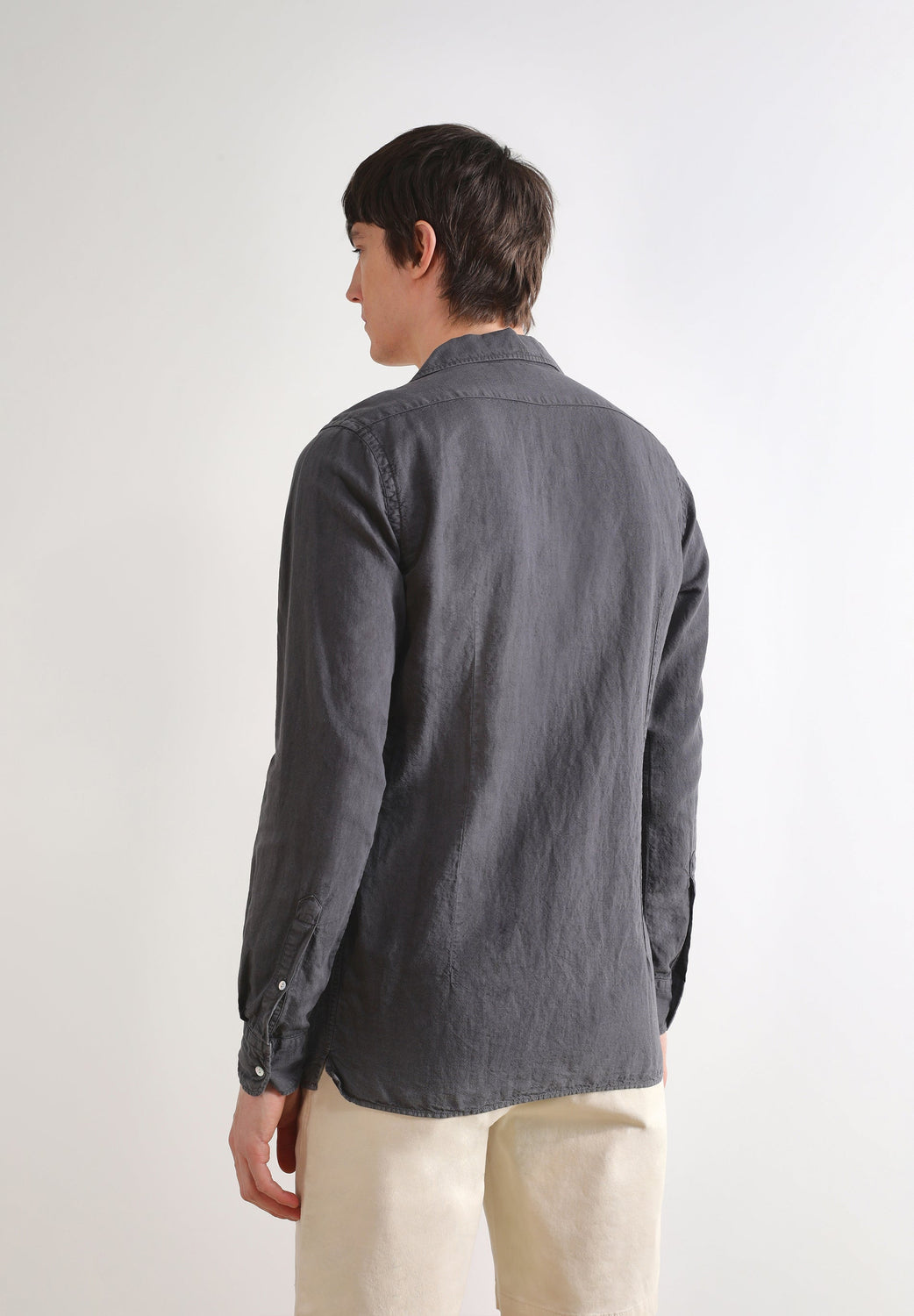 Camisa de lino con cuello estilo pijamero.
