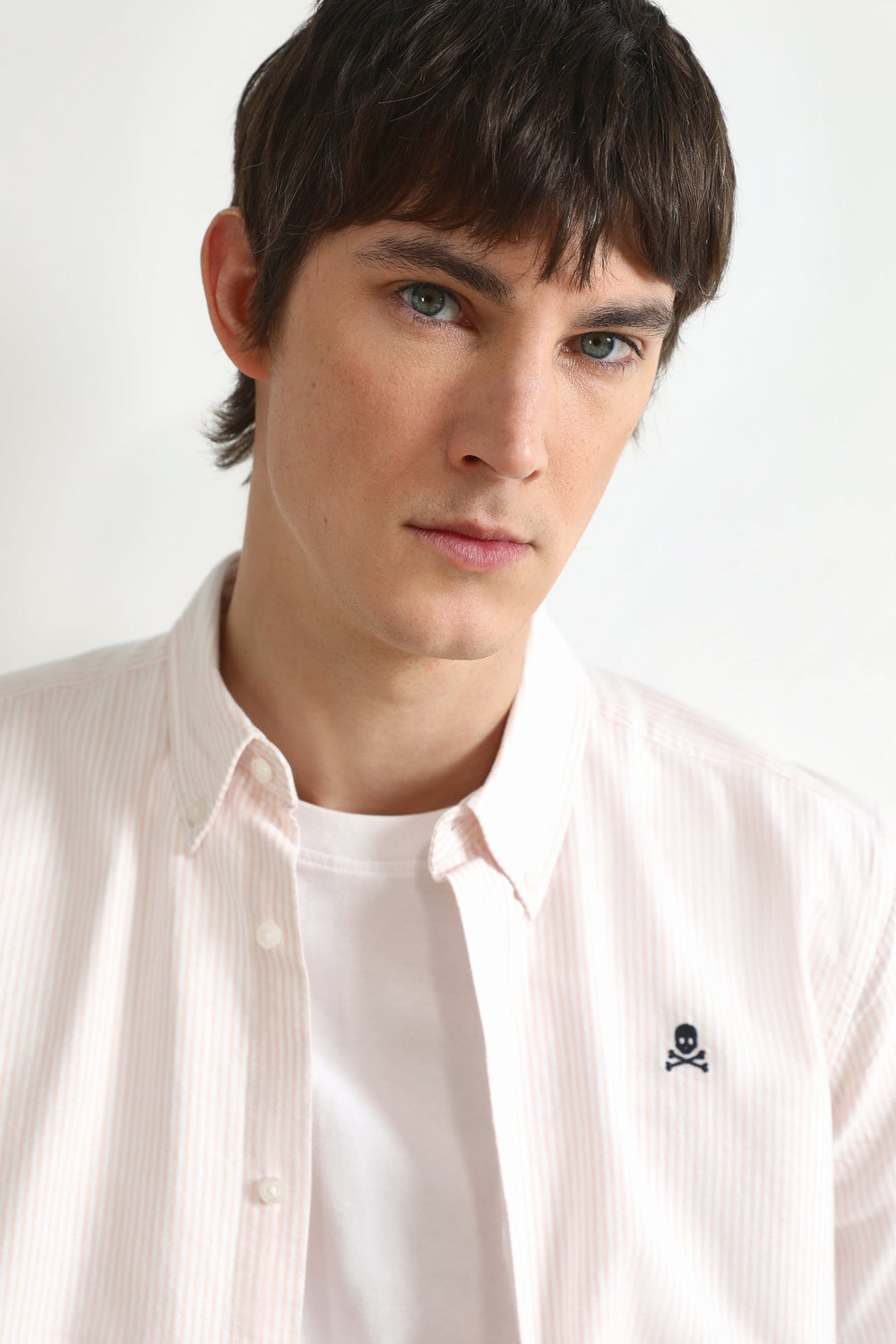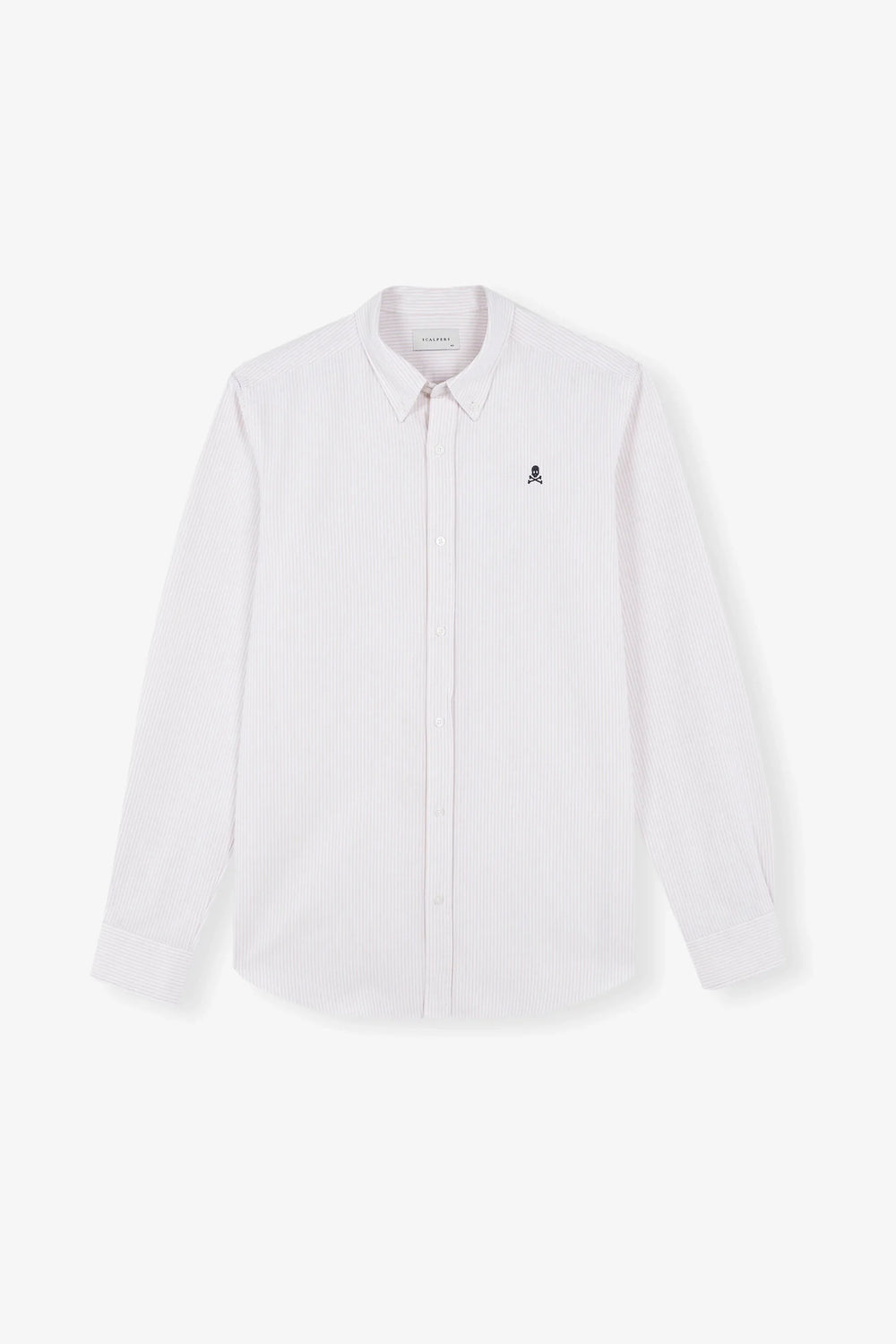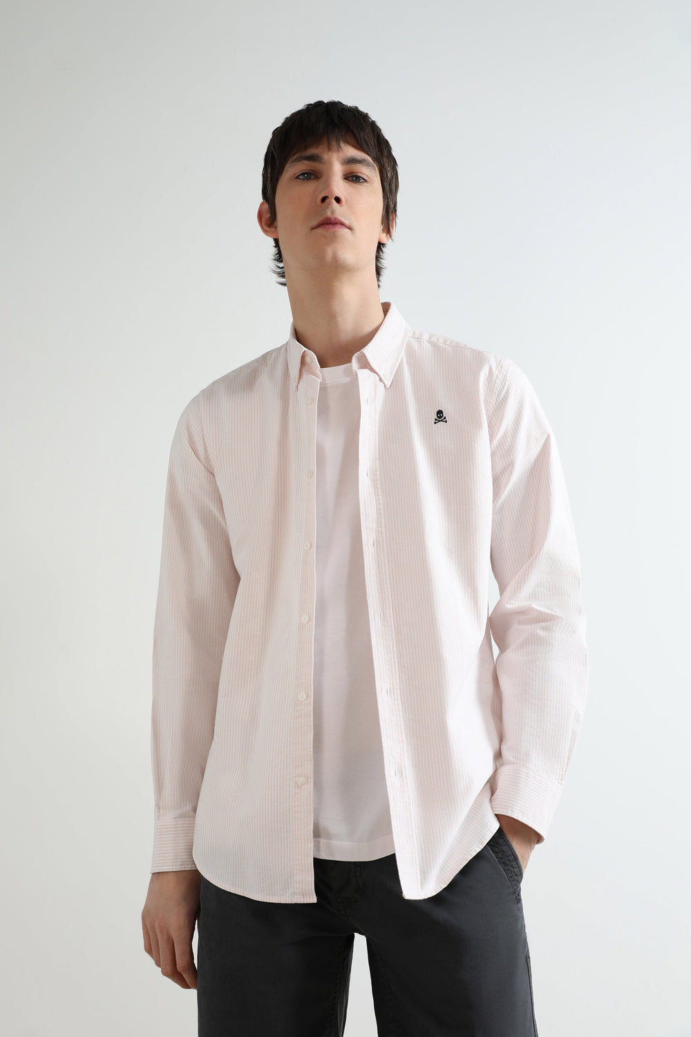 Camisa oxford de rayas con calavera a contraste.