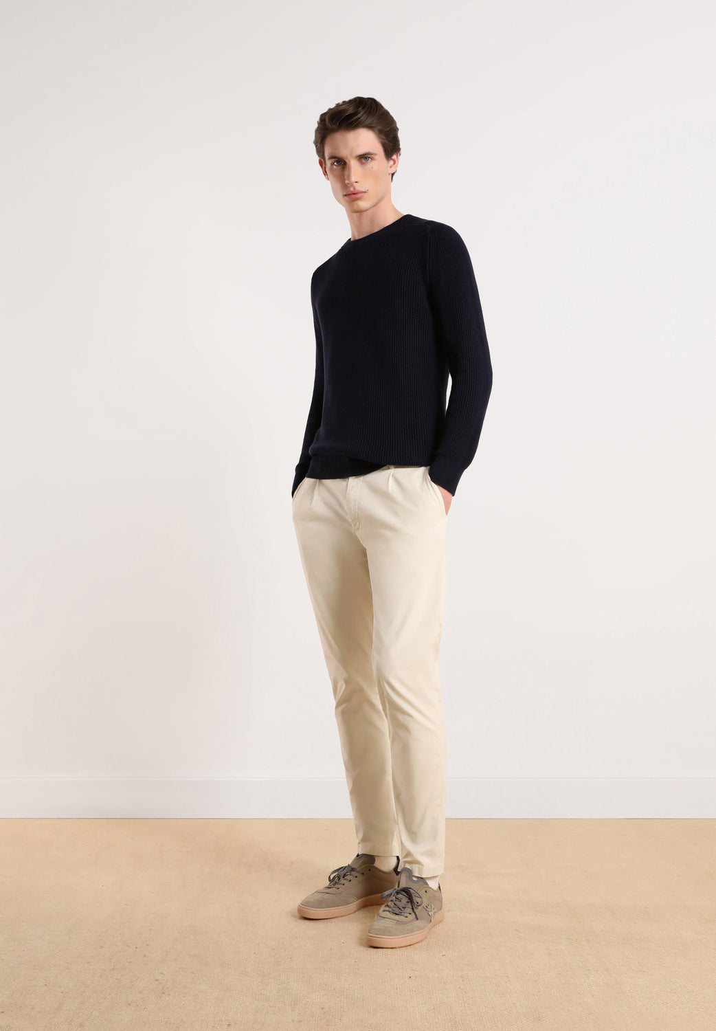 Sweater básico con tejido de punto tipo canalé.