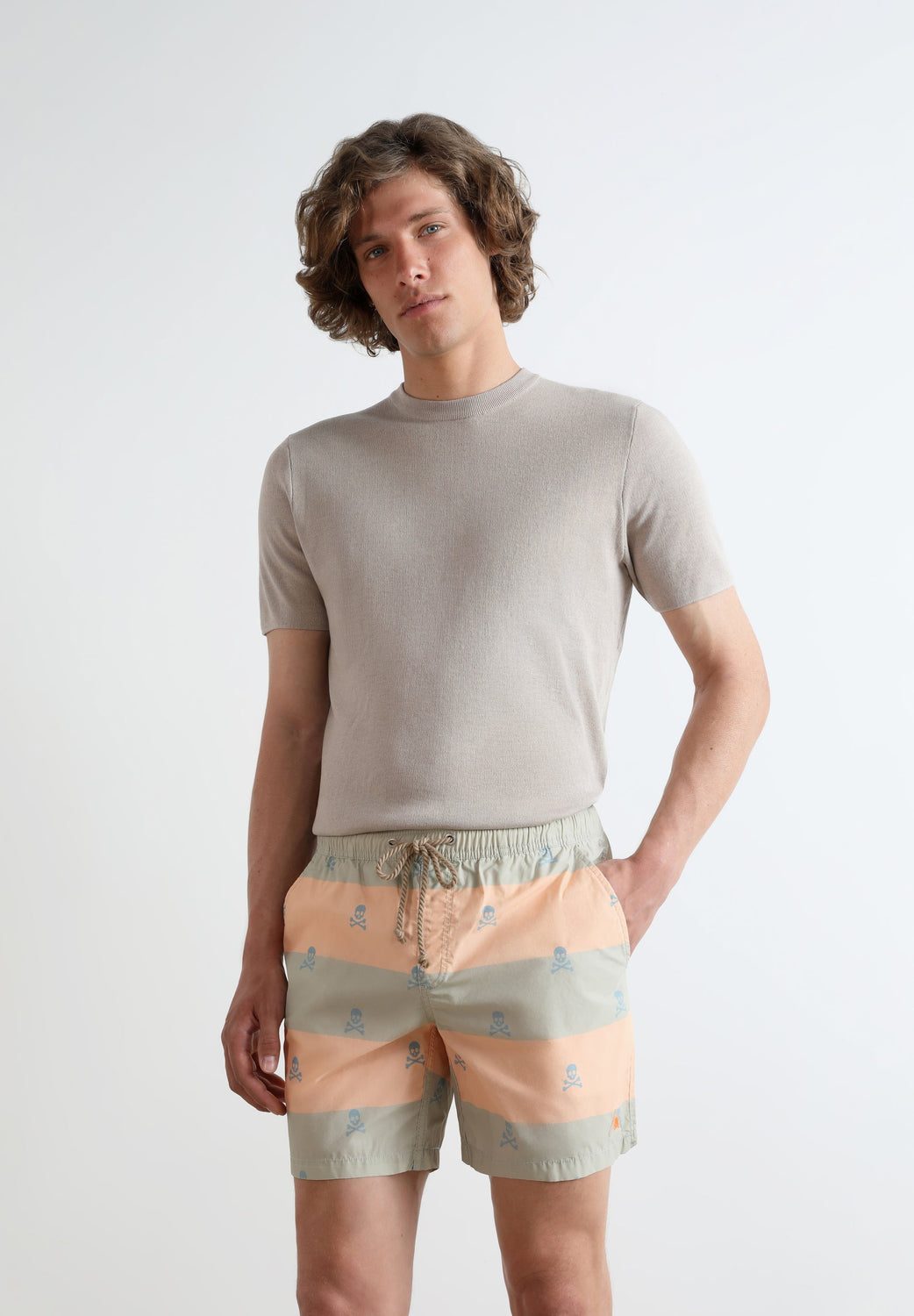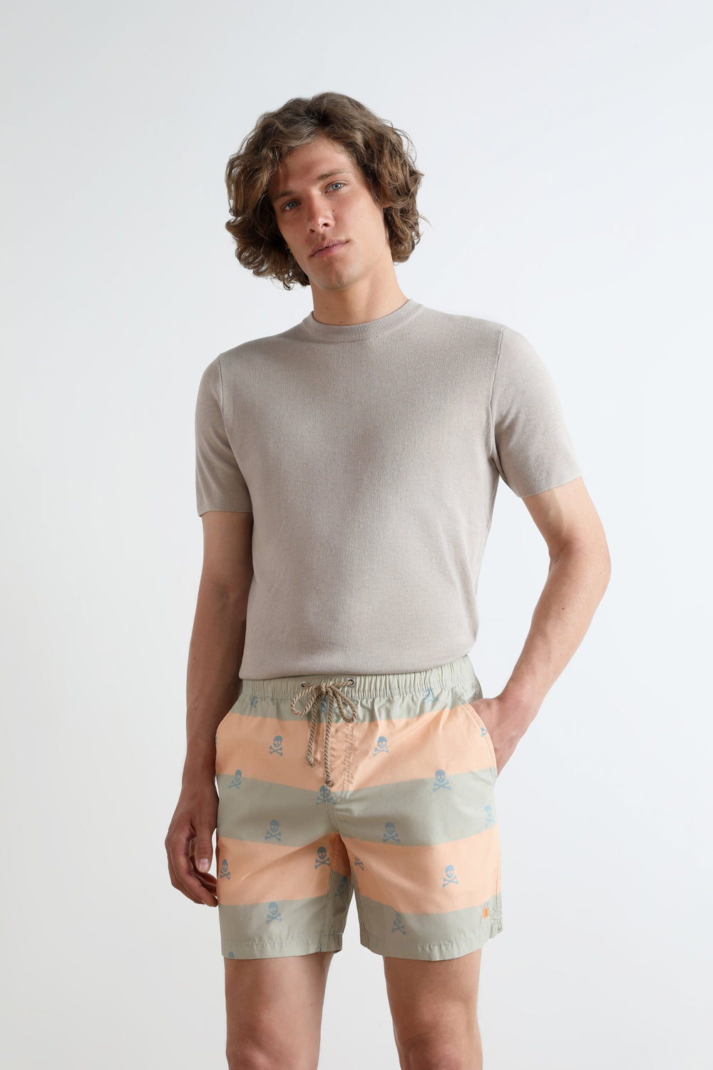 Bañador de rayas y calaveras.