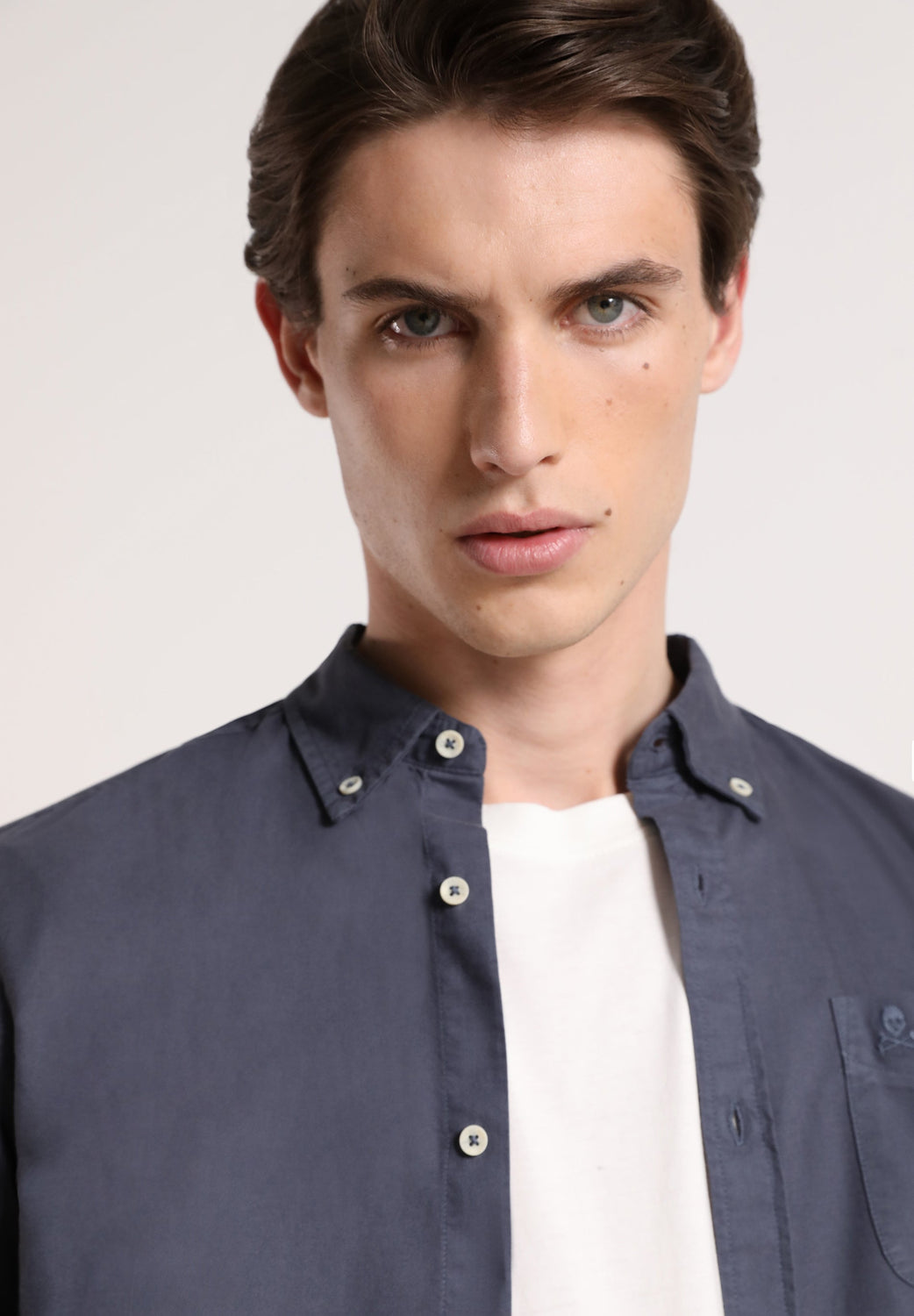 Camisa lavada con calavera bordada a tono.