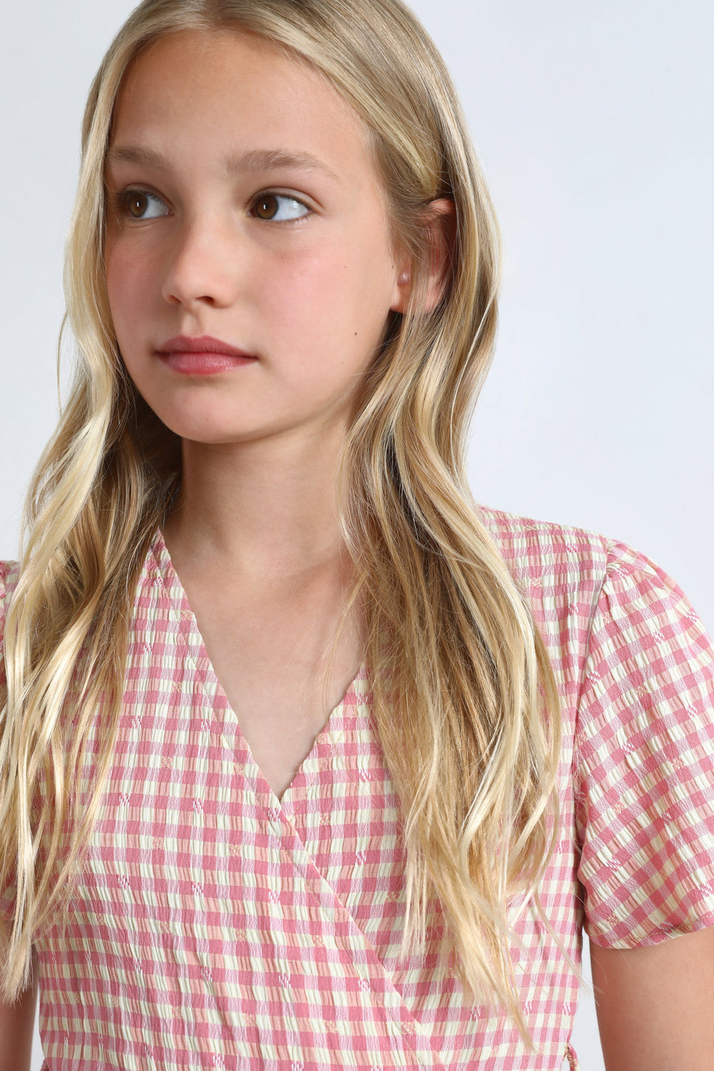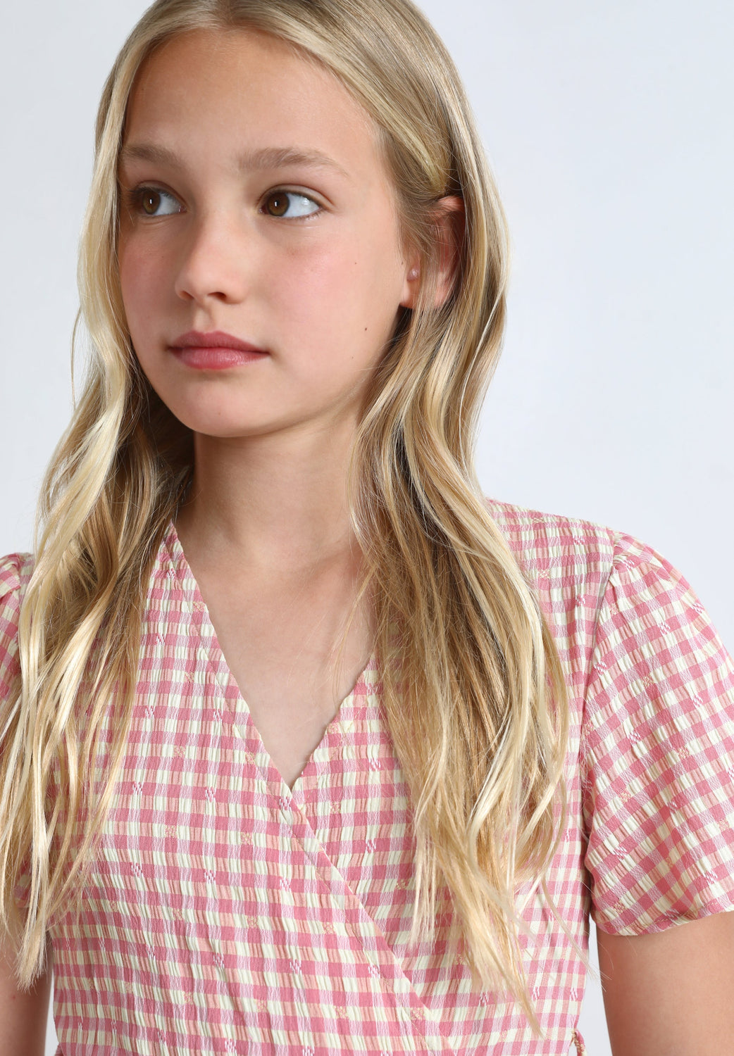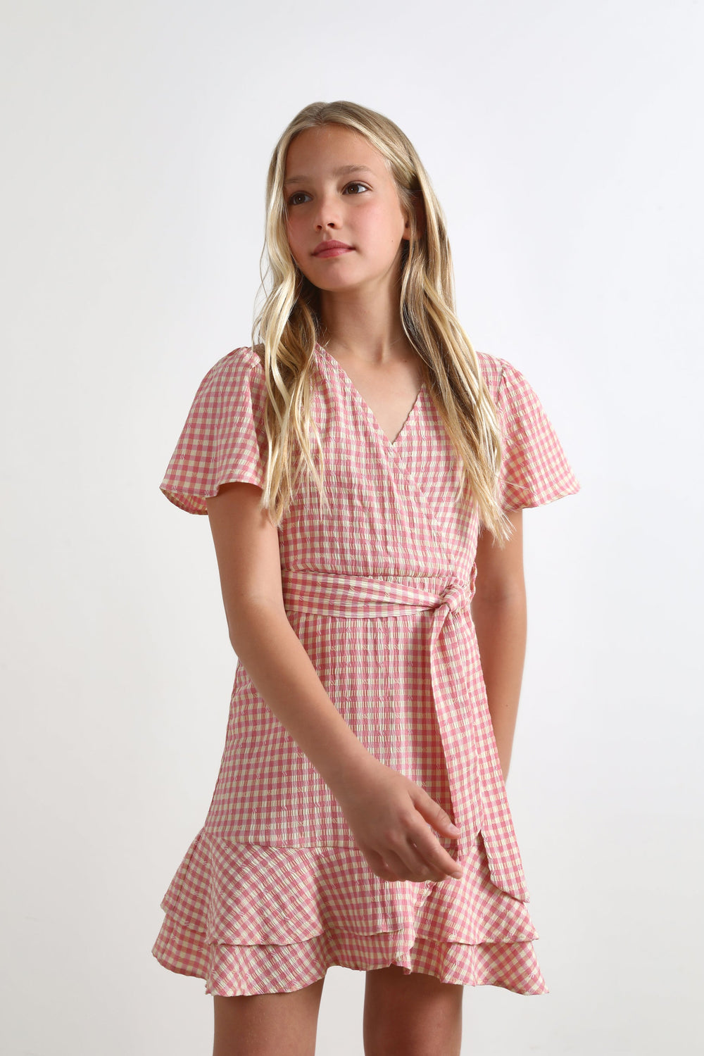 Vestido tipo pareo con estampado vichy.