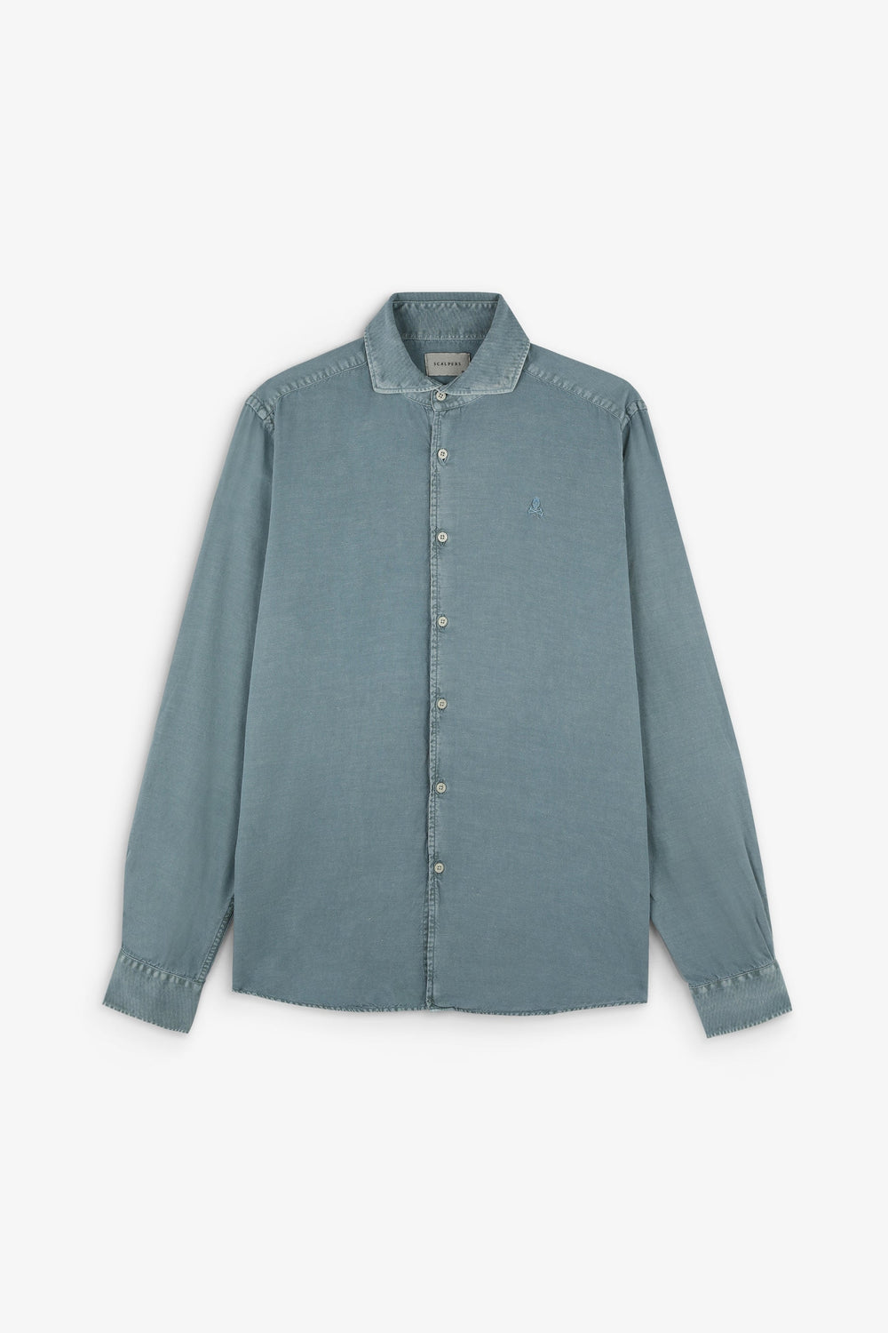 Camisa lino con calavera bordada a tono.