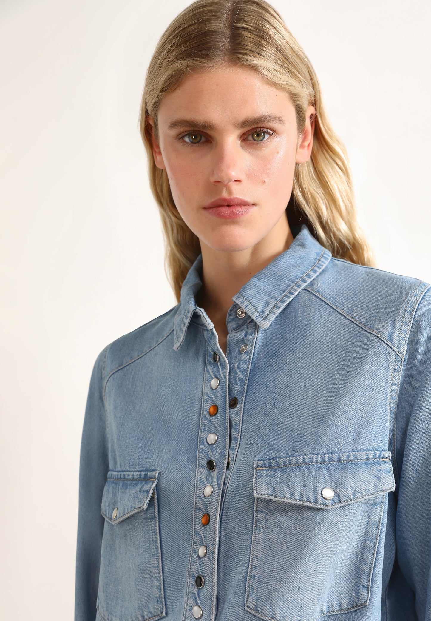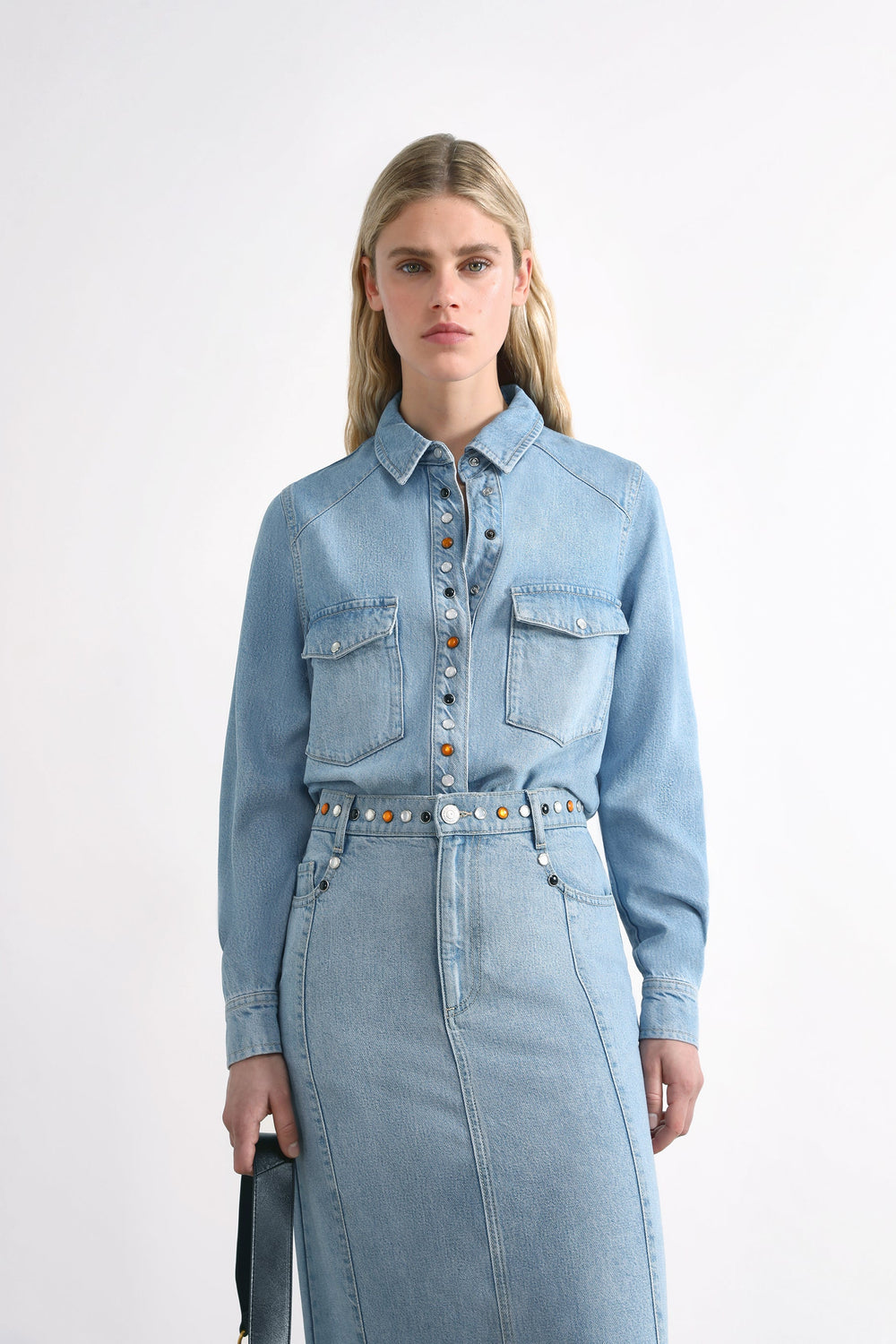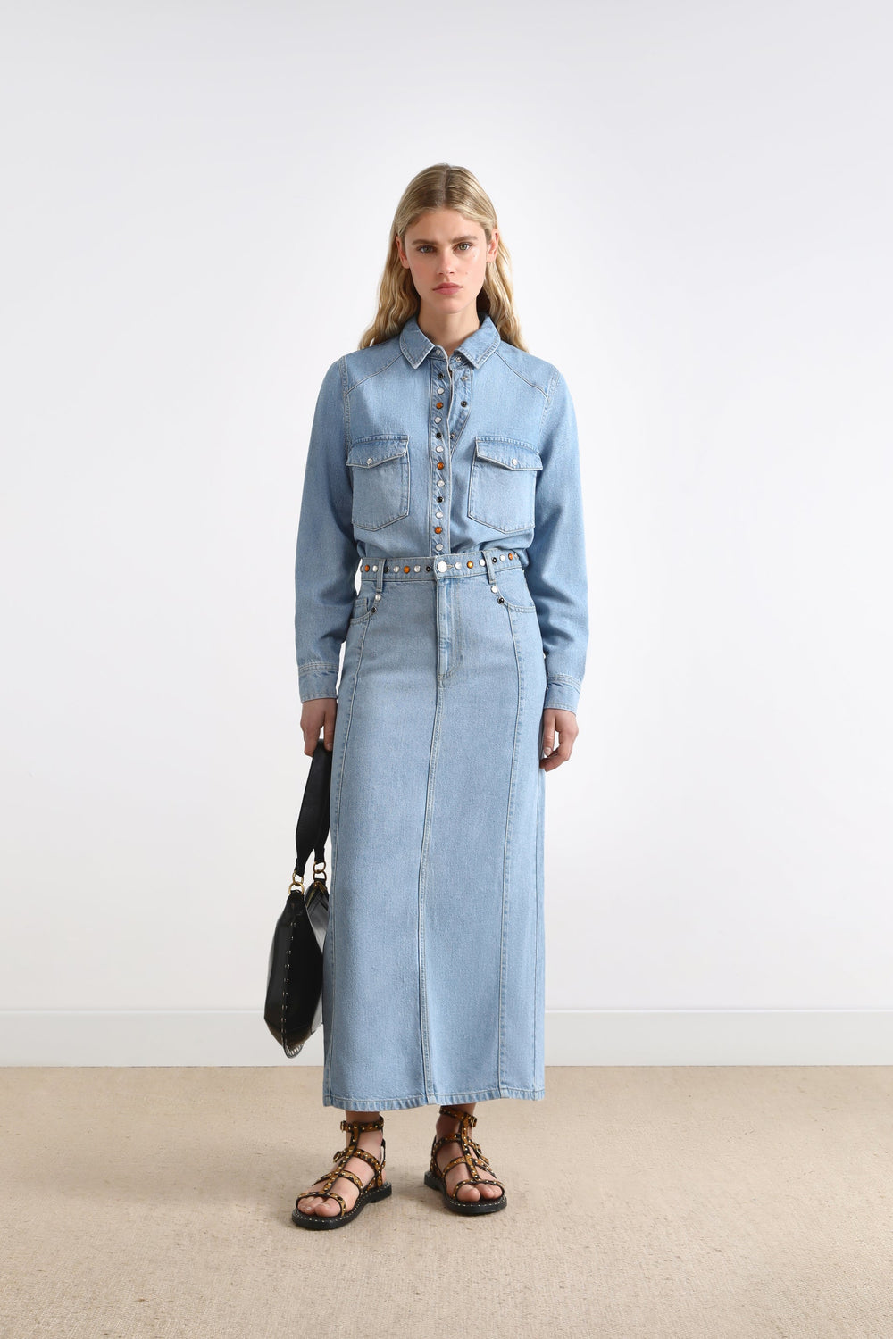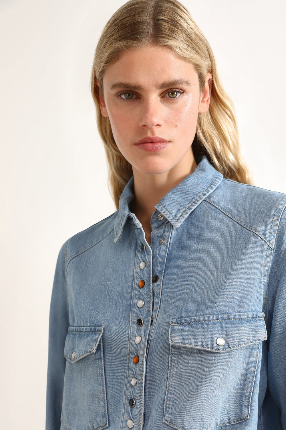 Camisa denim con detalle tachas.