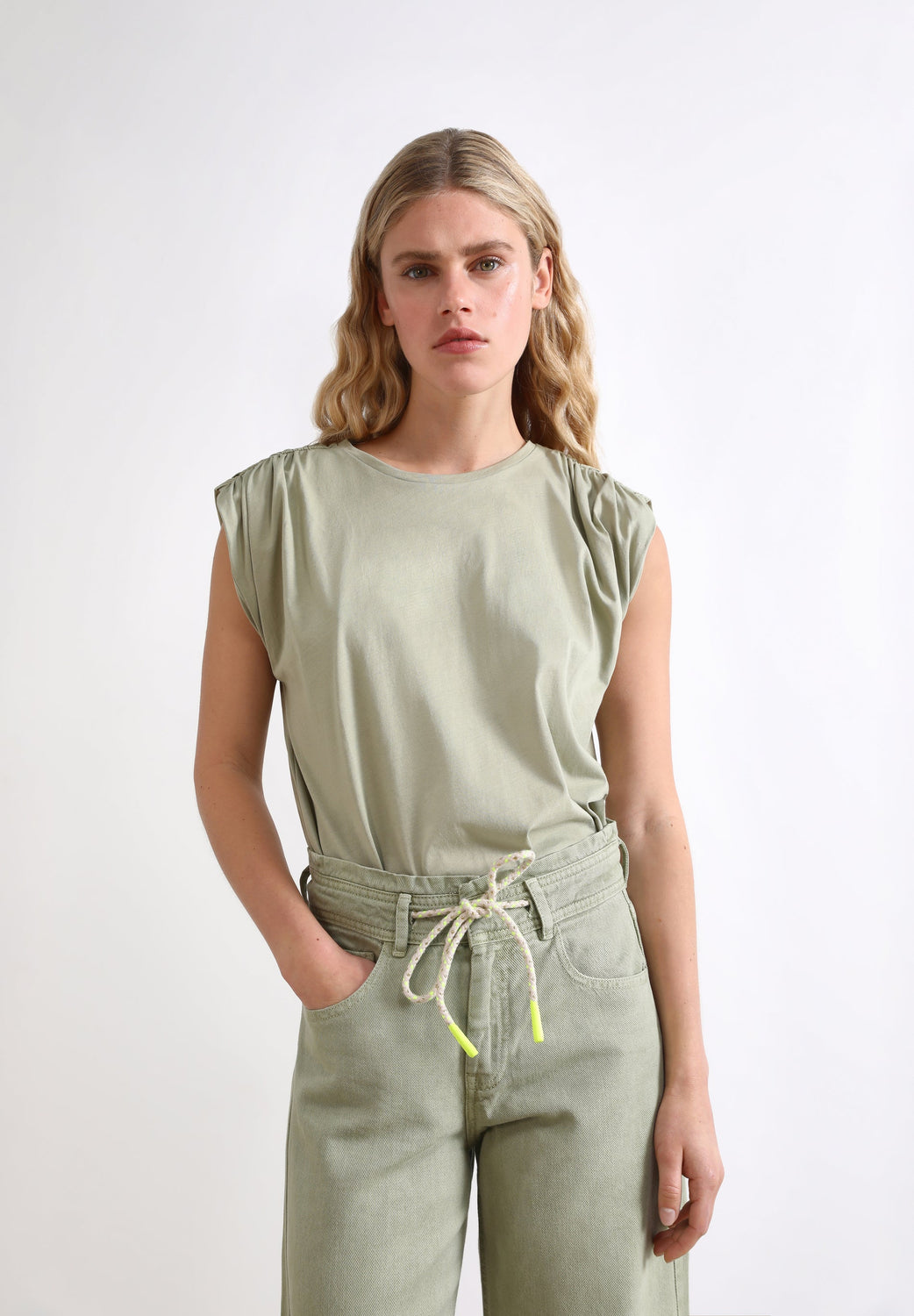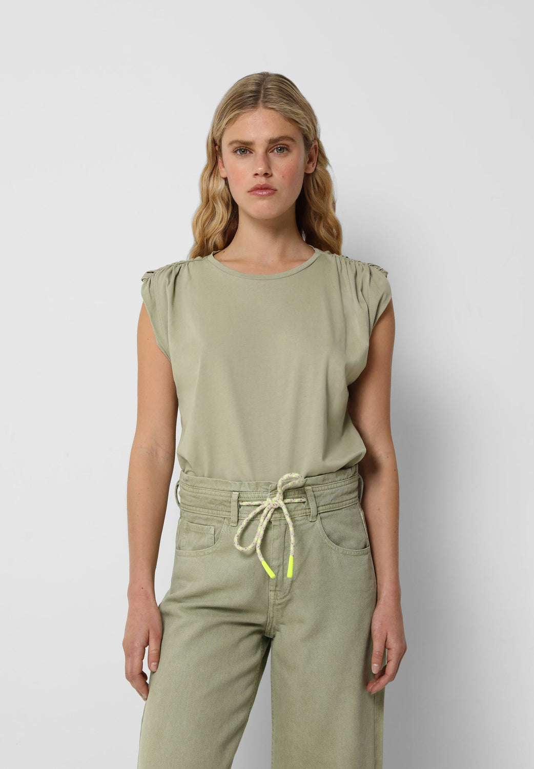 Polera con detalle de frunce en hombros.