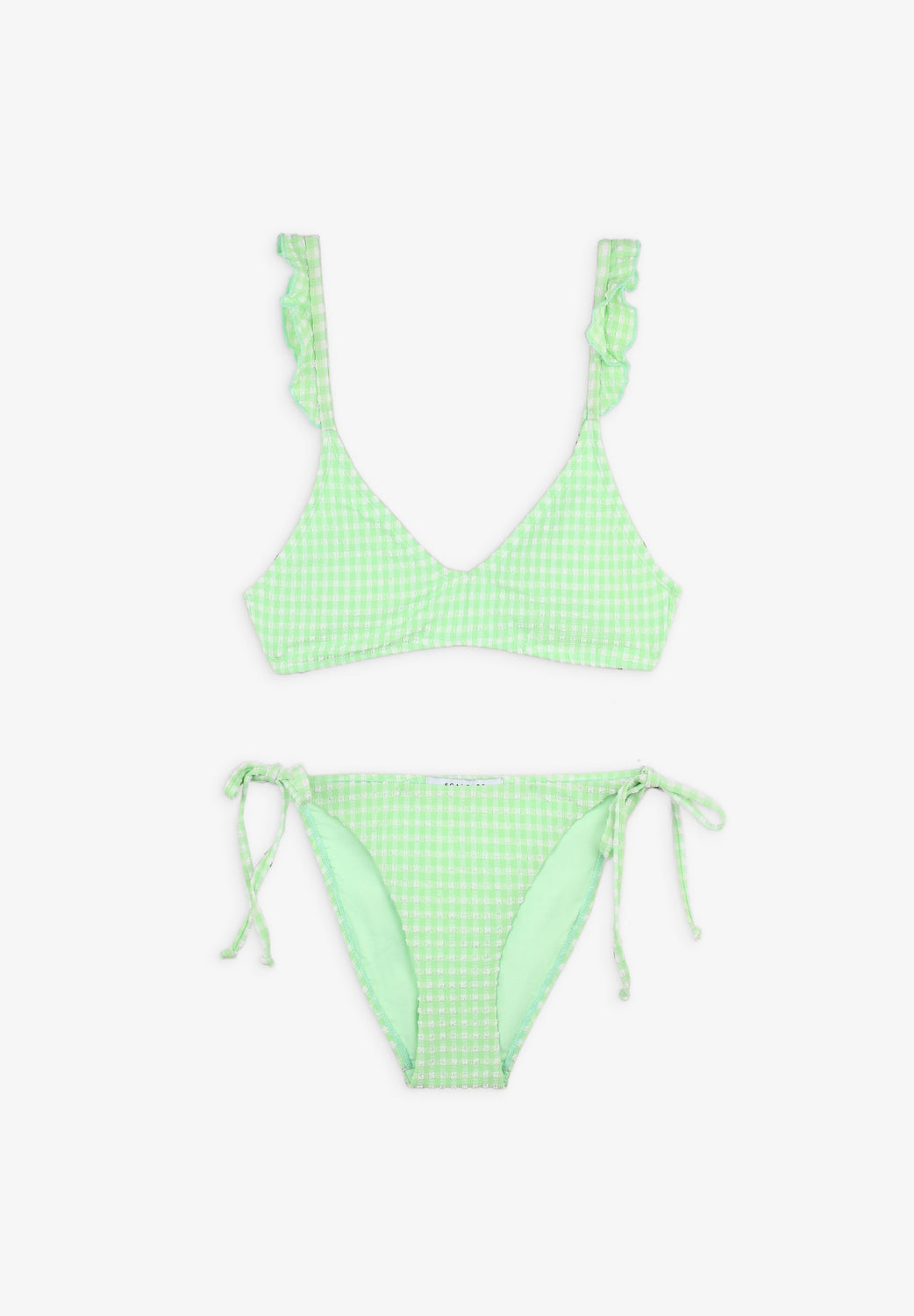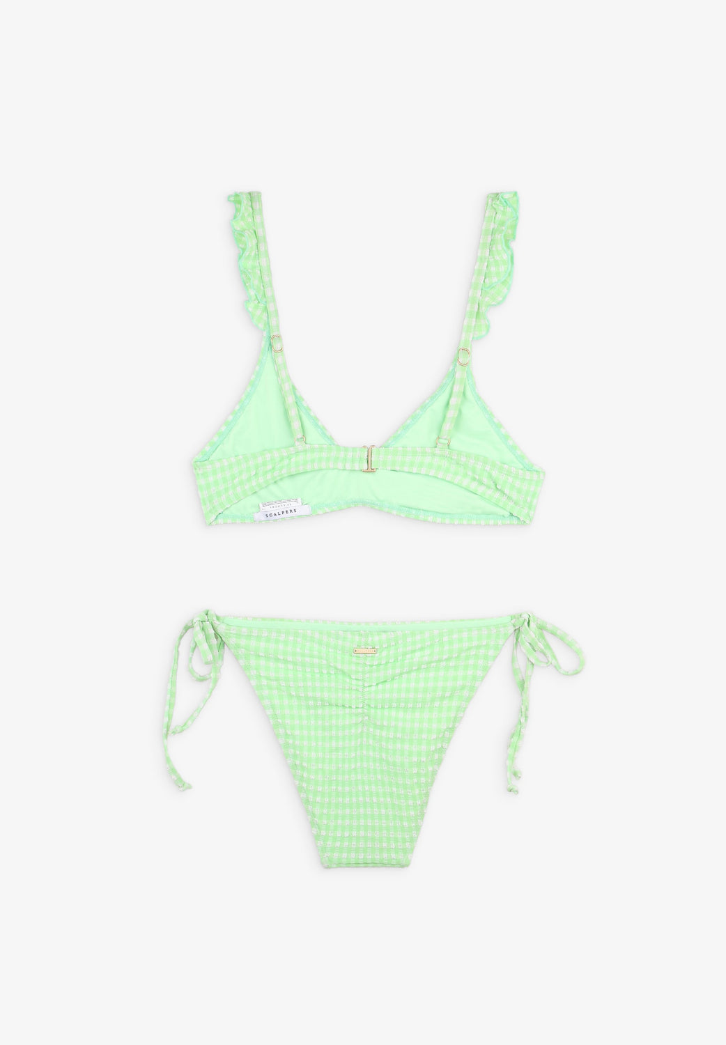 - Parte de arriba con cierre de corchete y tirantes con volantes