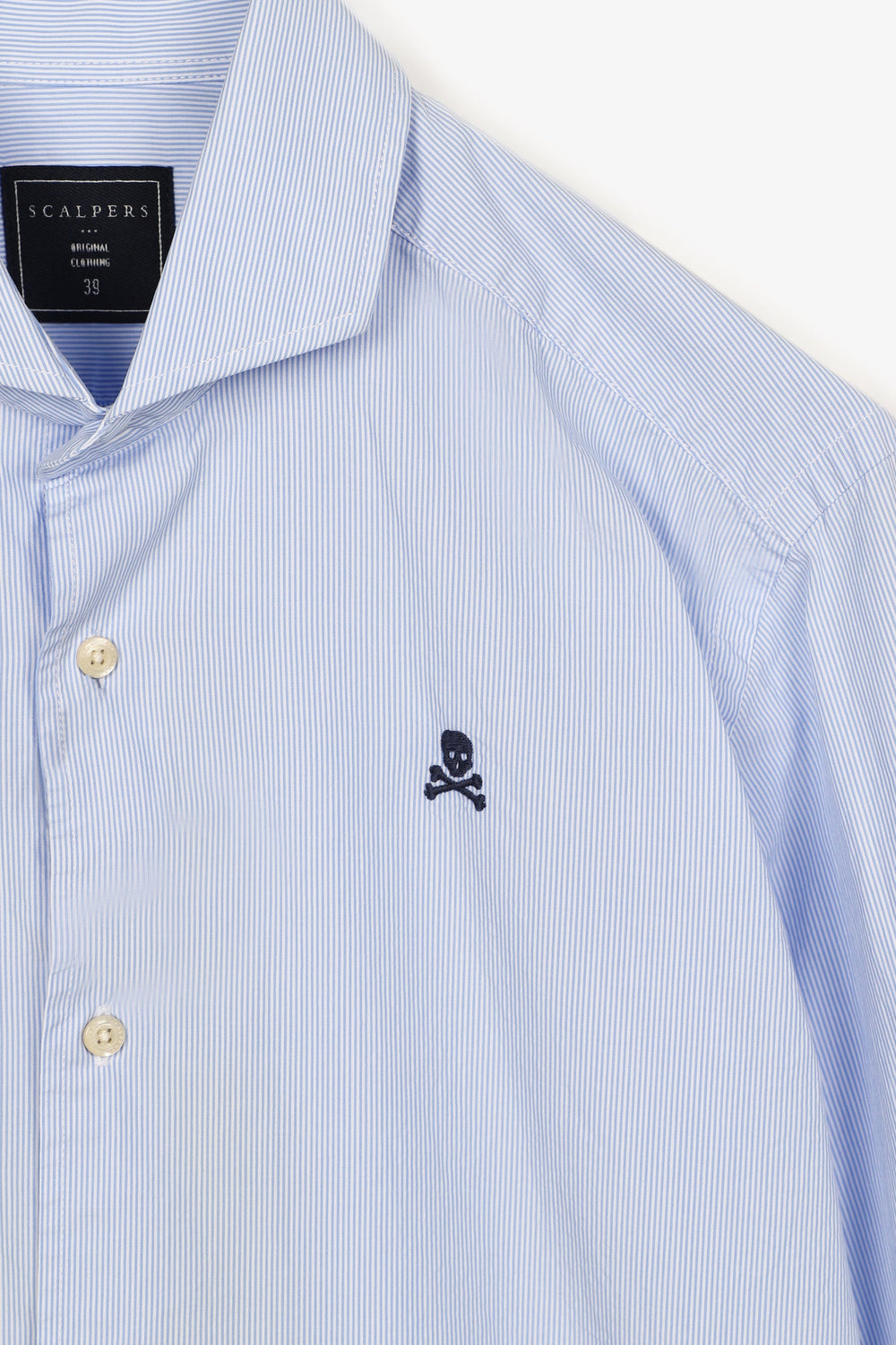 Camisa de vestir de rayas con calavera a contraste.