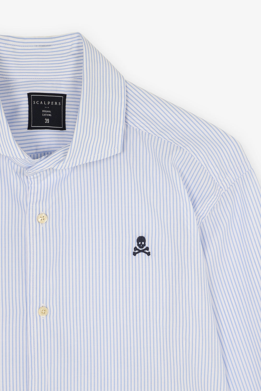 Camisa de vestir de rayas con calavera a contraste.