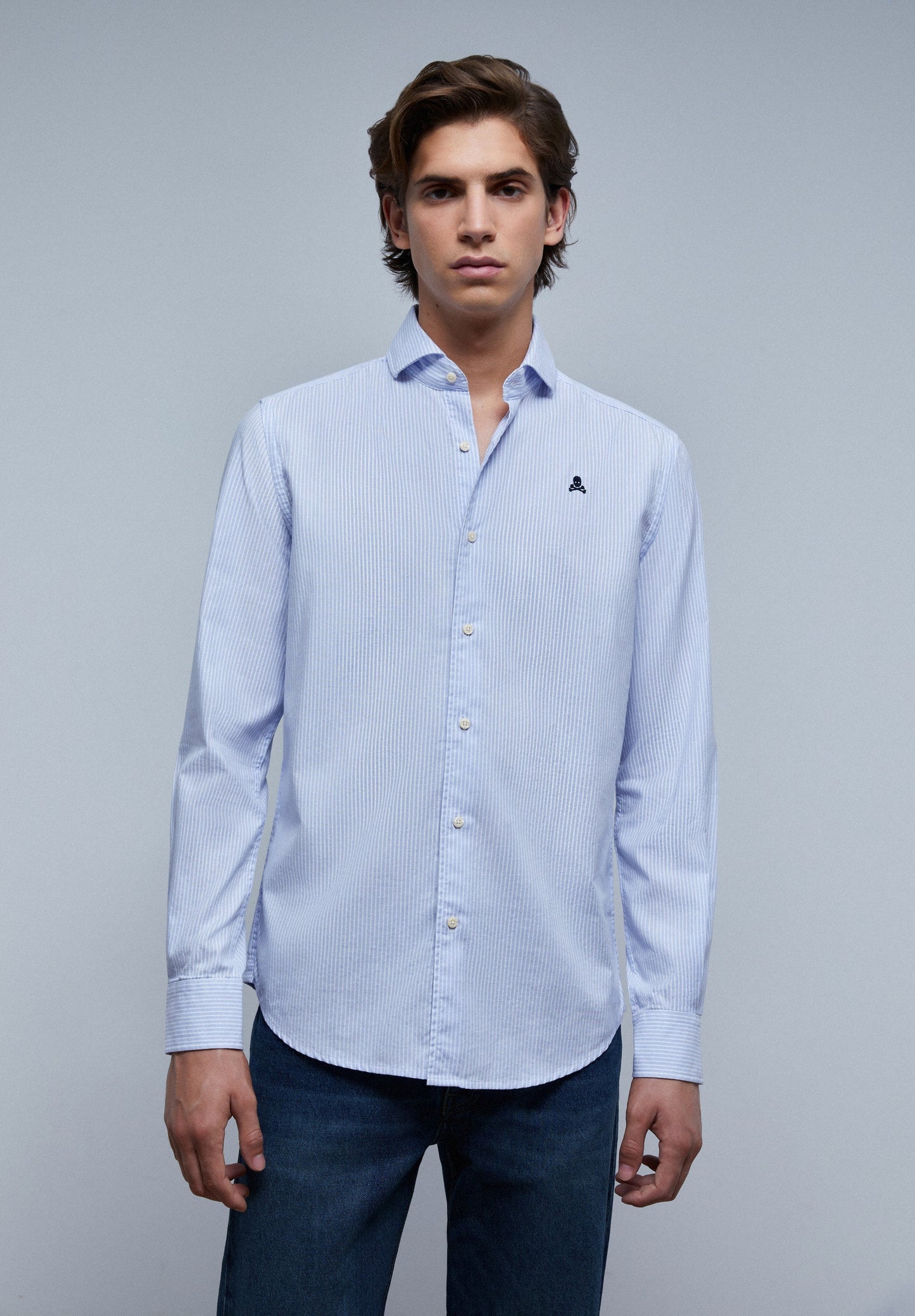 Camisa básica con calavera bordada a contraste