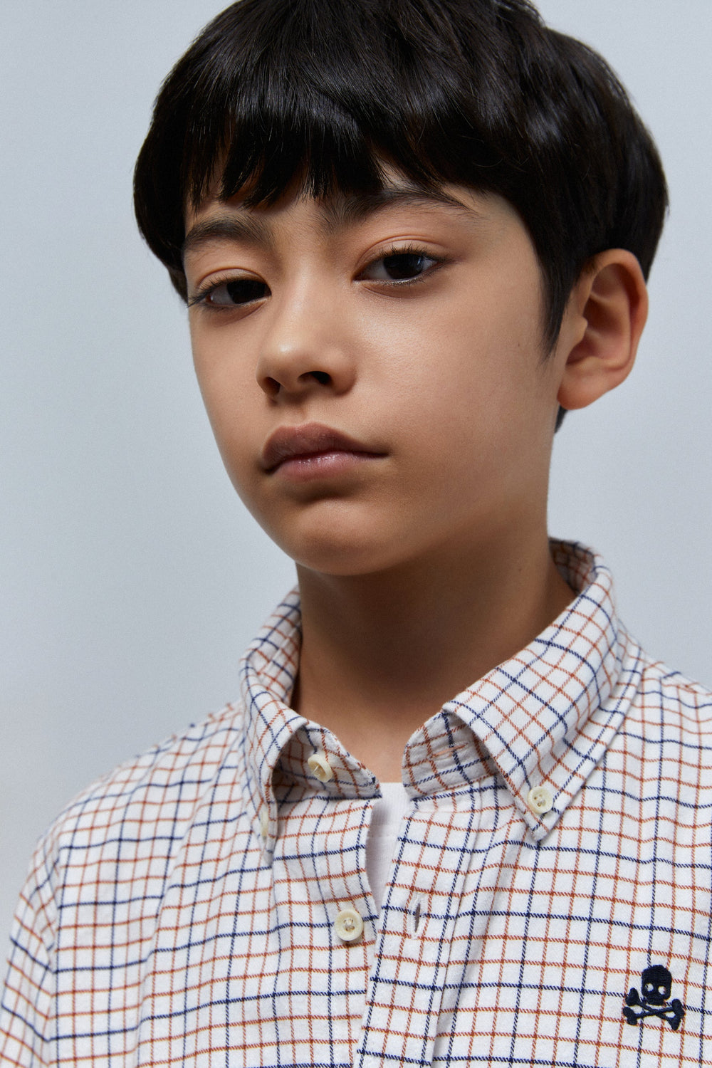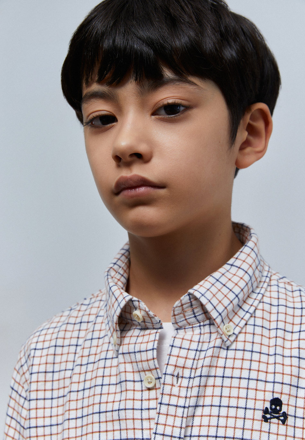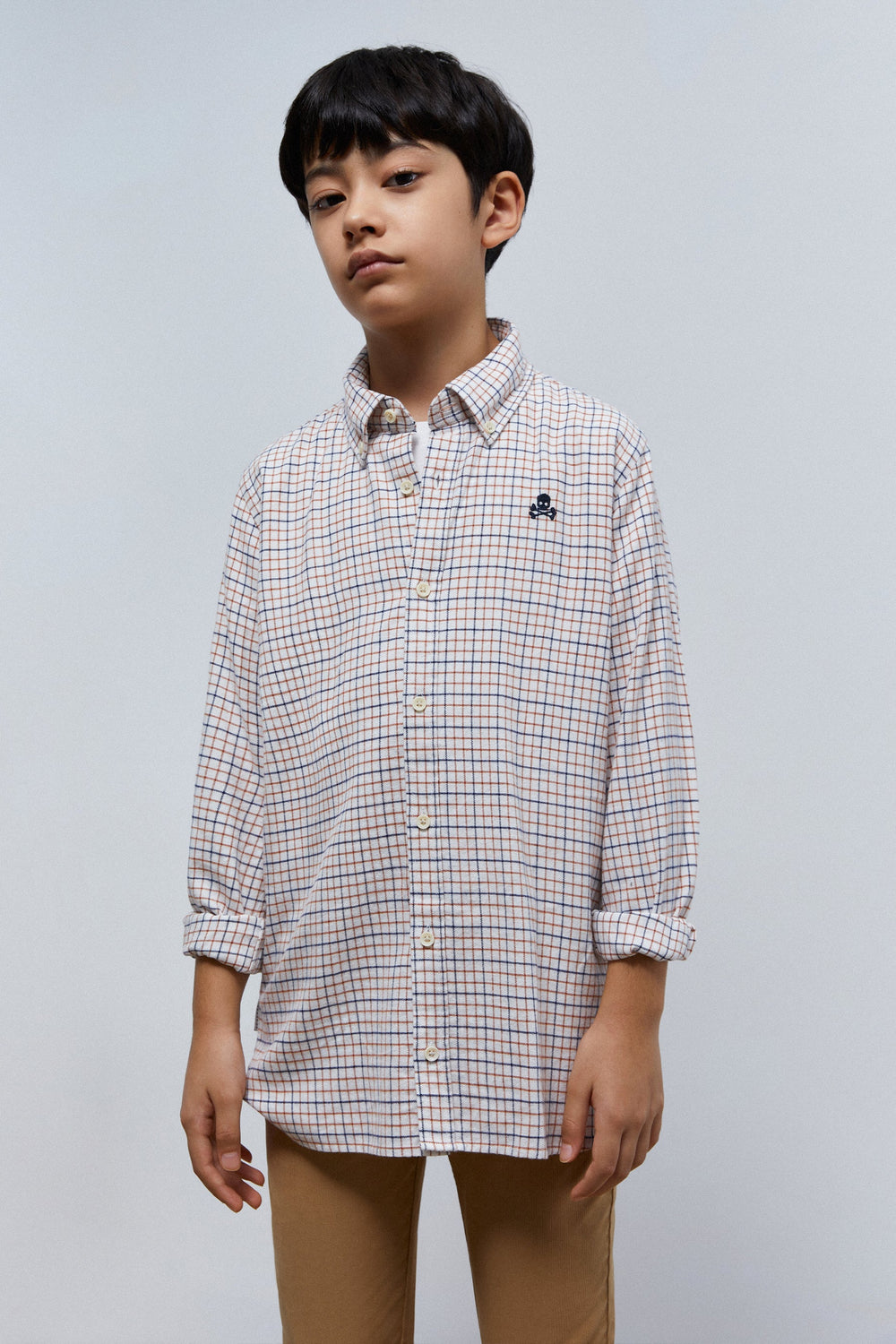 Camisa de cuadros con calavera bordada en pecho