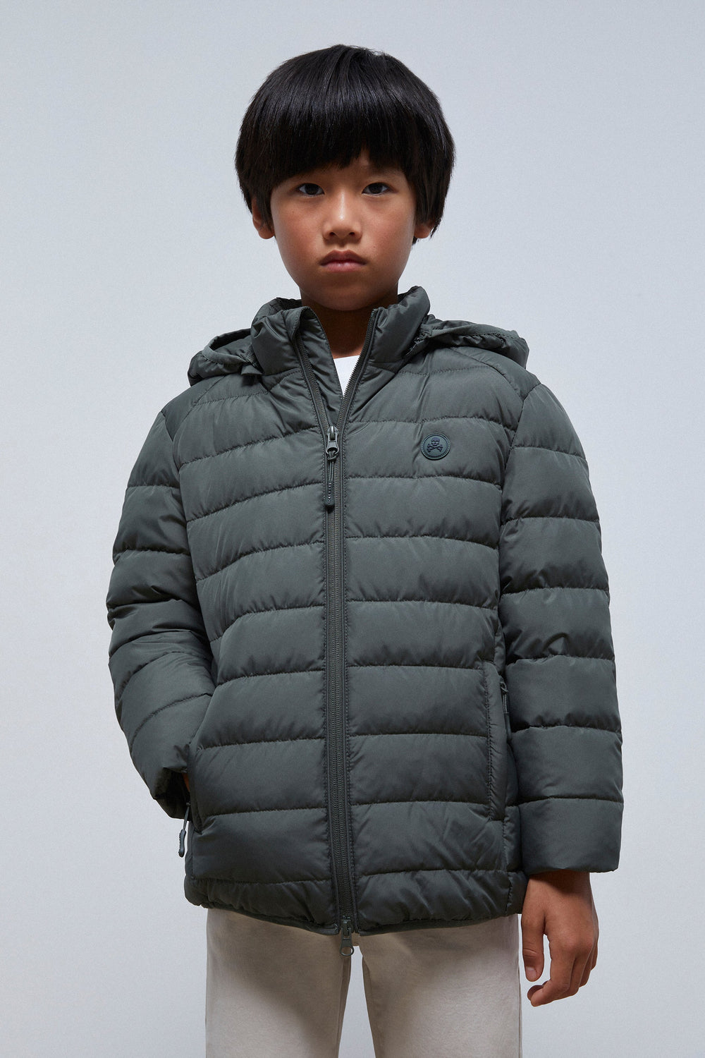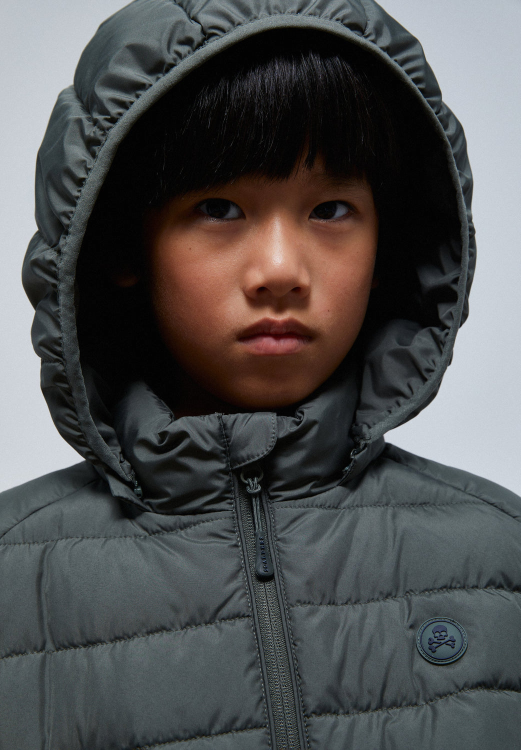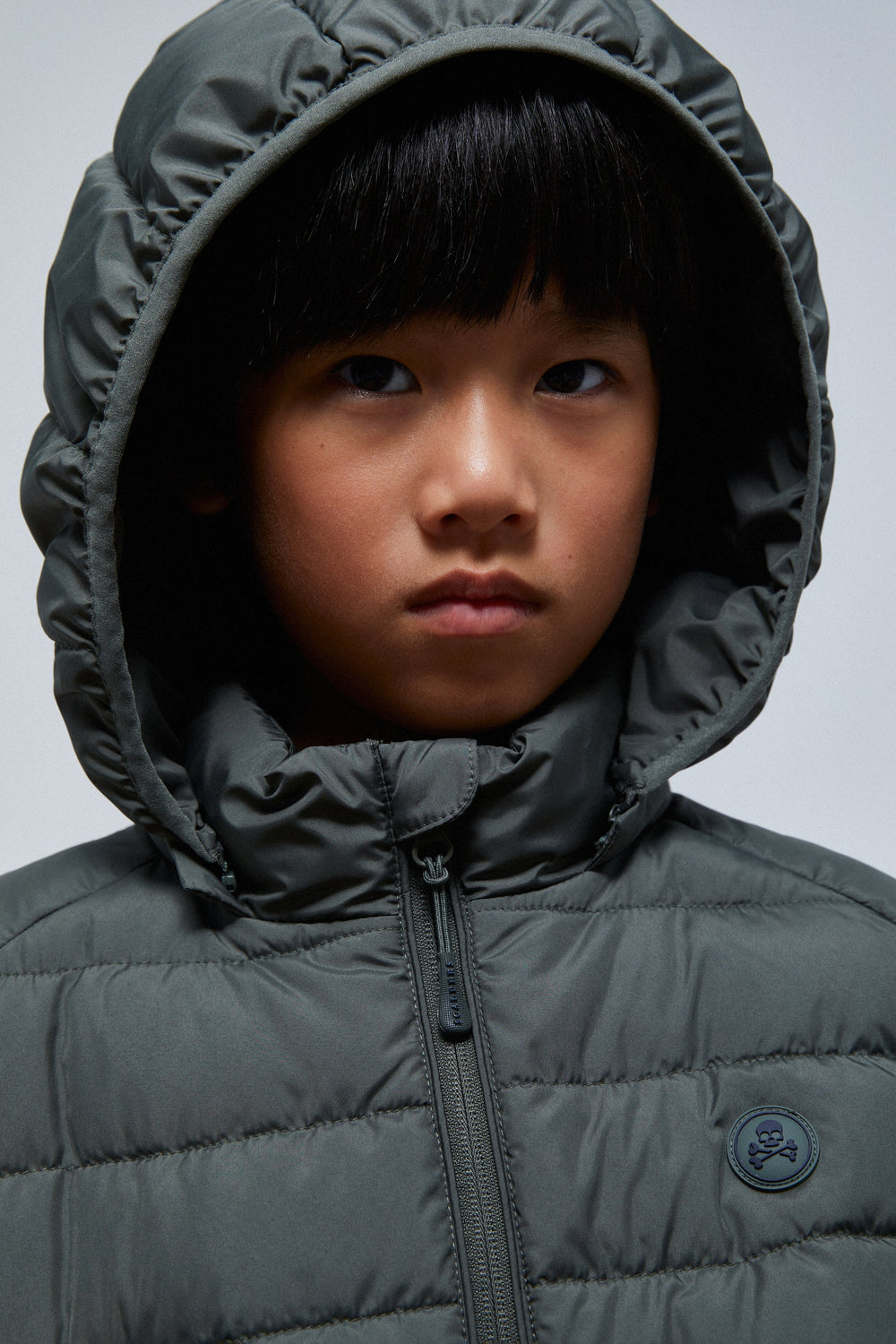 Chaqueta acolchada con capucha y detalle calavera engomada en pecho