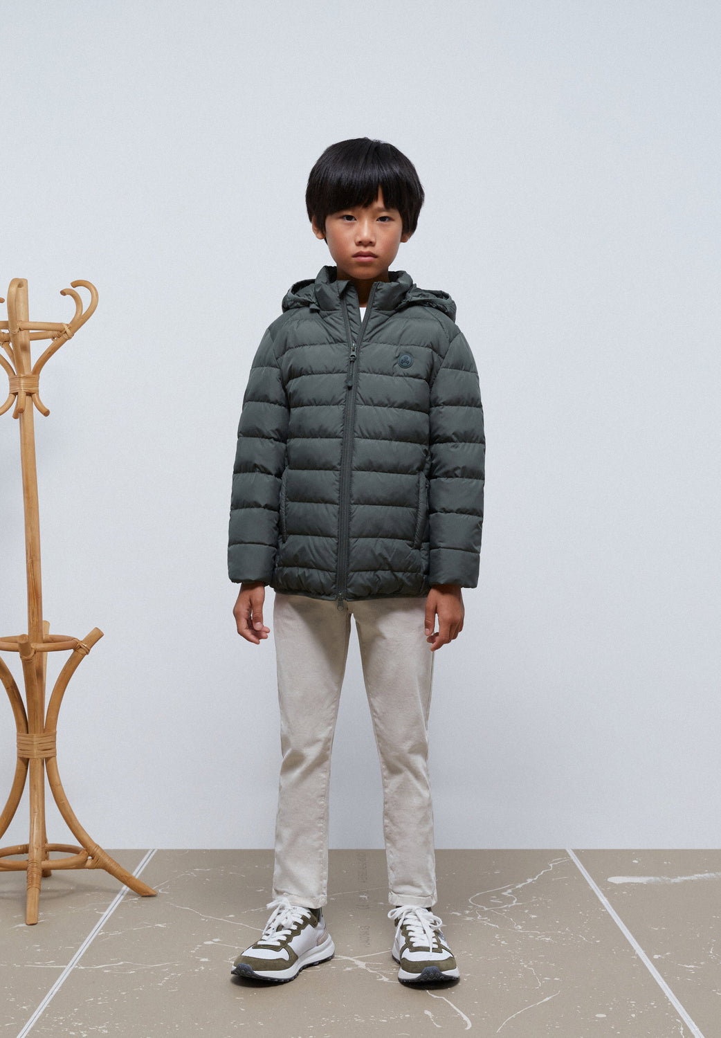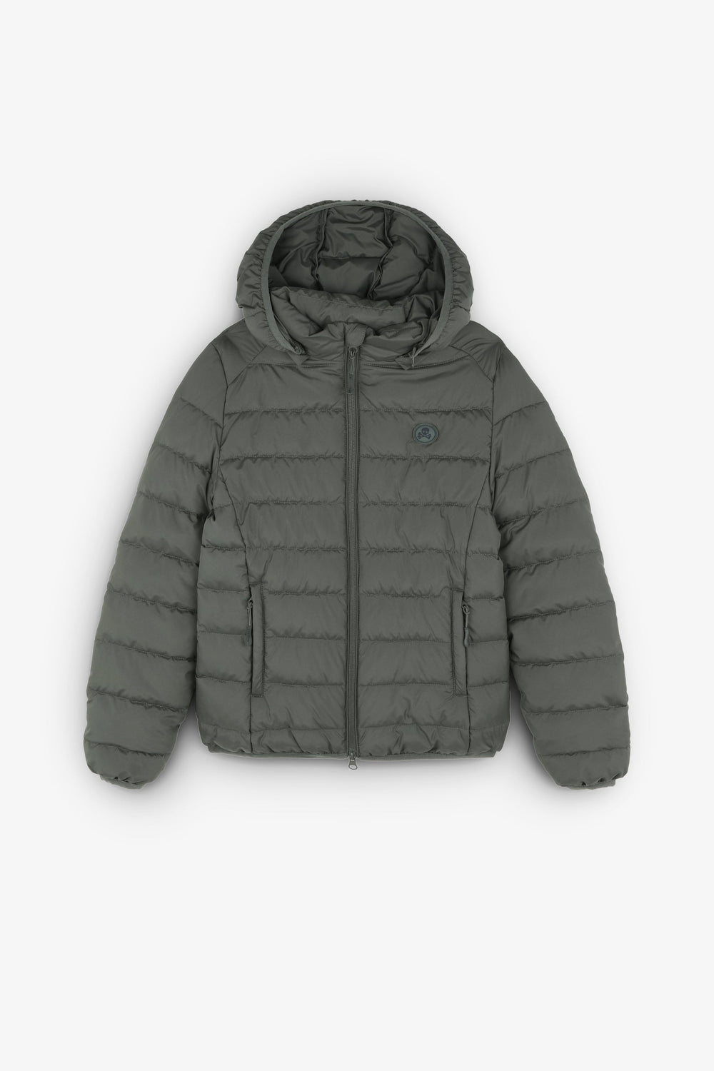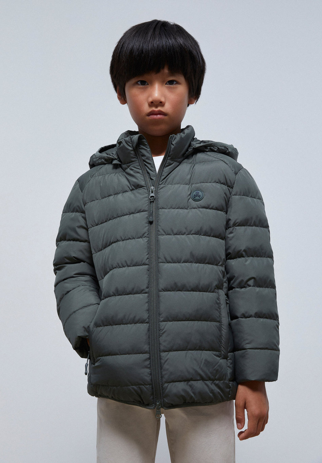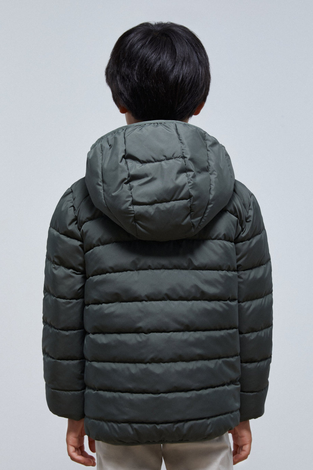 Chaqueta acolchada con capucha y detalle calavera engomada en pecho