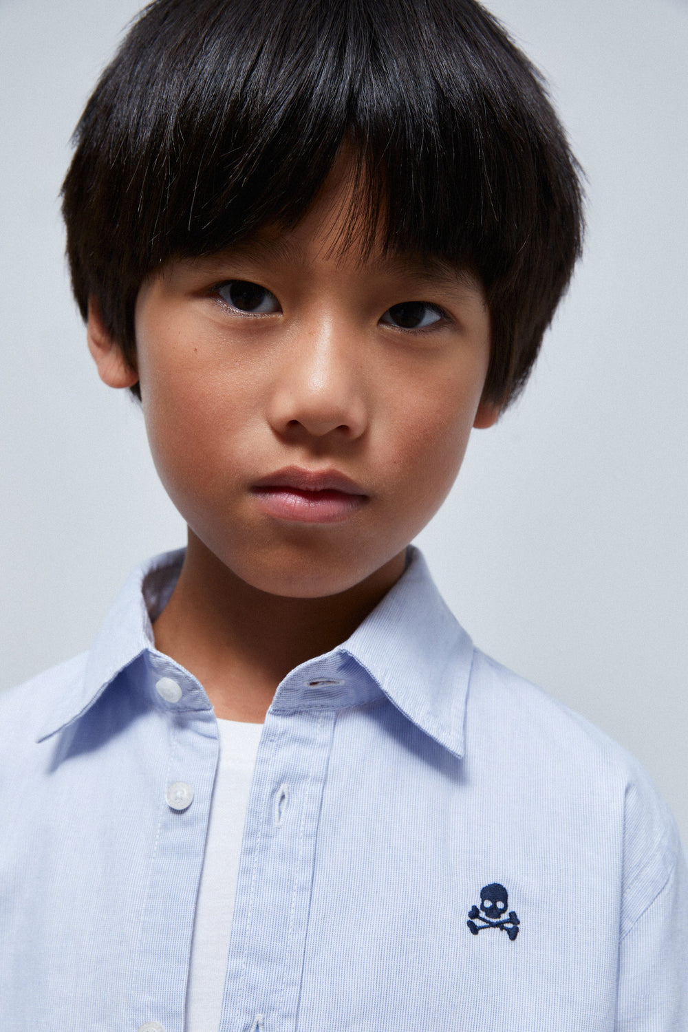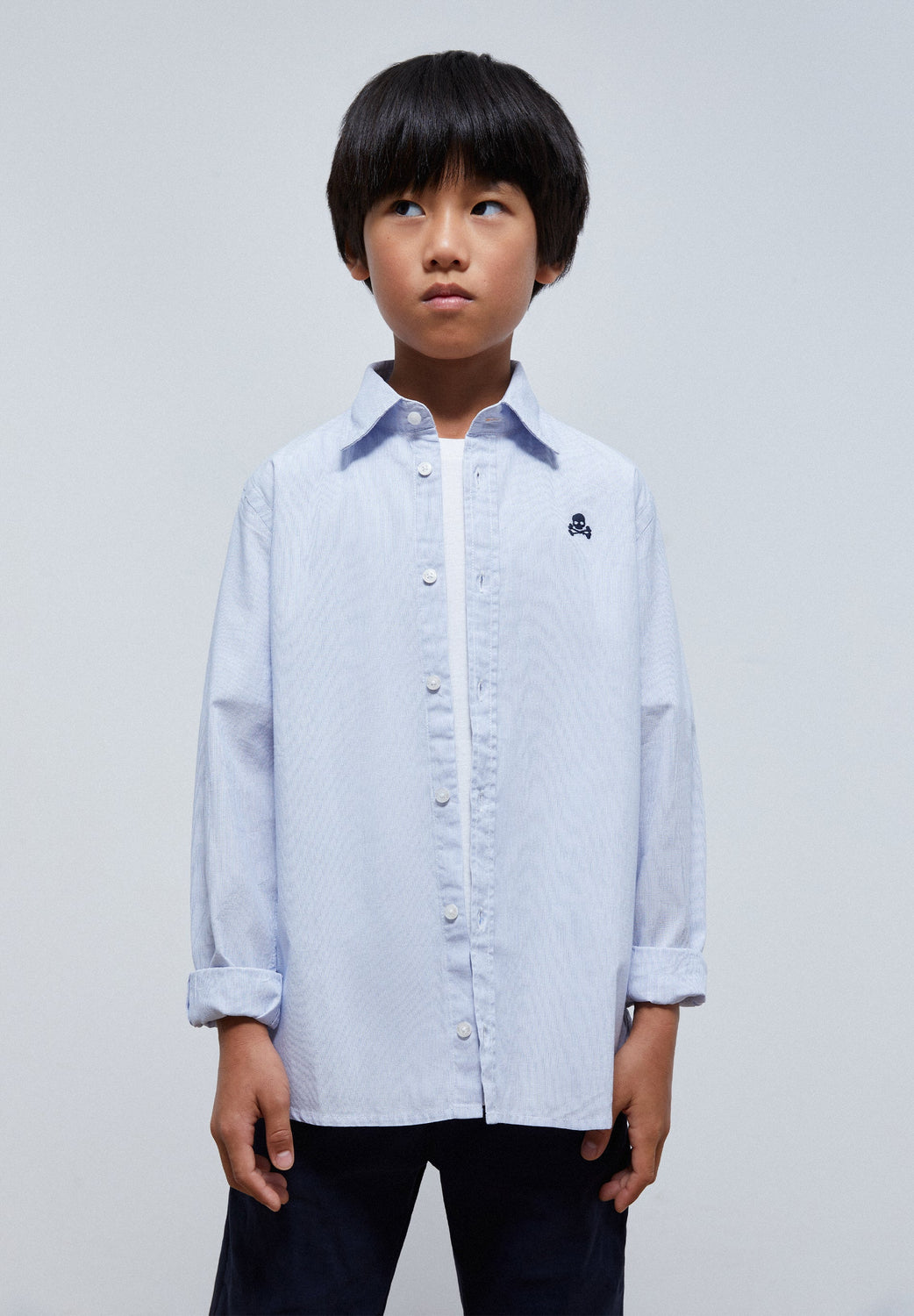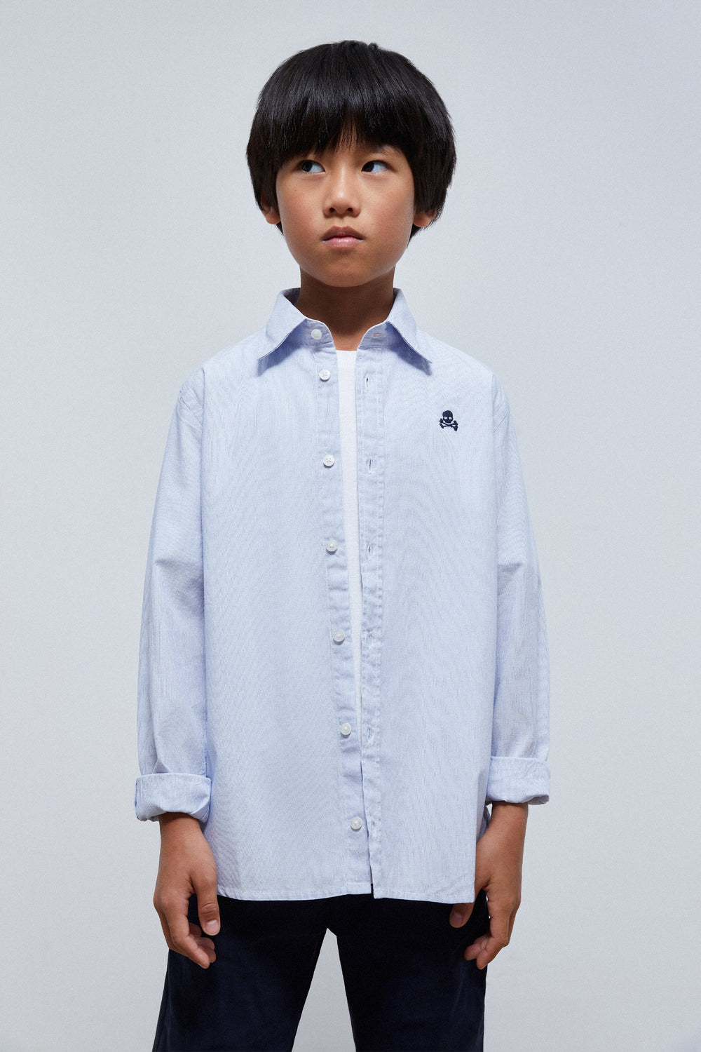 Camisa básica con calavera bordada a contraste