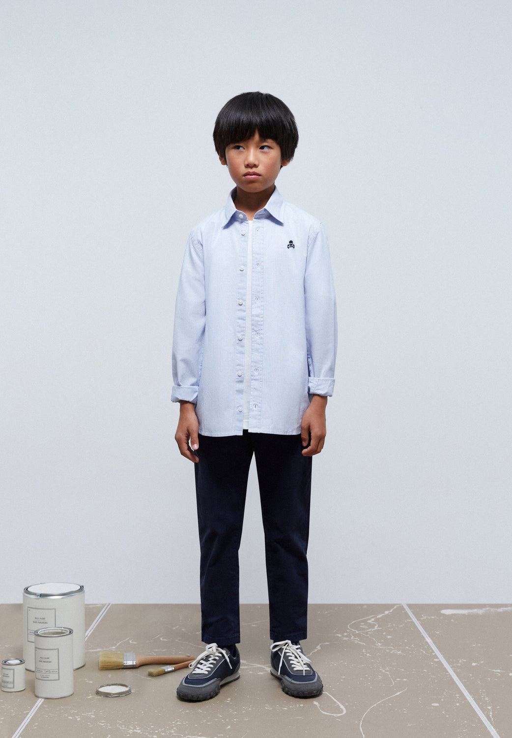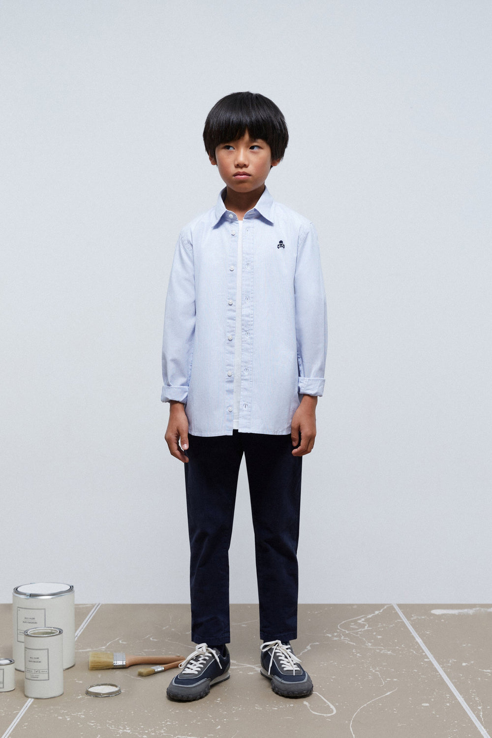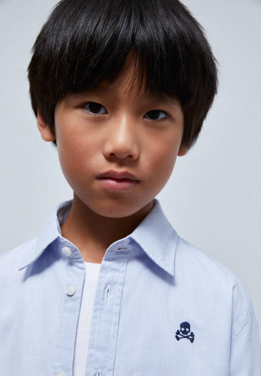 Camisa básica con calavera bordada a contraste