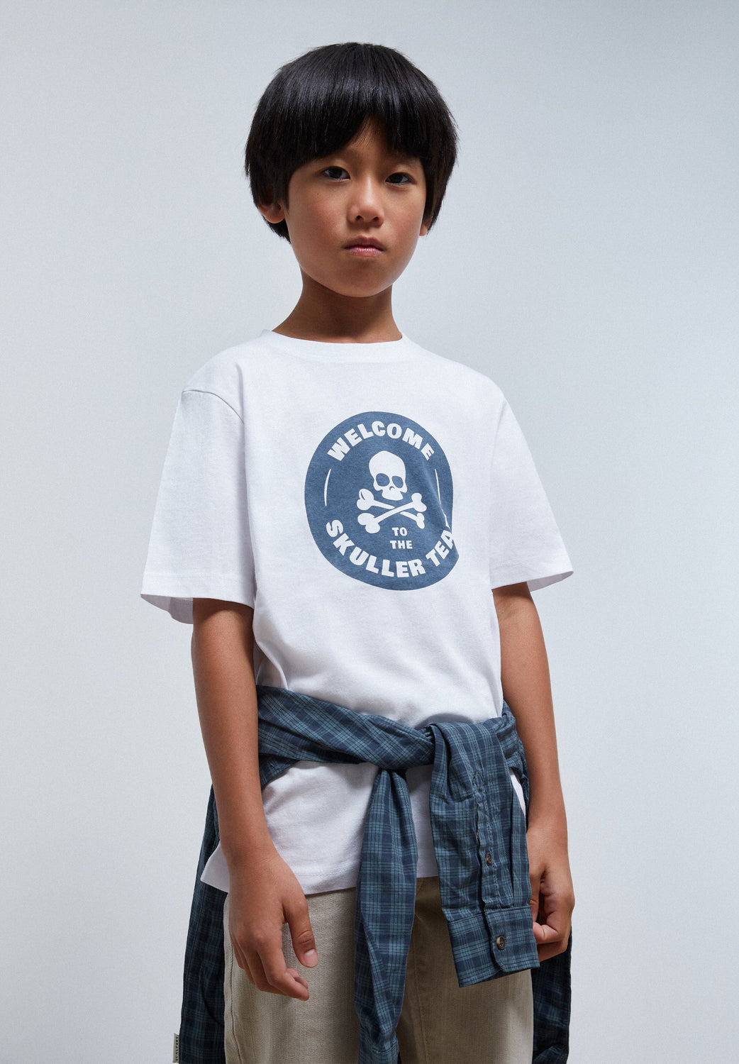 Camiseta efecto lavado con print circular en parte frontal