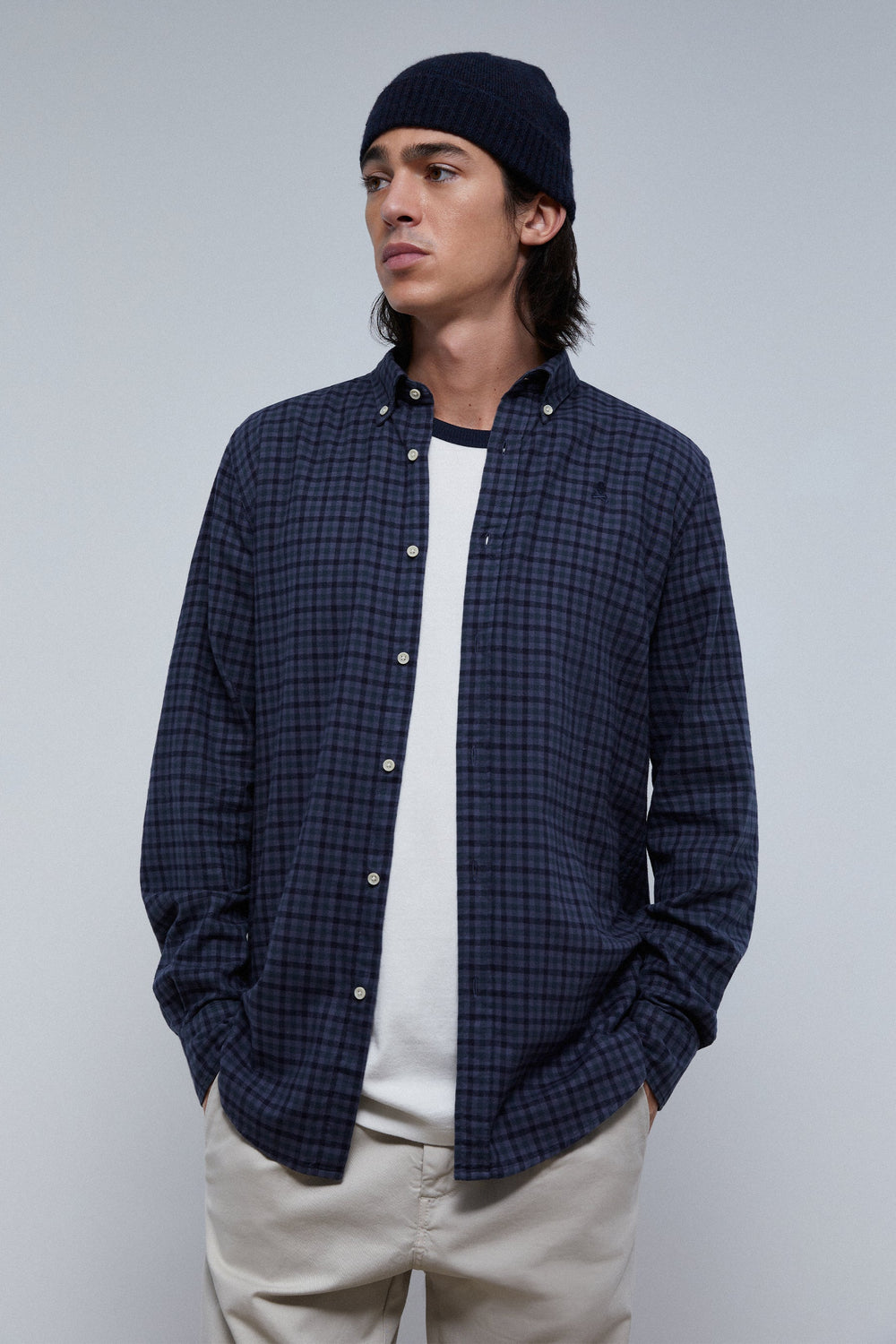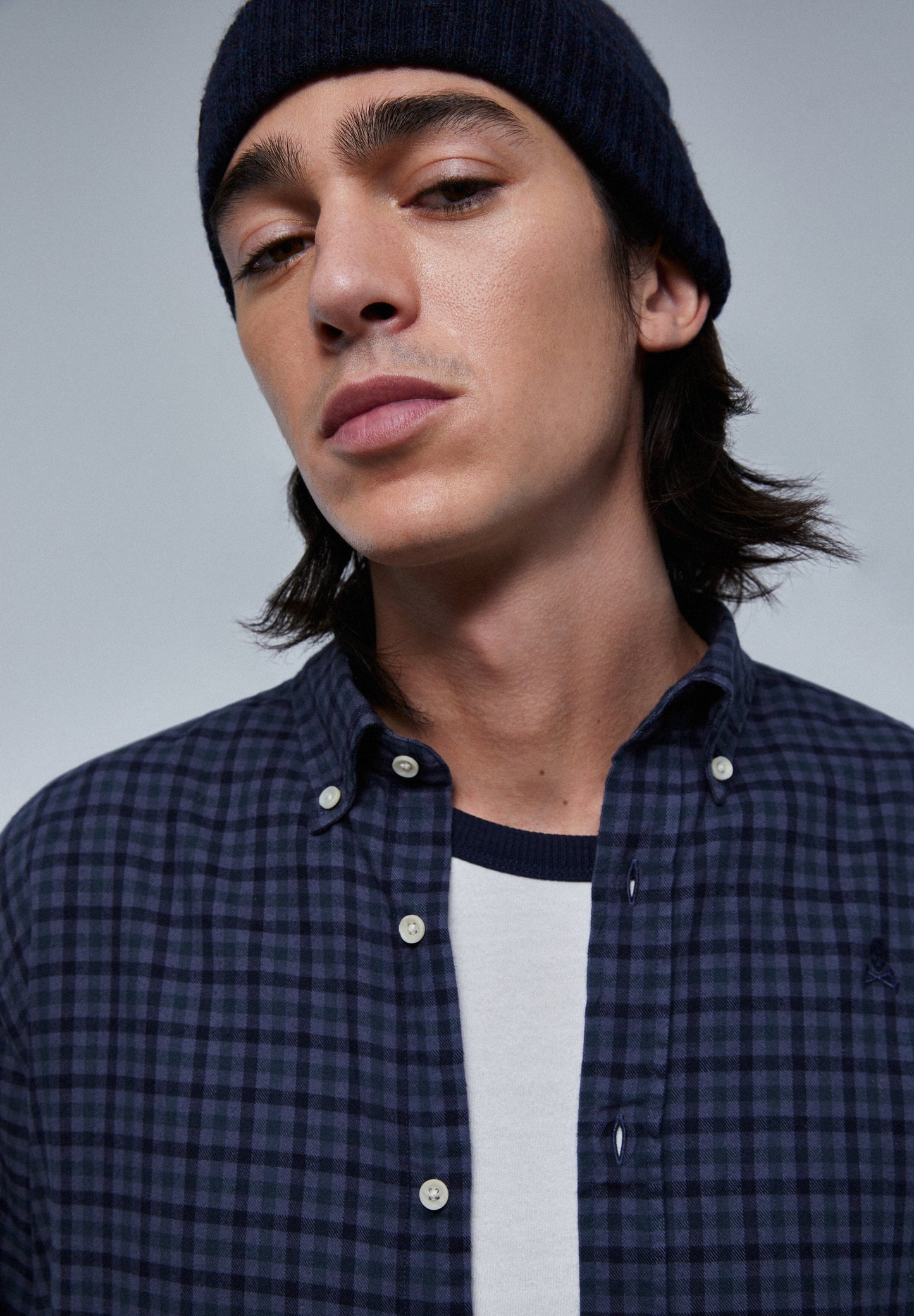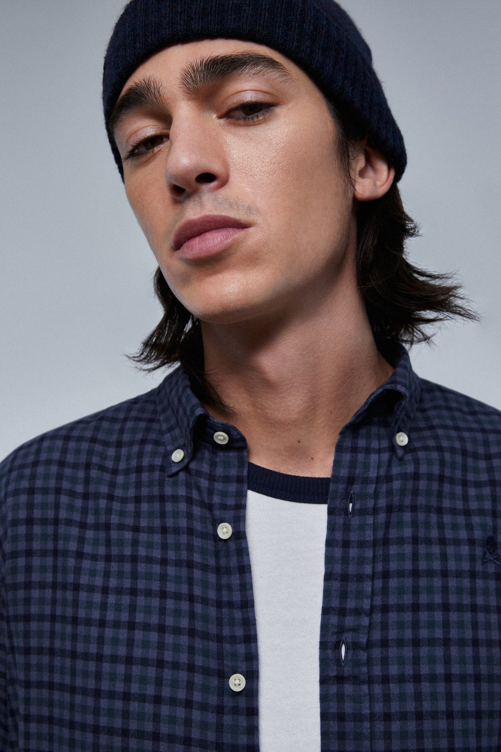 Camisa de cuadros con calavera bordada a tono en el pecho.