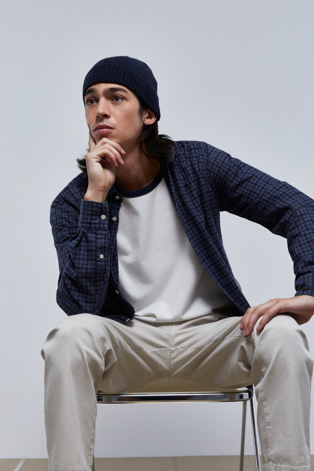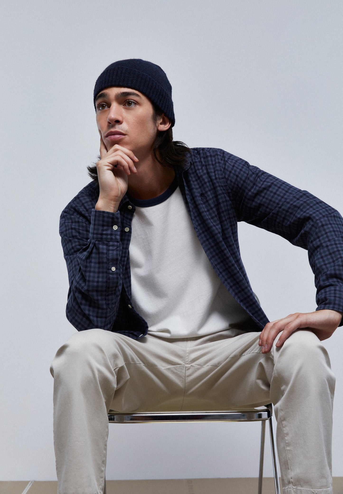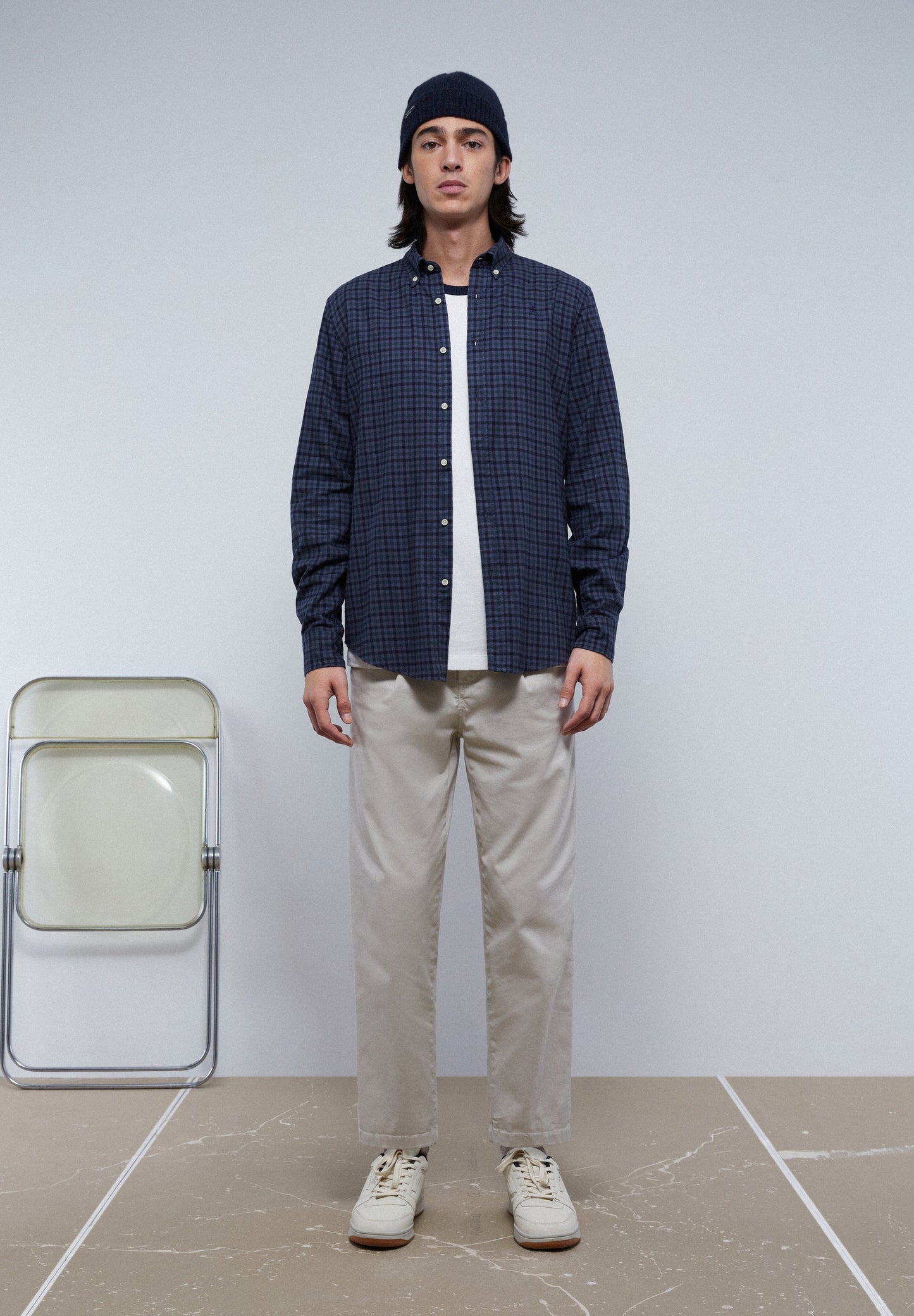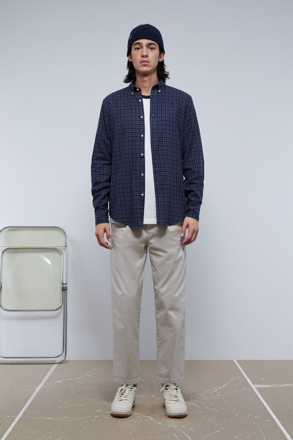 Camisa de cuadros con calavera bordada a tono en el pecho.