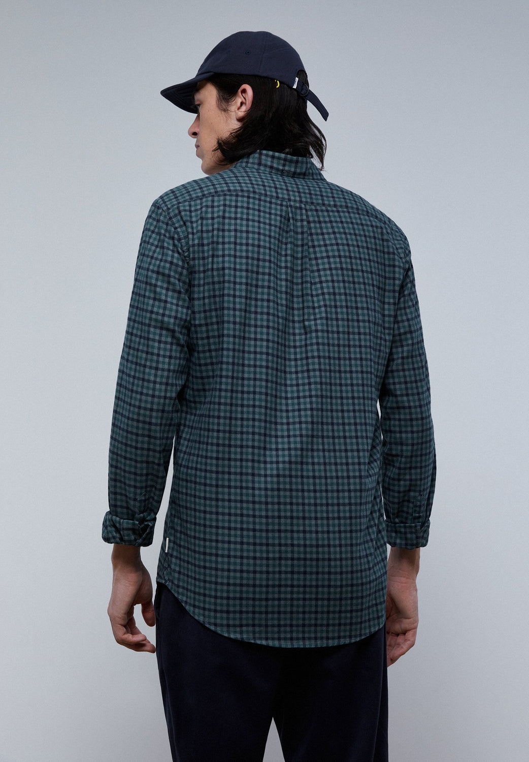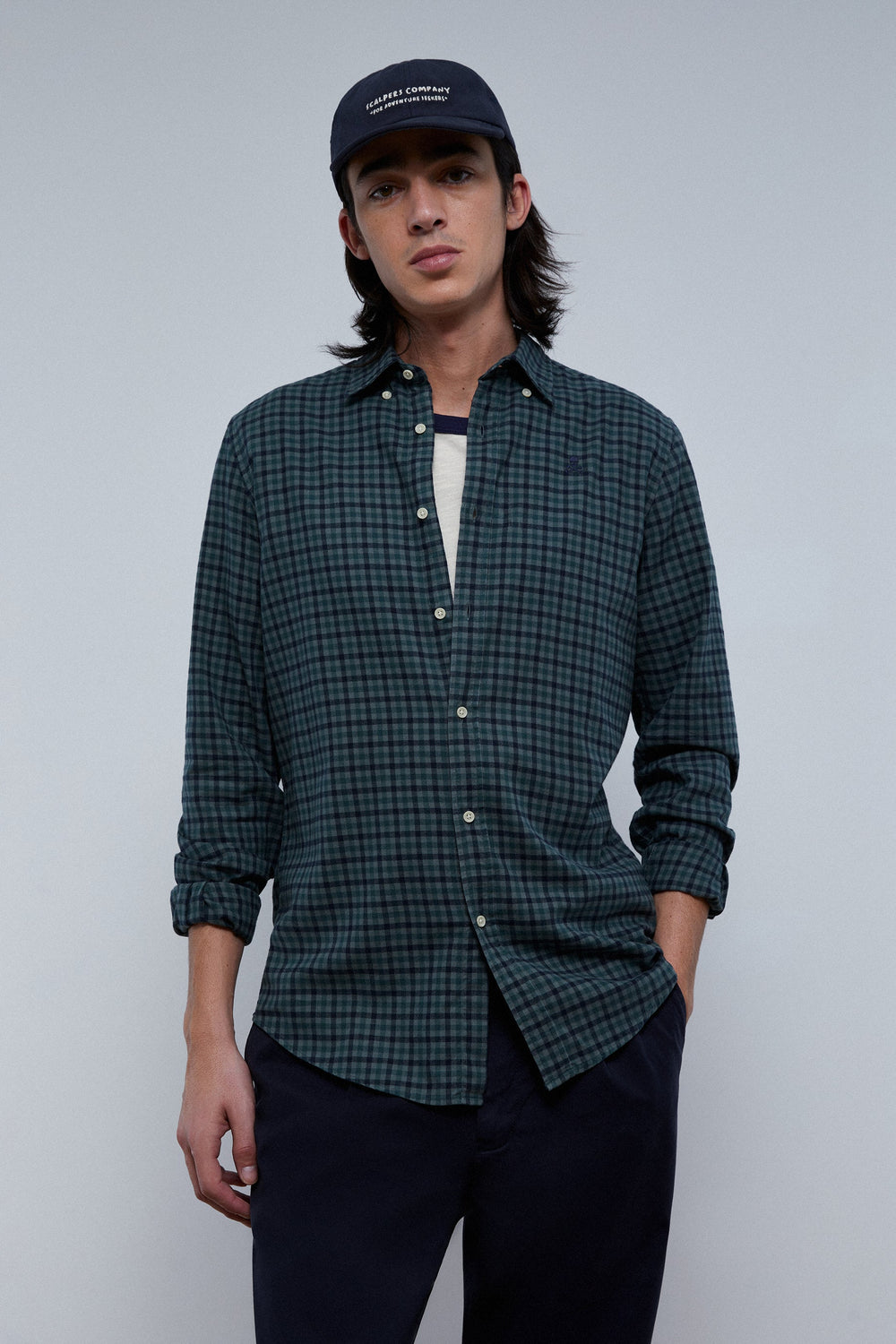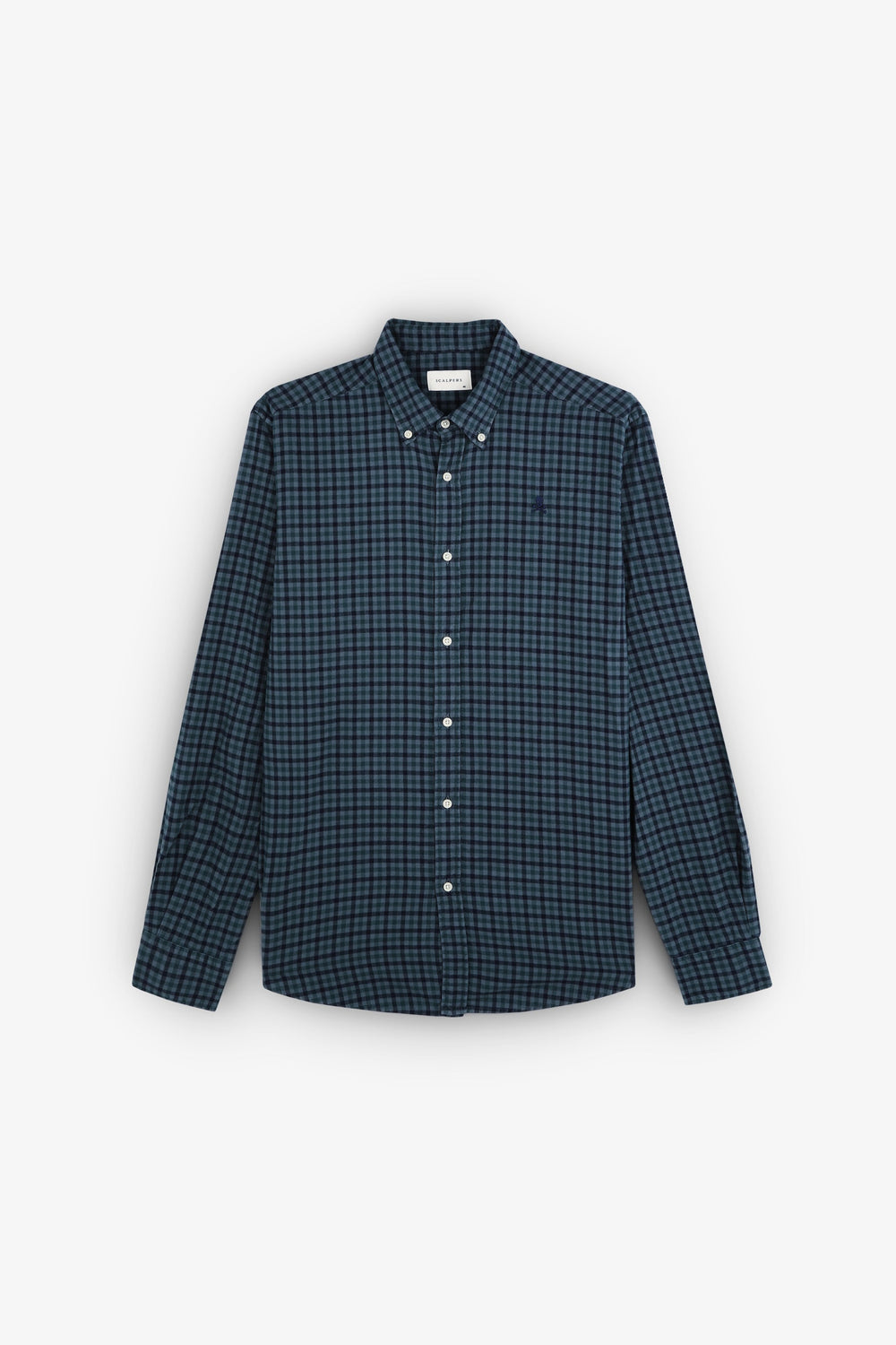 Camisa de cuadros con calavera bordada a tono en el pecho.