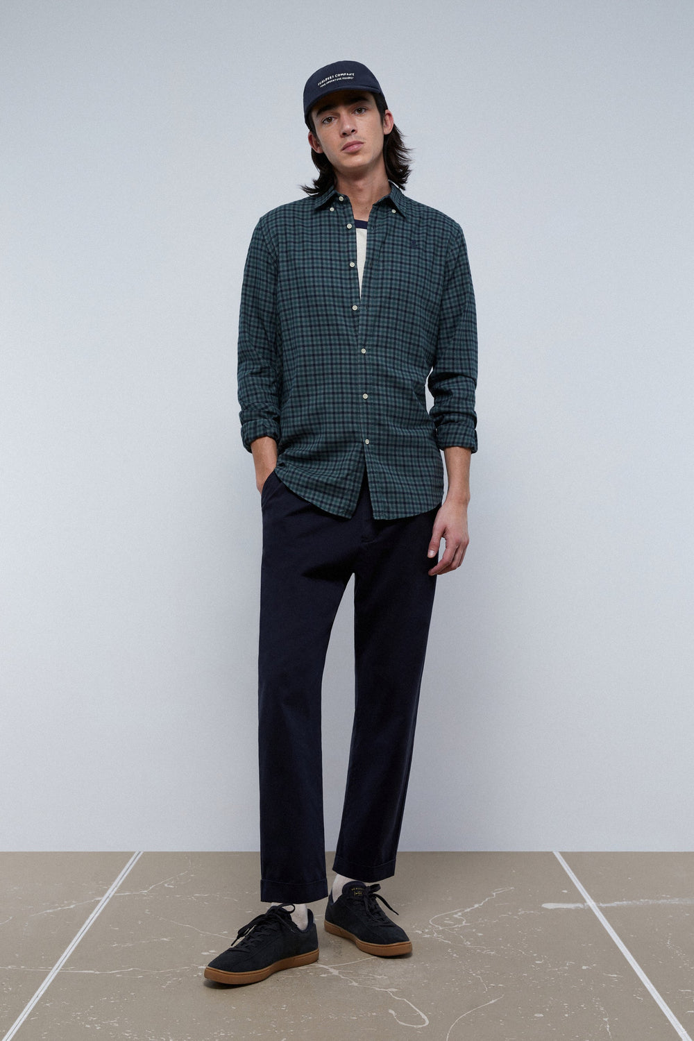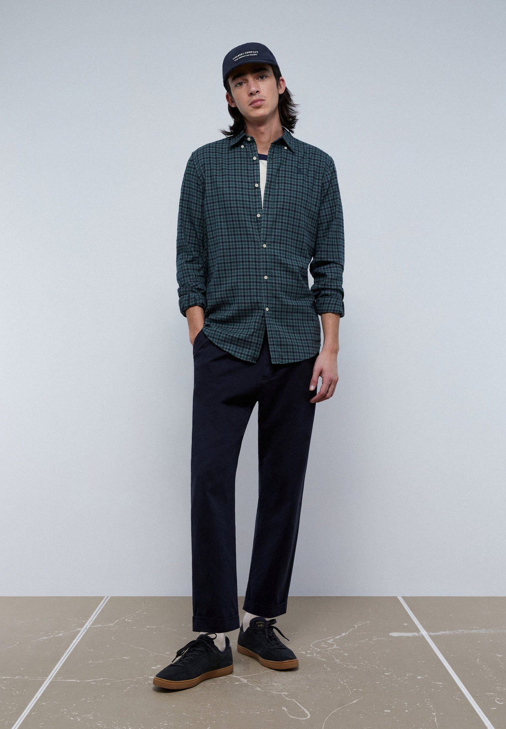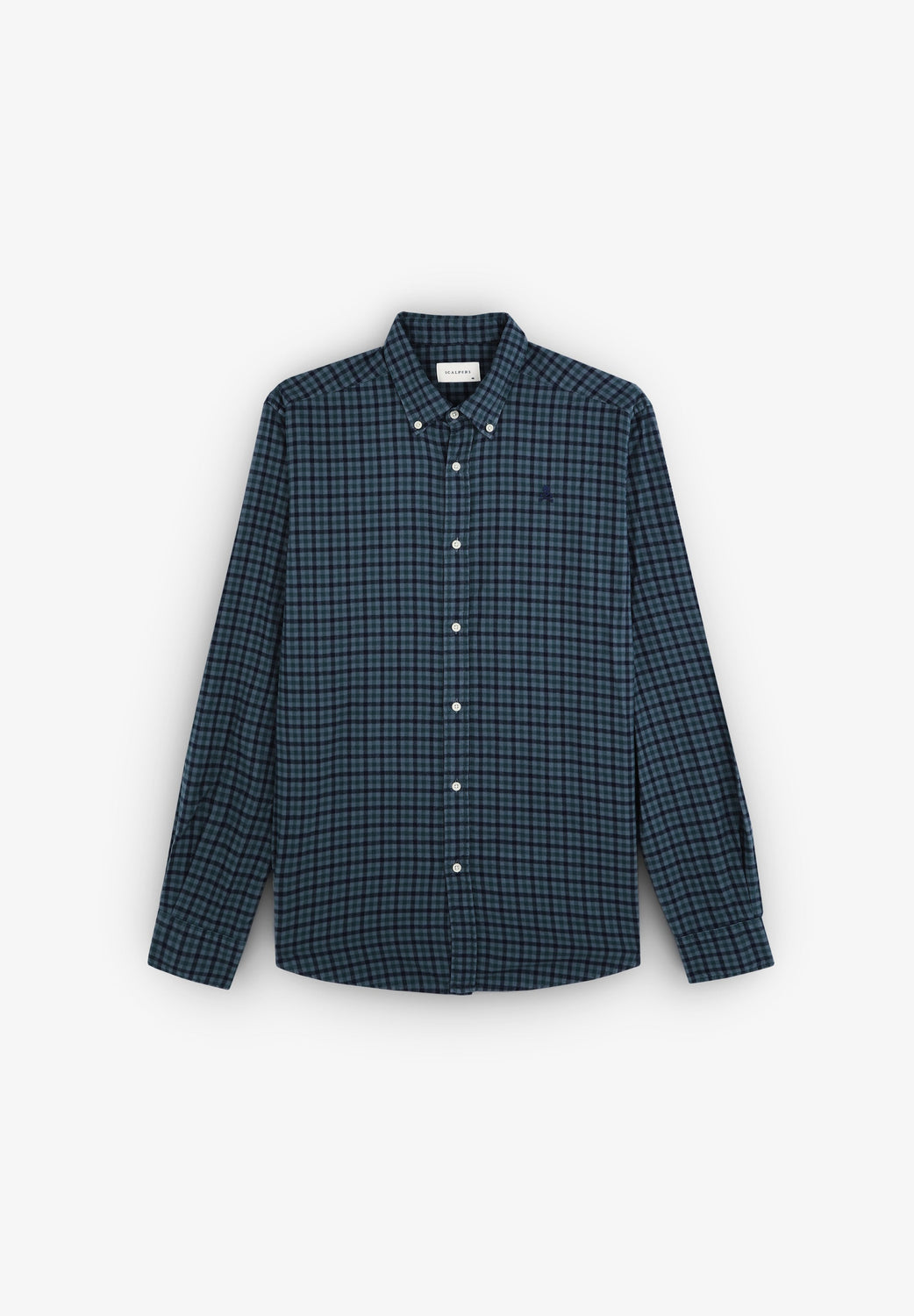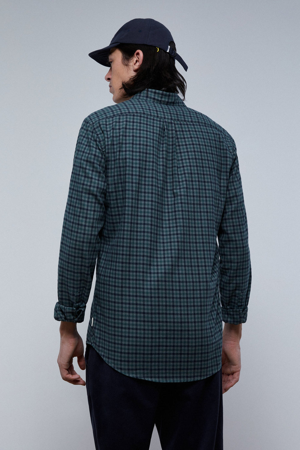 Camisa de cuadros con calavera bordada a tono en el pecho.