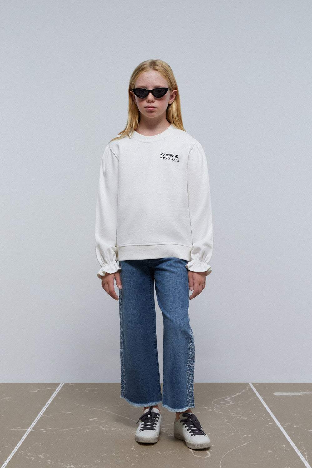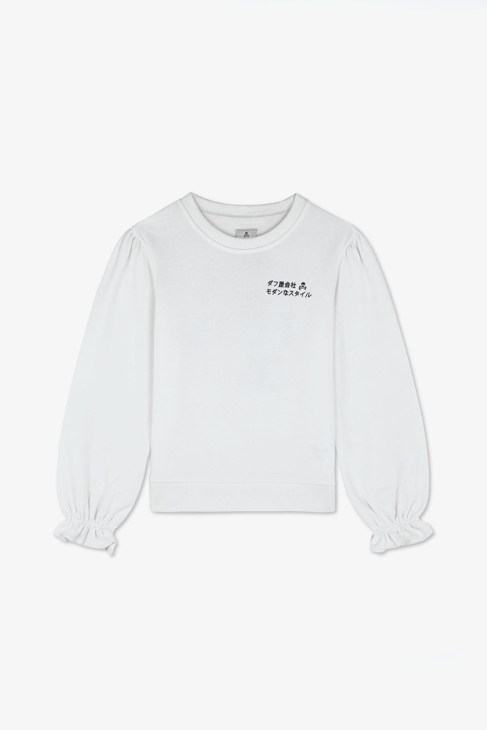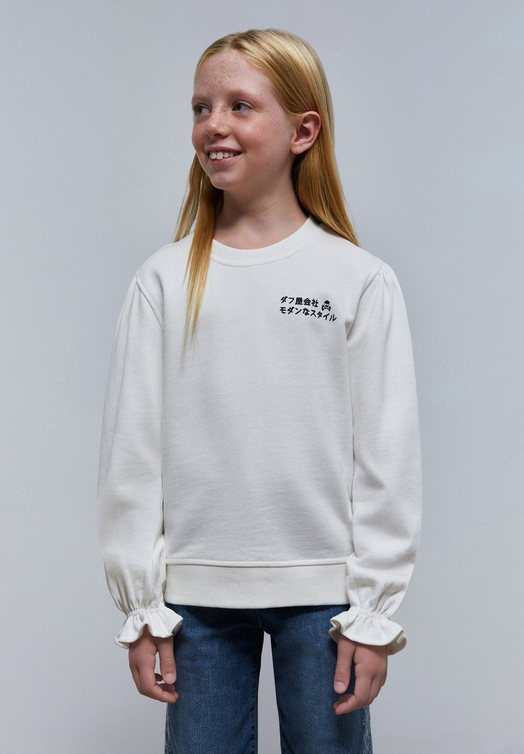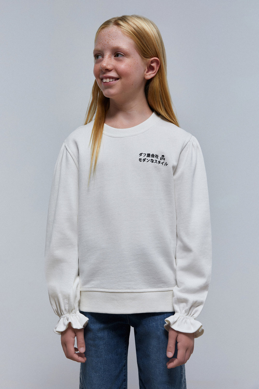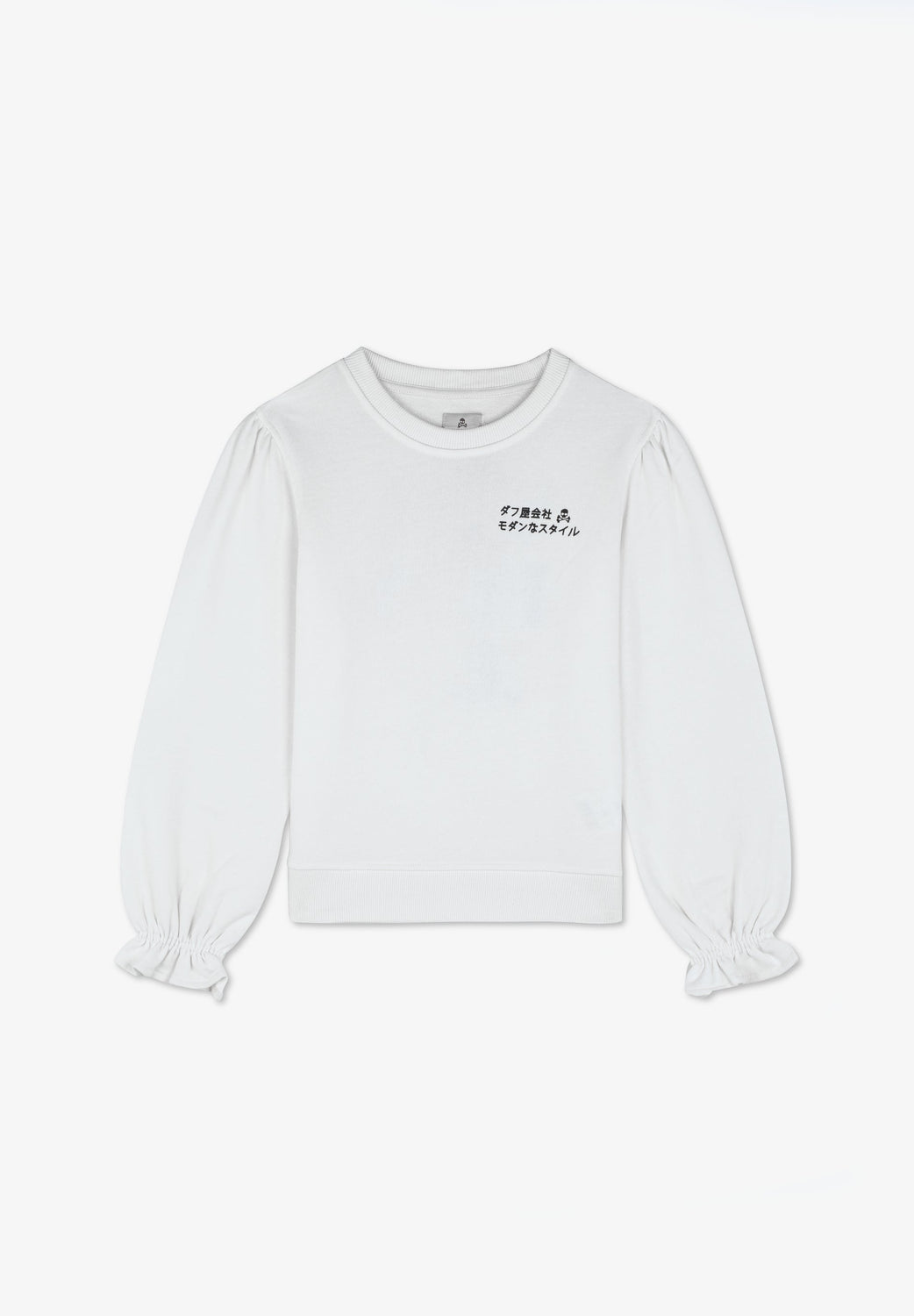 - Mangas largas ligeramente abullonadas acaba en puño con elástico