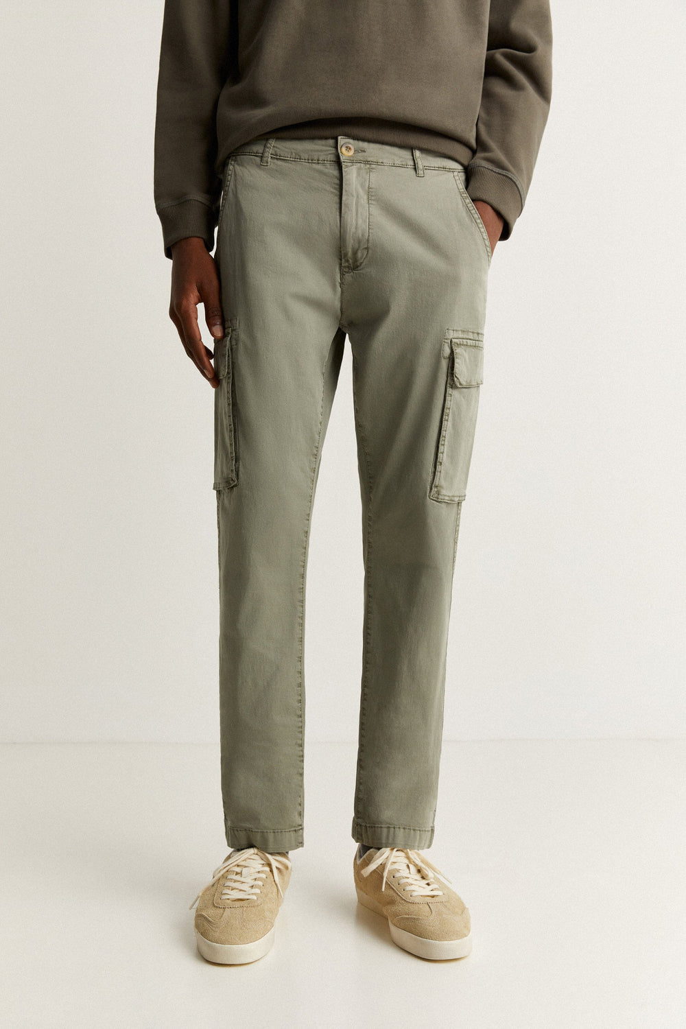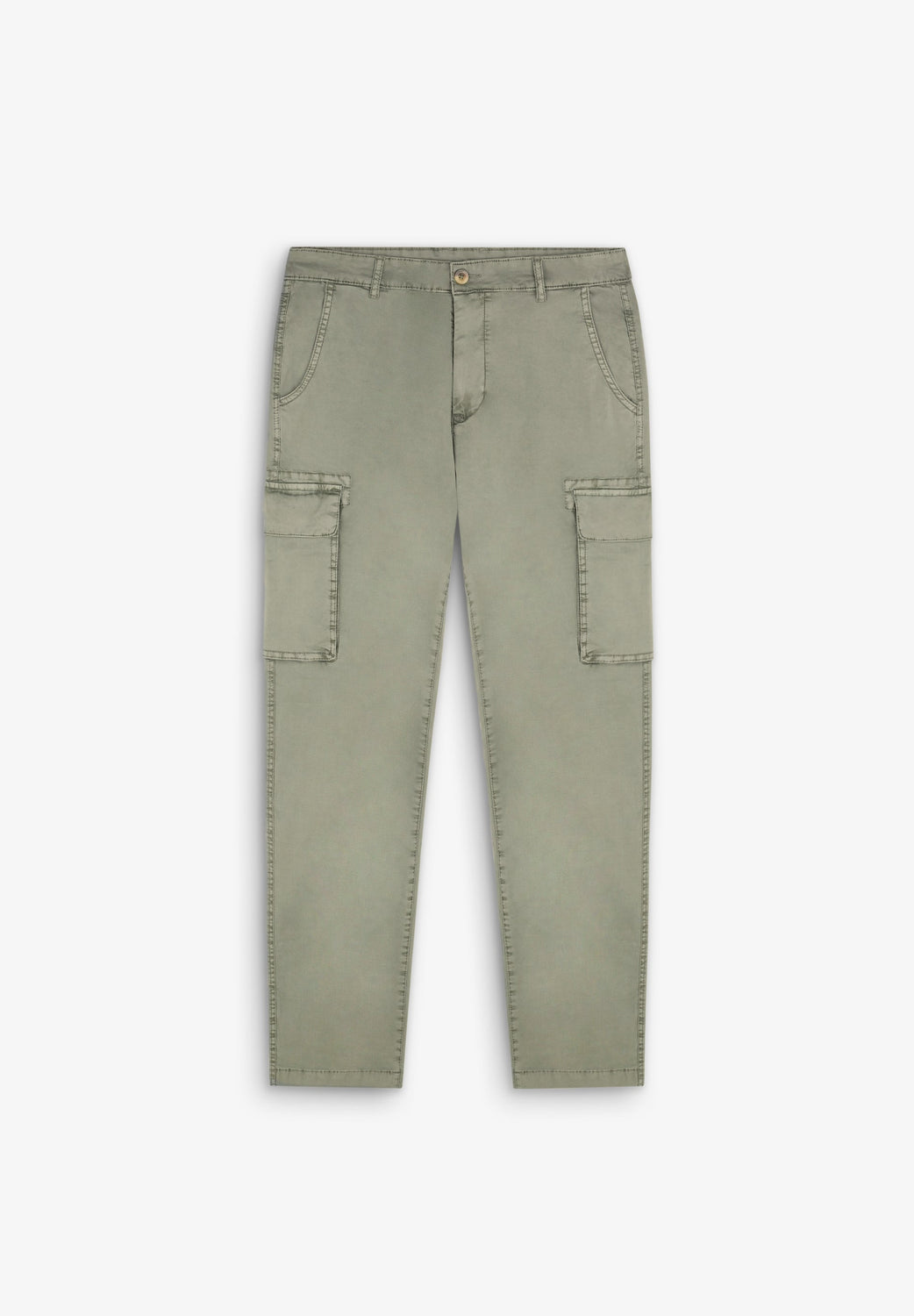 - Bolsillos laterales en pernera tipo fuelle con solapa