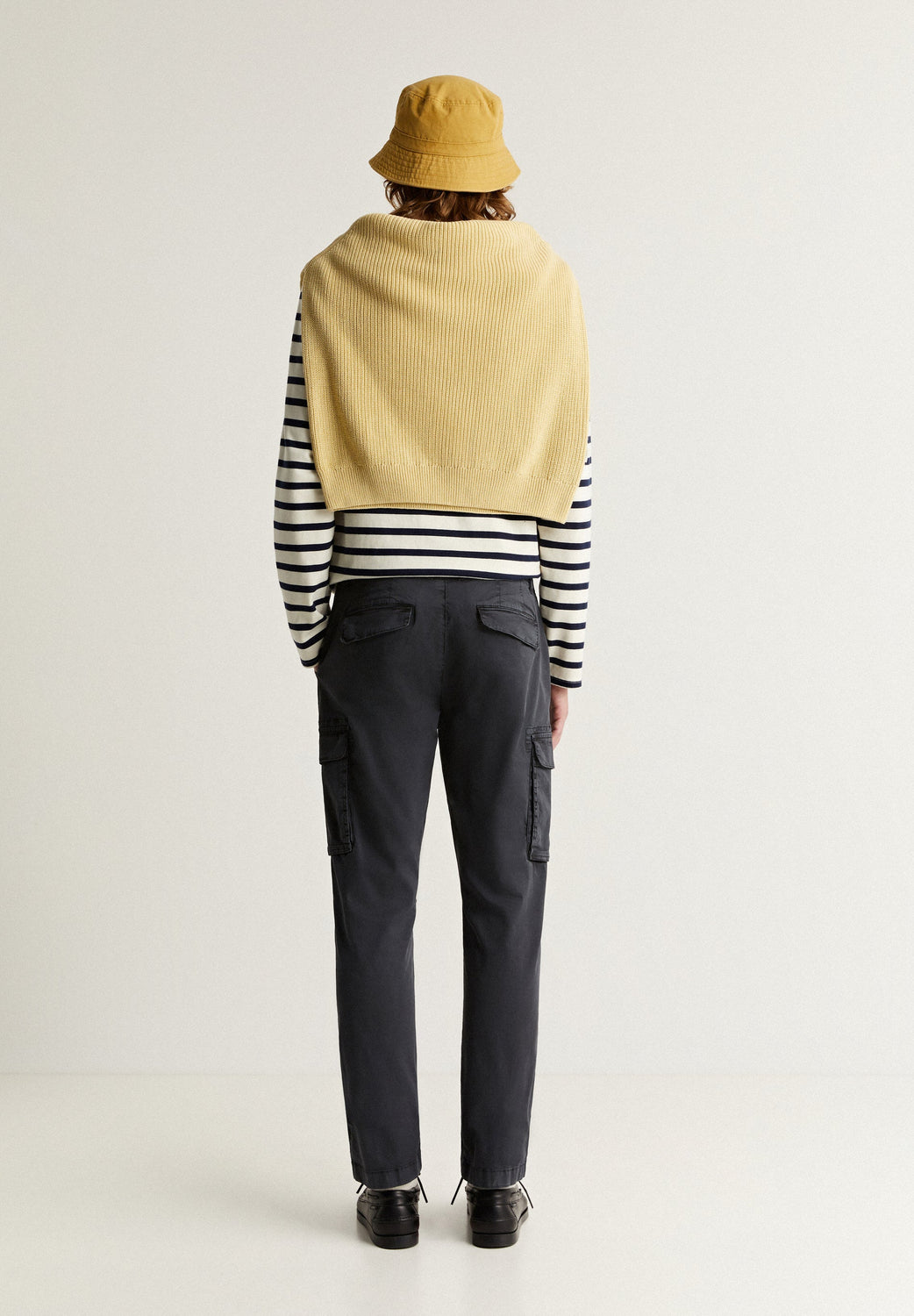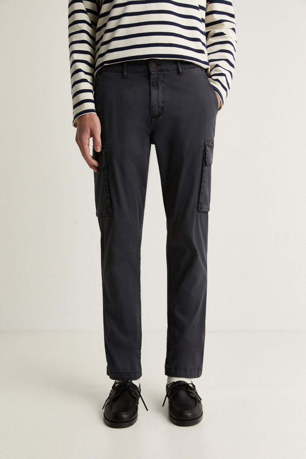 - Bolsillos laterales en pernera tipo fuelle con solapa