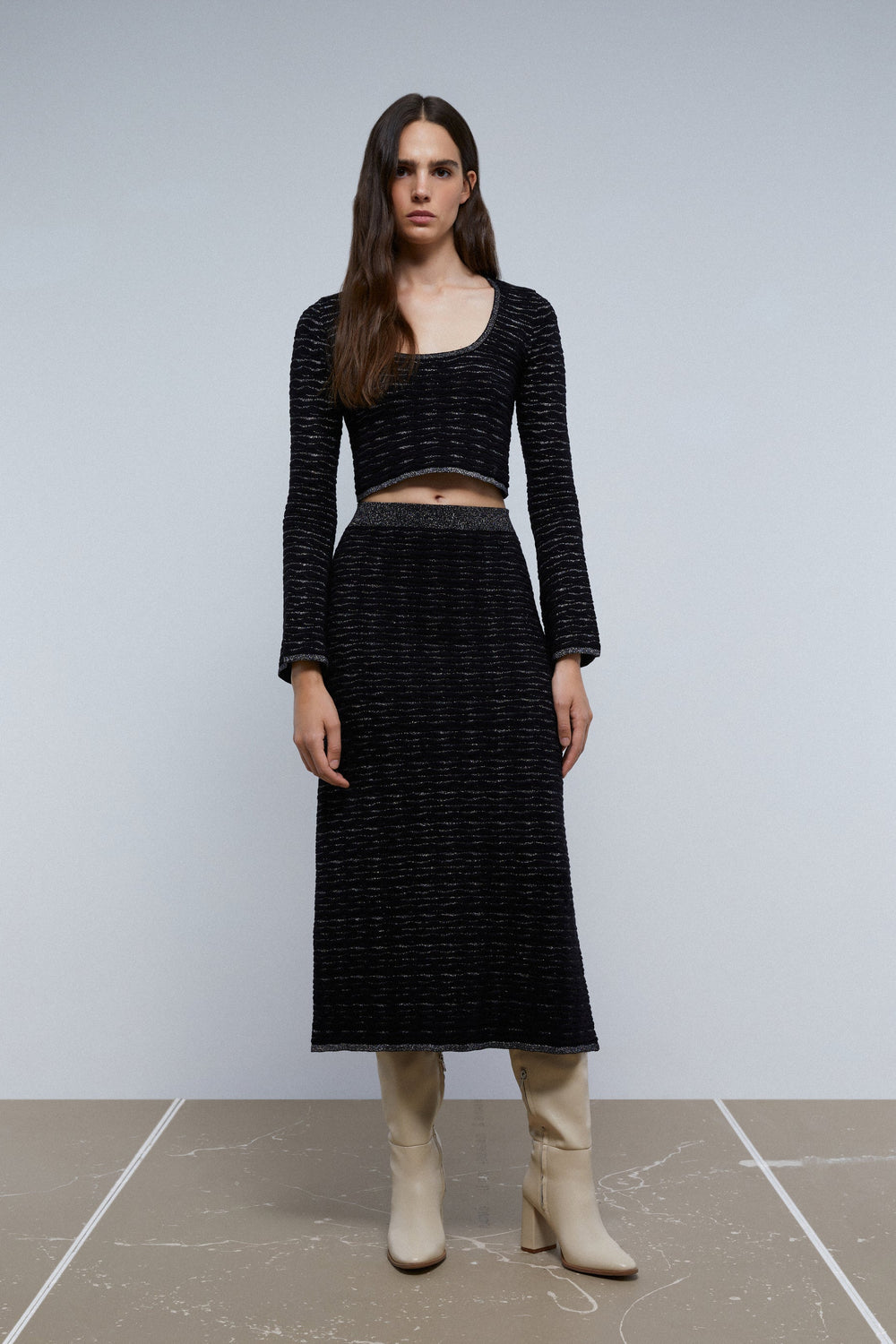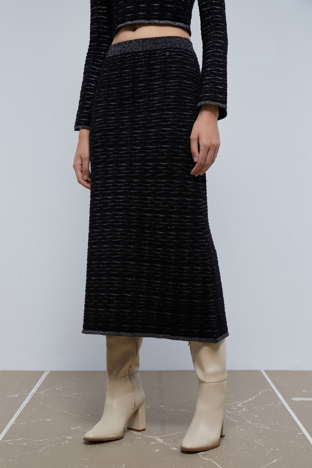 FALDA MIDI PUNTO LUREX