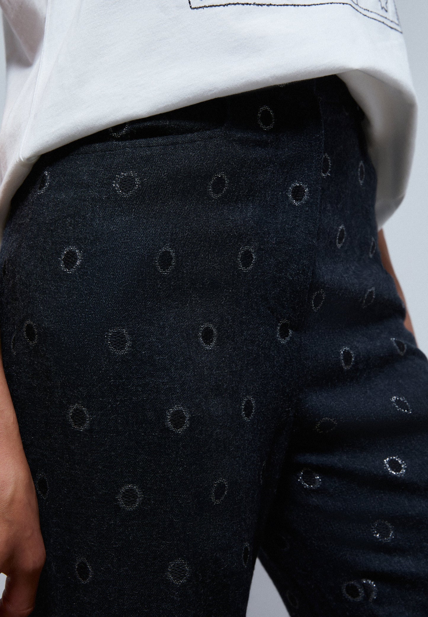Pantalón con círculos con detalles en hilo metálico
