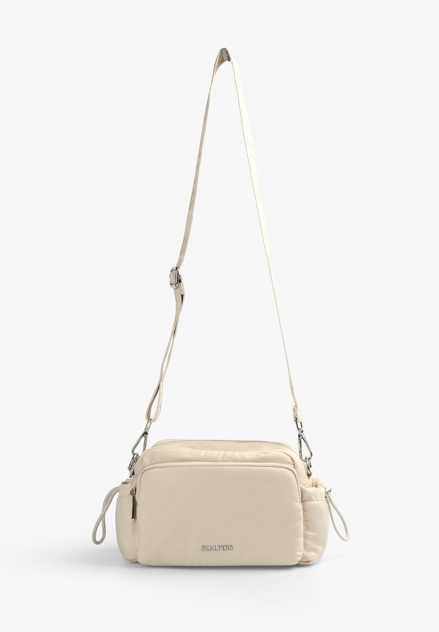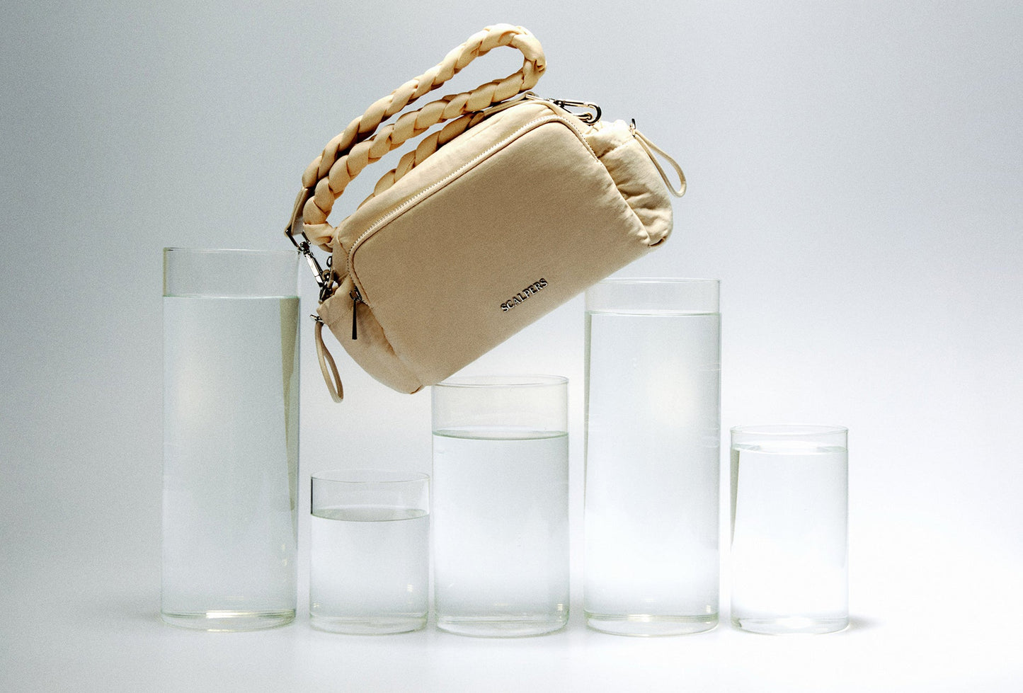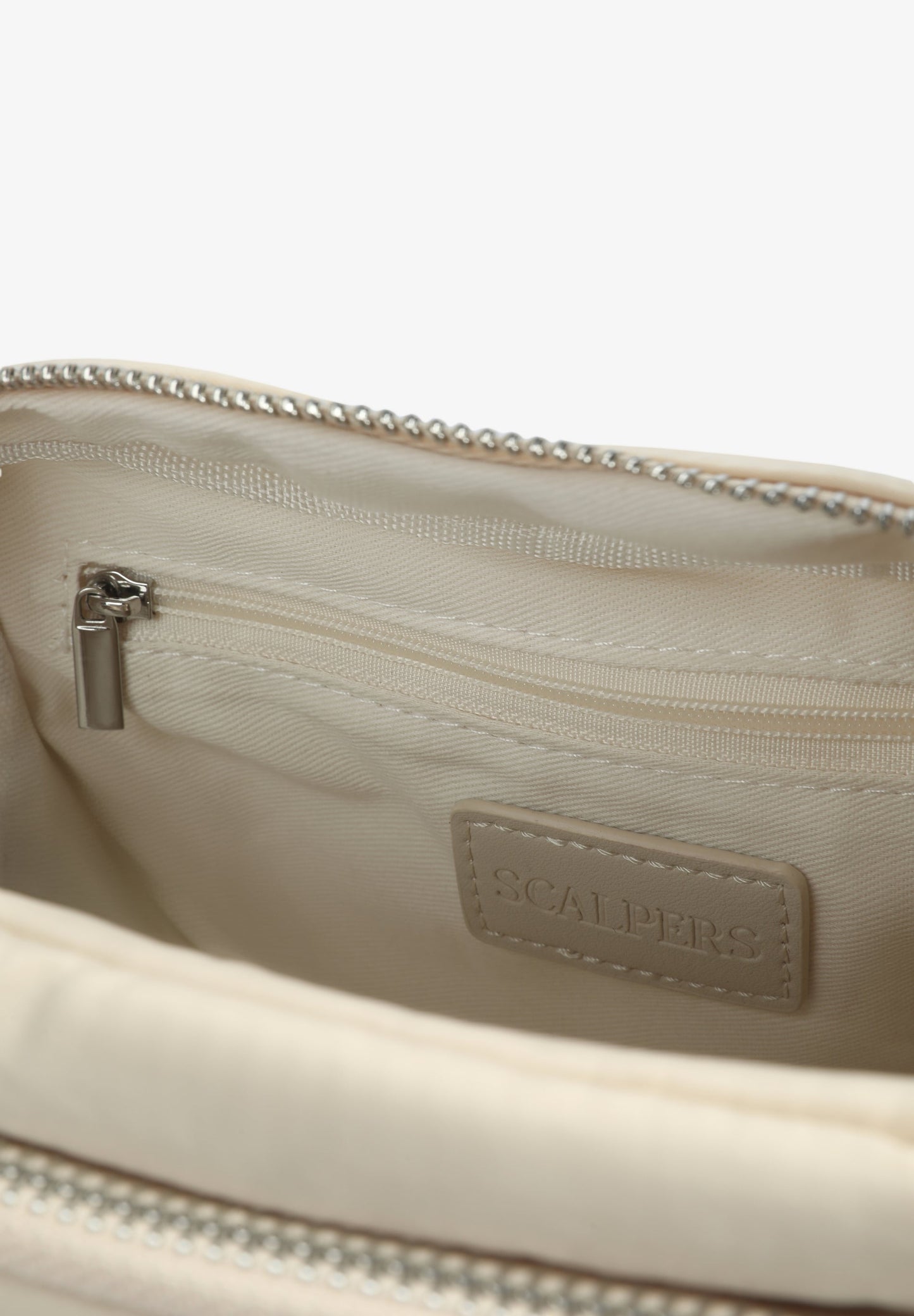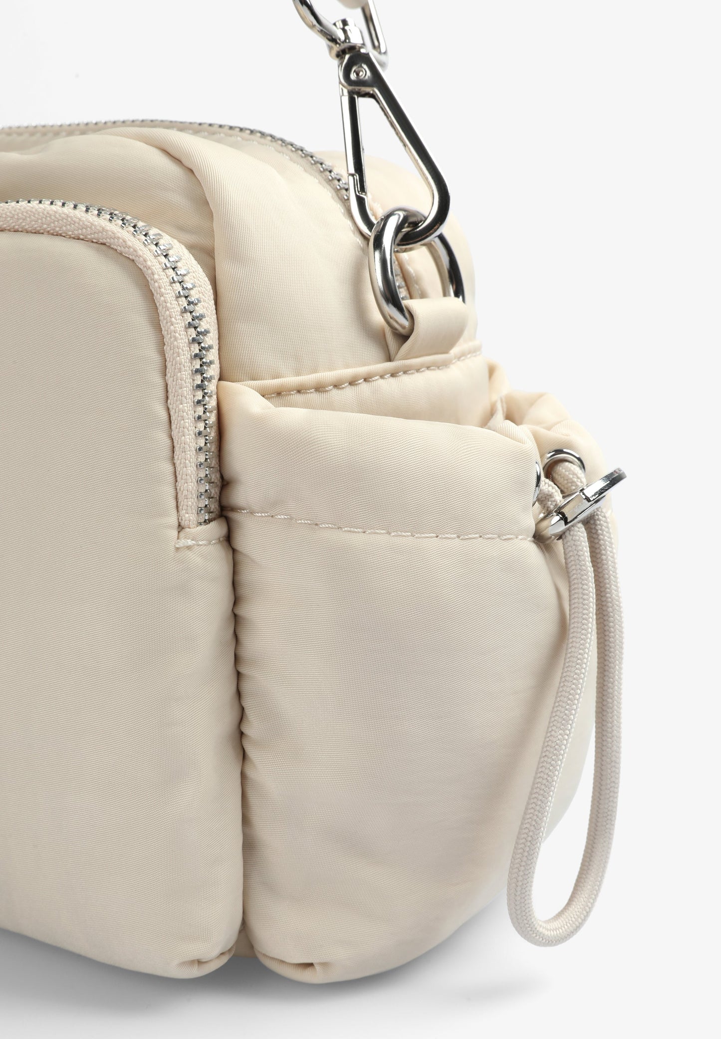 Bolso tipo bandolera con detalle de asa corta trenzada.