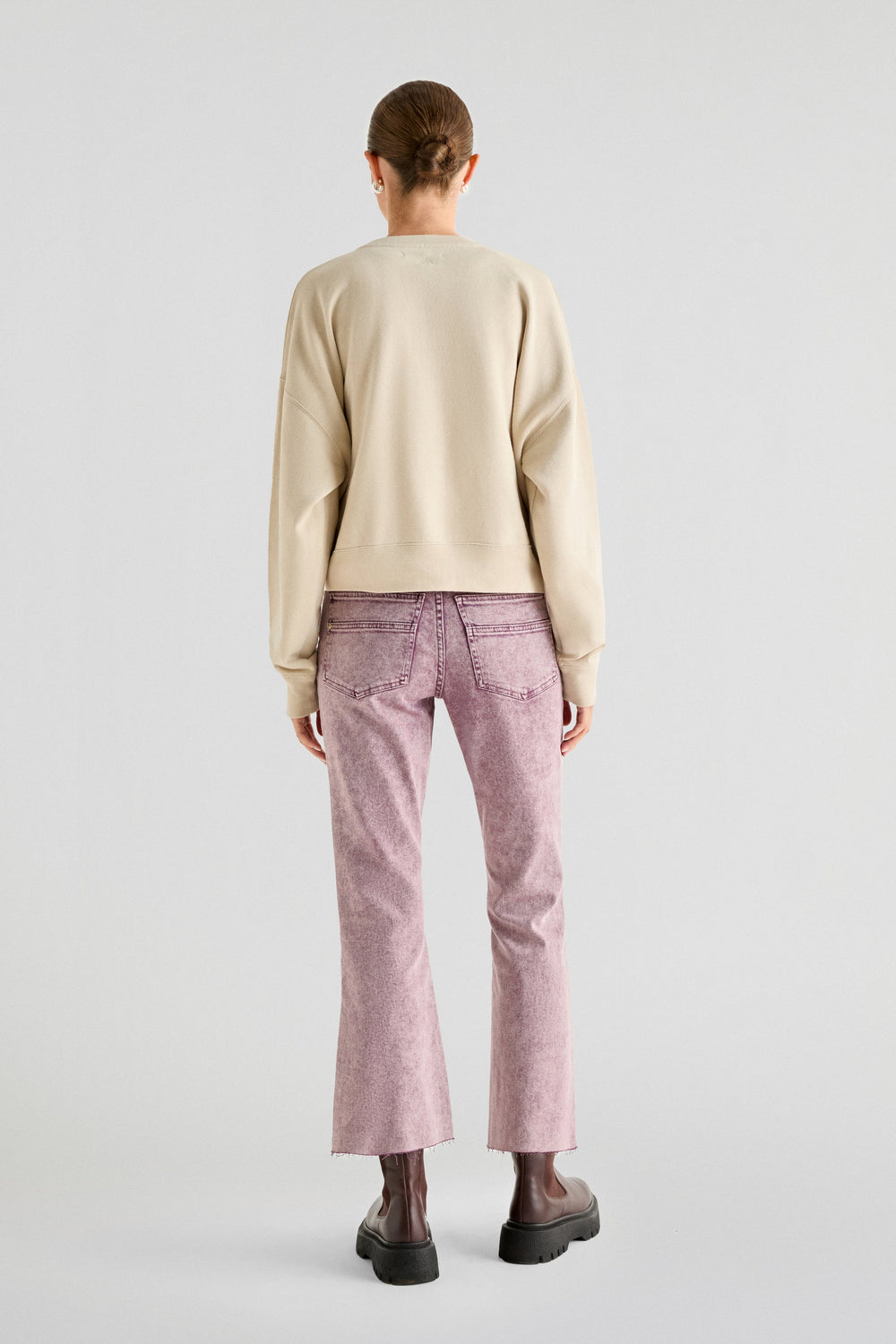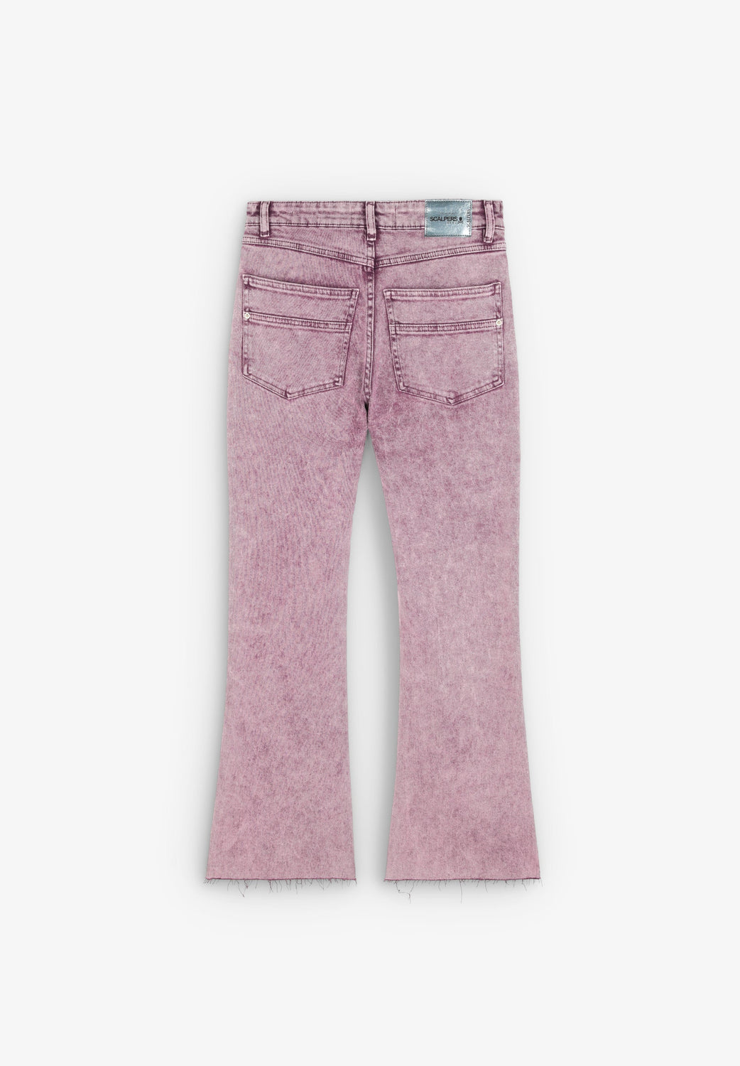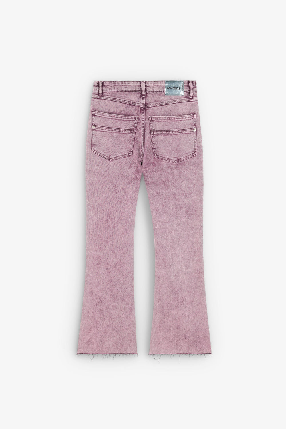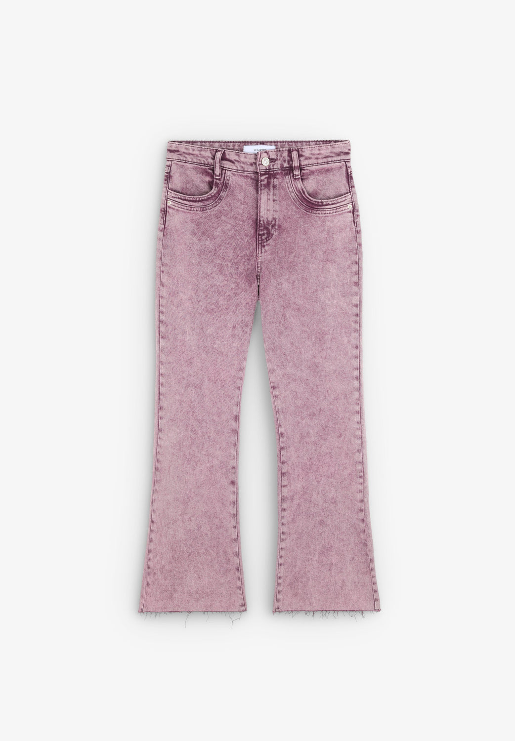 Jeans lavados confeccionados en algodón ligeramente elástico. Corte flare slim fit, cierre con botón y cremallera. Bolsillos frontales y traseros y trabillas en cintura. Bajo desflecado.