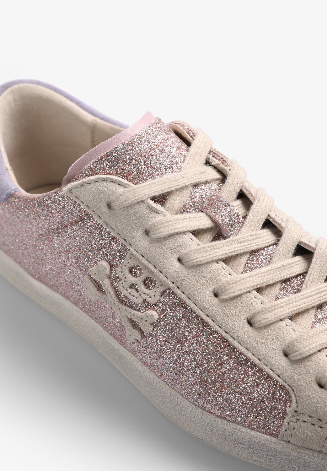 Sneakers bajas en glitter con calavera lateral.