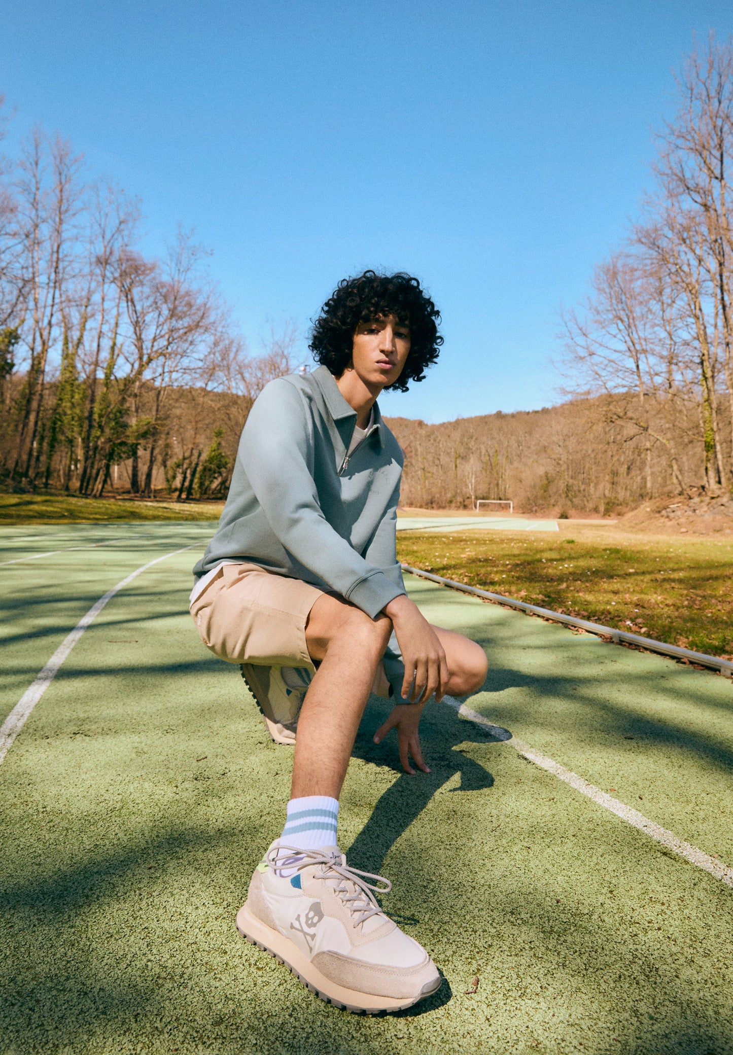 - Suela dentada de goma reciclada con detalle de hendidura sobresaliente en parte trasera