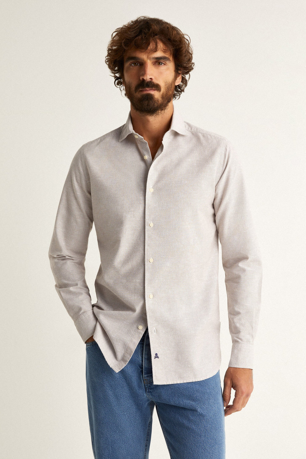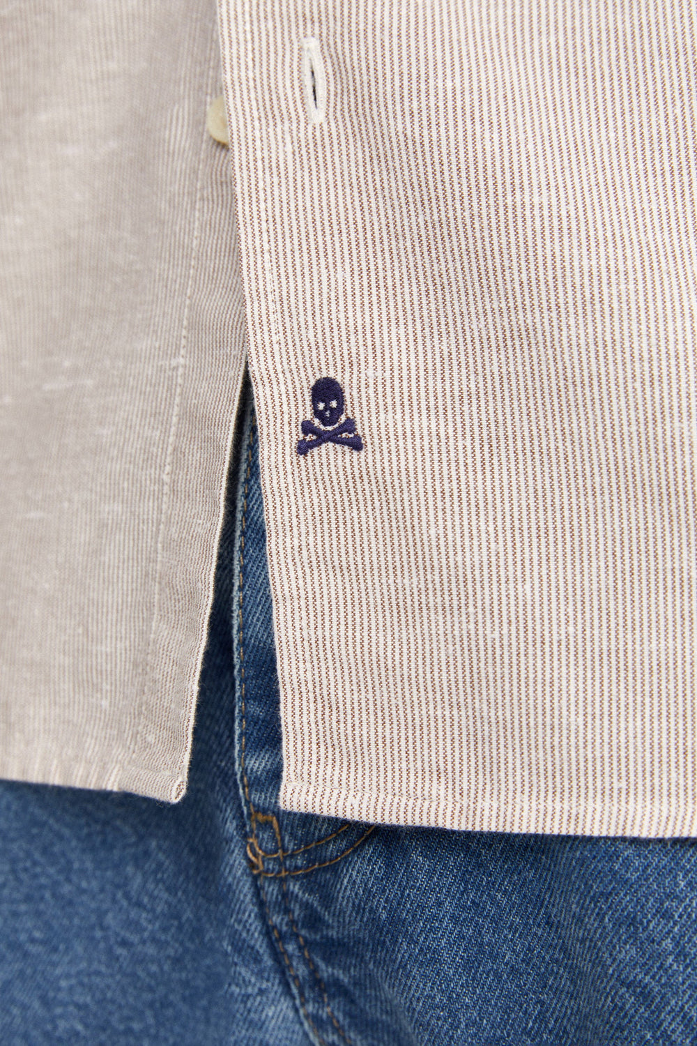 Camisa de rayas con detalle de calavera bordada a contraste en tapeta.